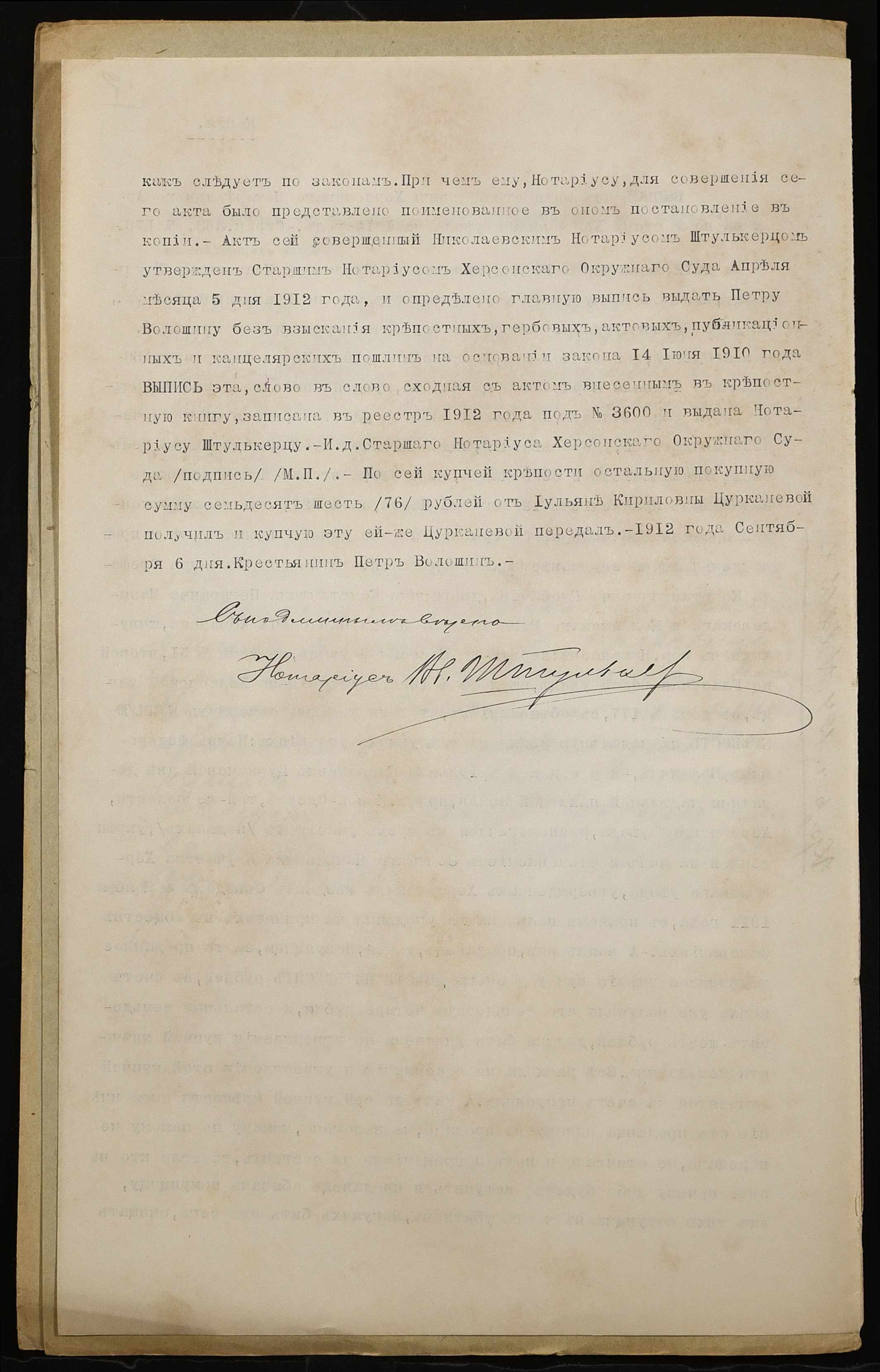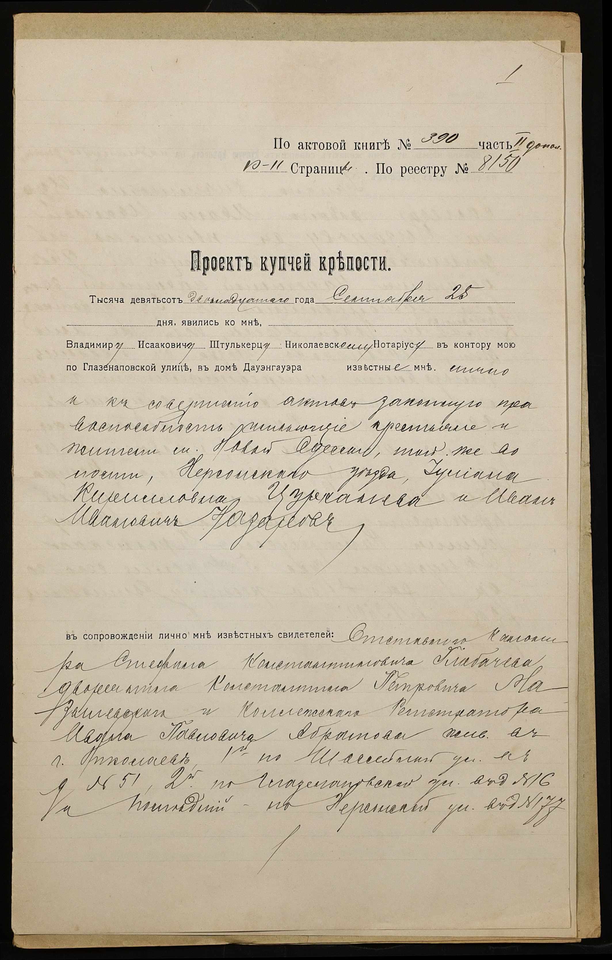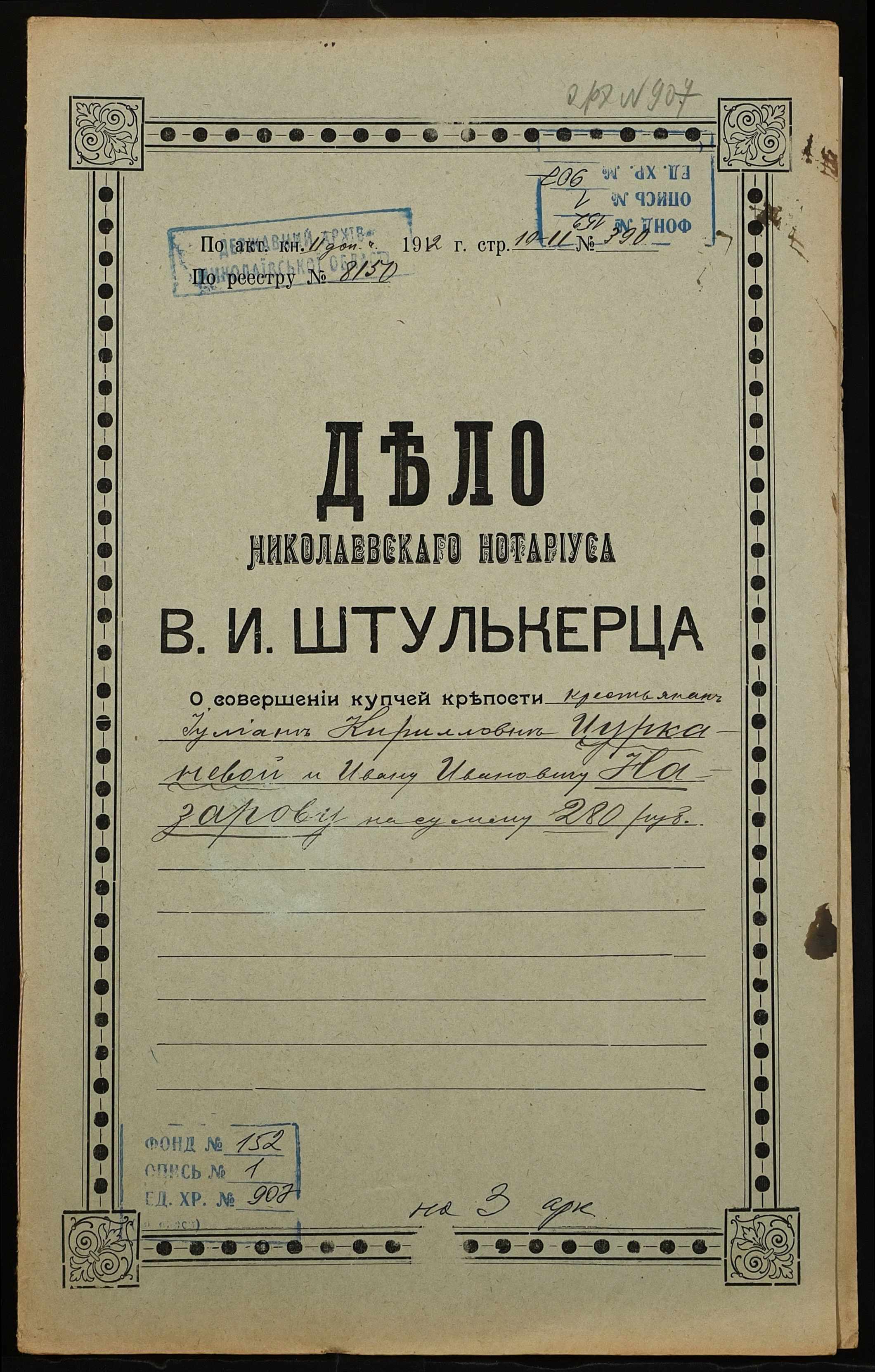 ◦ ◦ Фонд № 152 “Контора миколаївського нотаріуса Херсонського окружного суду Штулькерца Володимира Ісааковича”