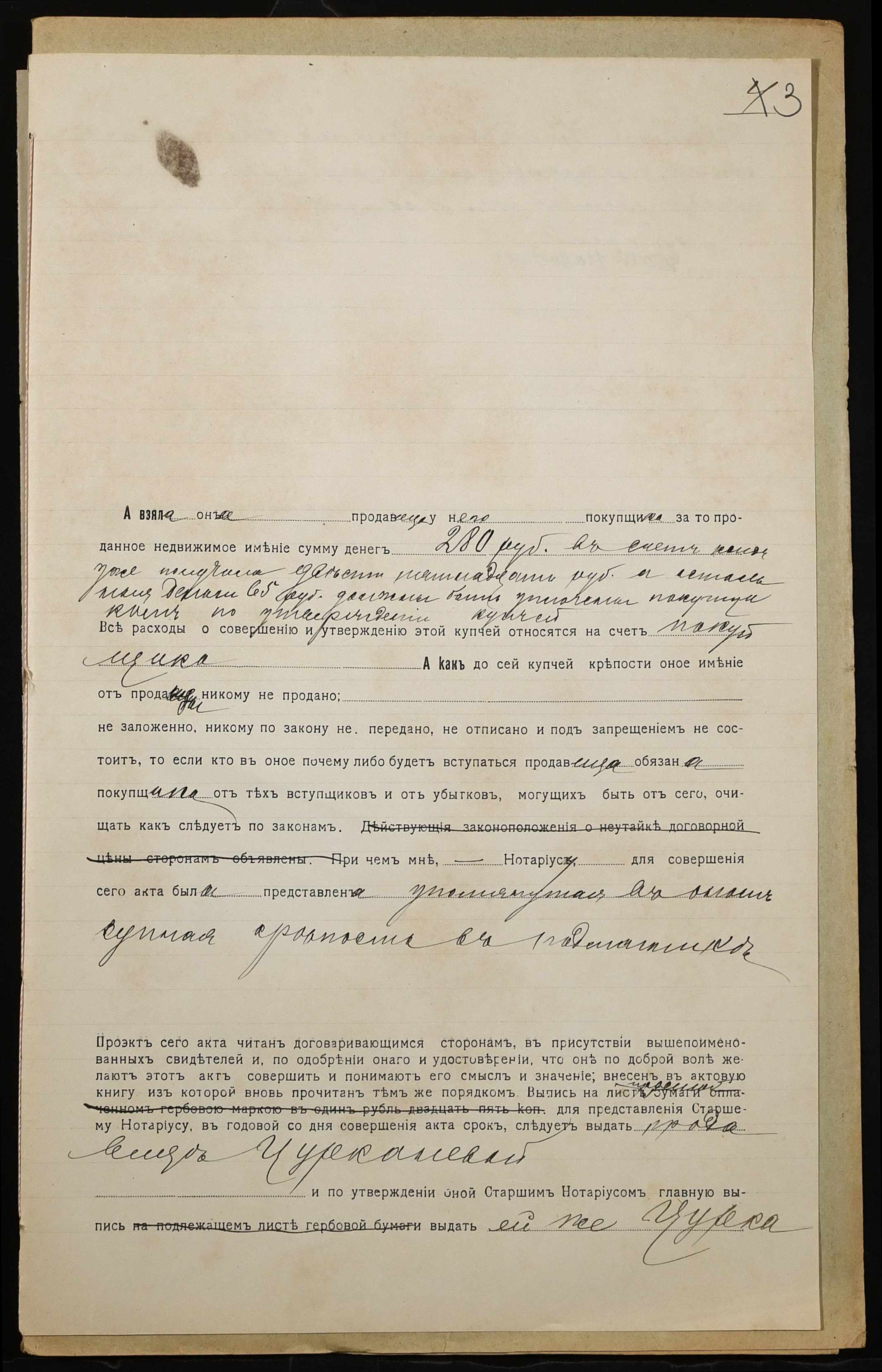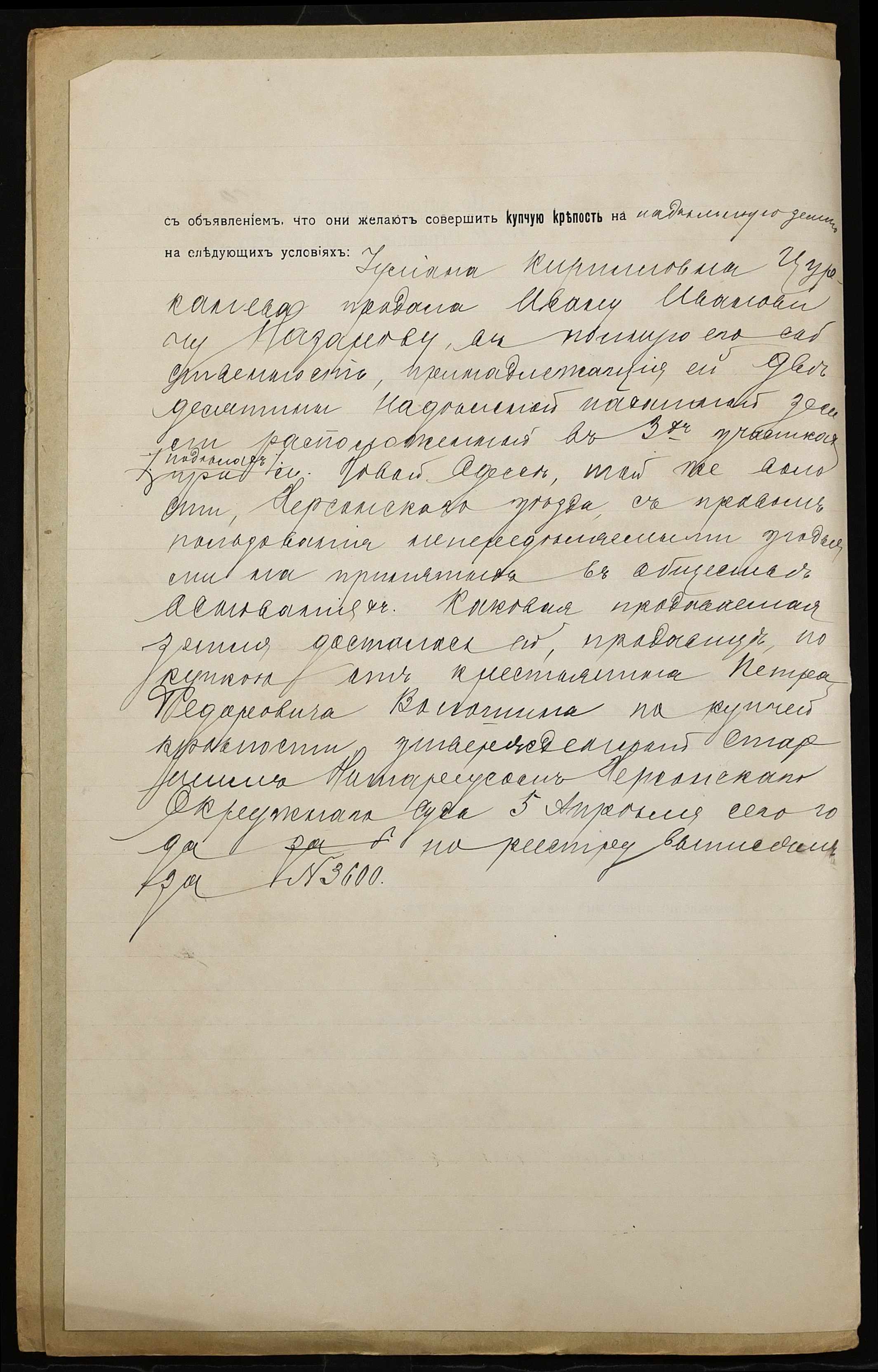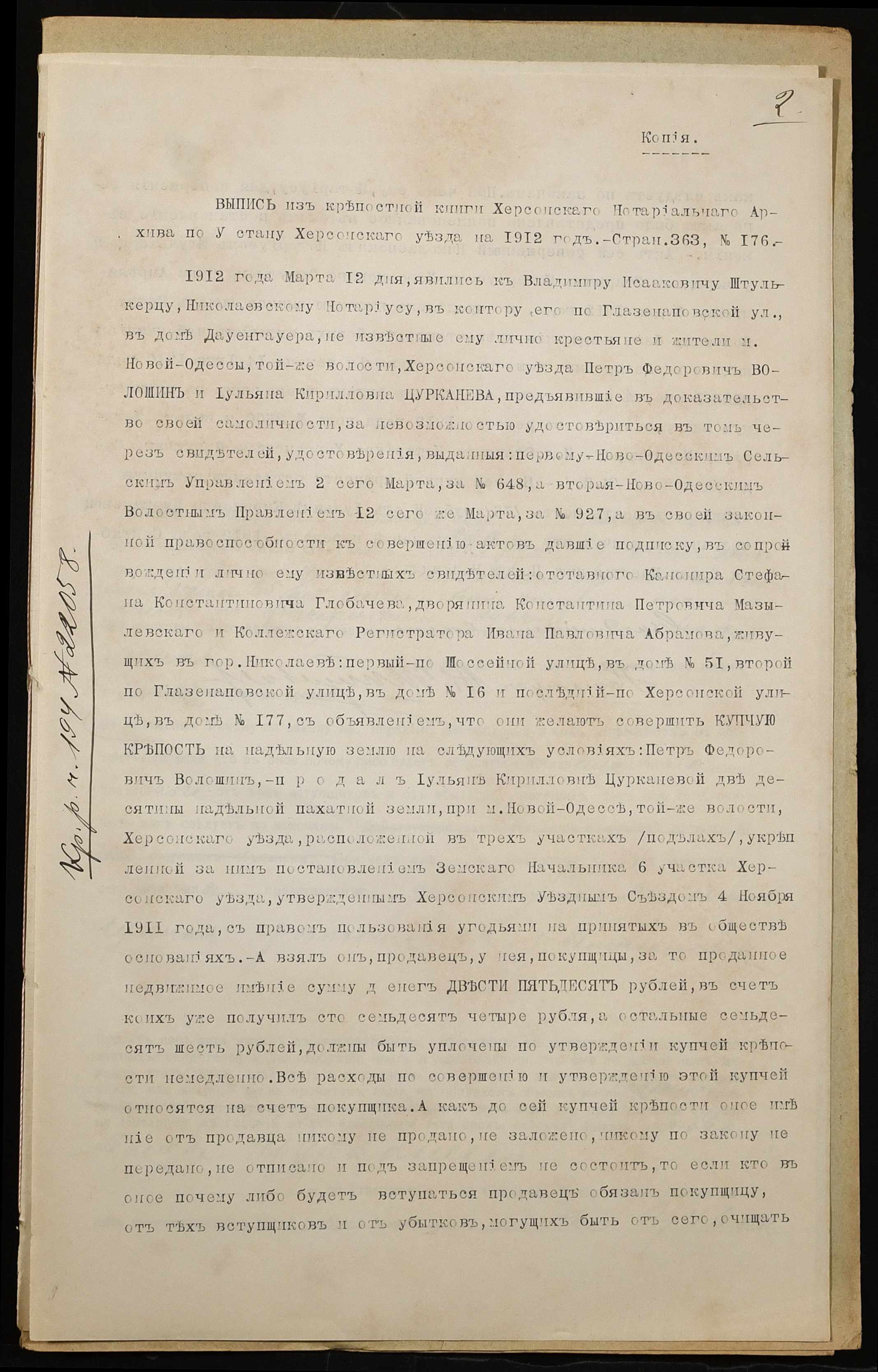 • • • • Справа № 907 “Справа про вчинення купчої про продаж землі селянкою Цуркановою Уляною Кирилівною (Цуркановой Ульяной Кирилловной) на користь селянина Назарова Івана Івановича (Назарова Ивана Ивановича)”