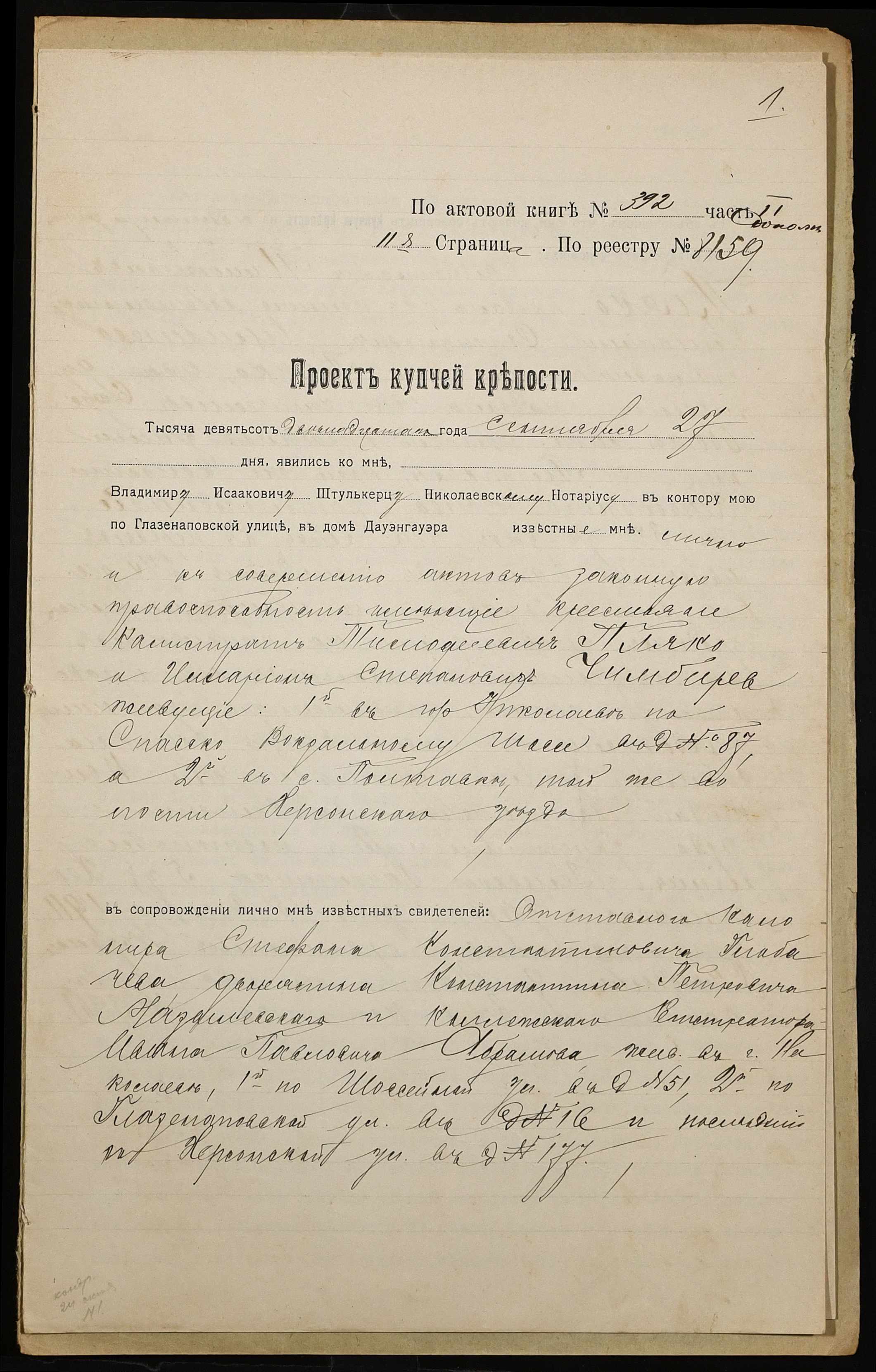 ◦ ◦ Фонд № 152 “Контора миколаївського нотаріуса Херсонського окружного суду Штулькерца Володимира Ісааковича”
