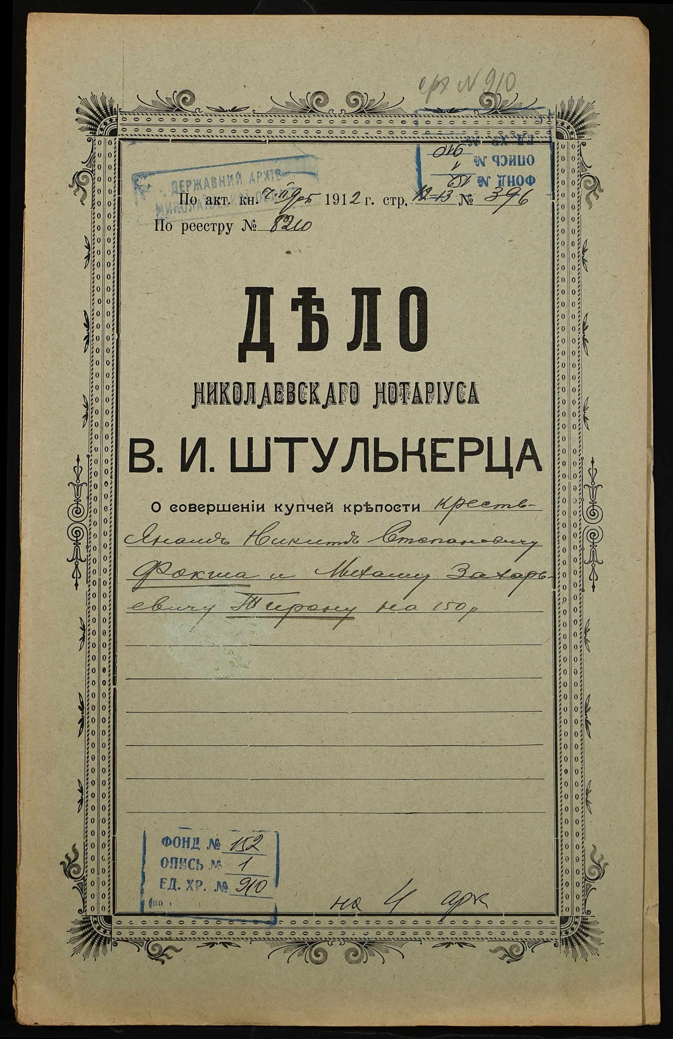 ◦ ◦ Фонд № 152 “Контора миколаївського нотаріуса Херсонського окружного суду Штулькерца Володимира Ісааковича”