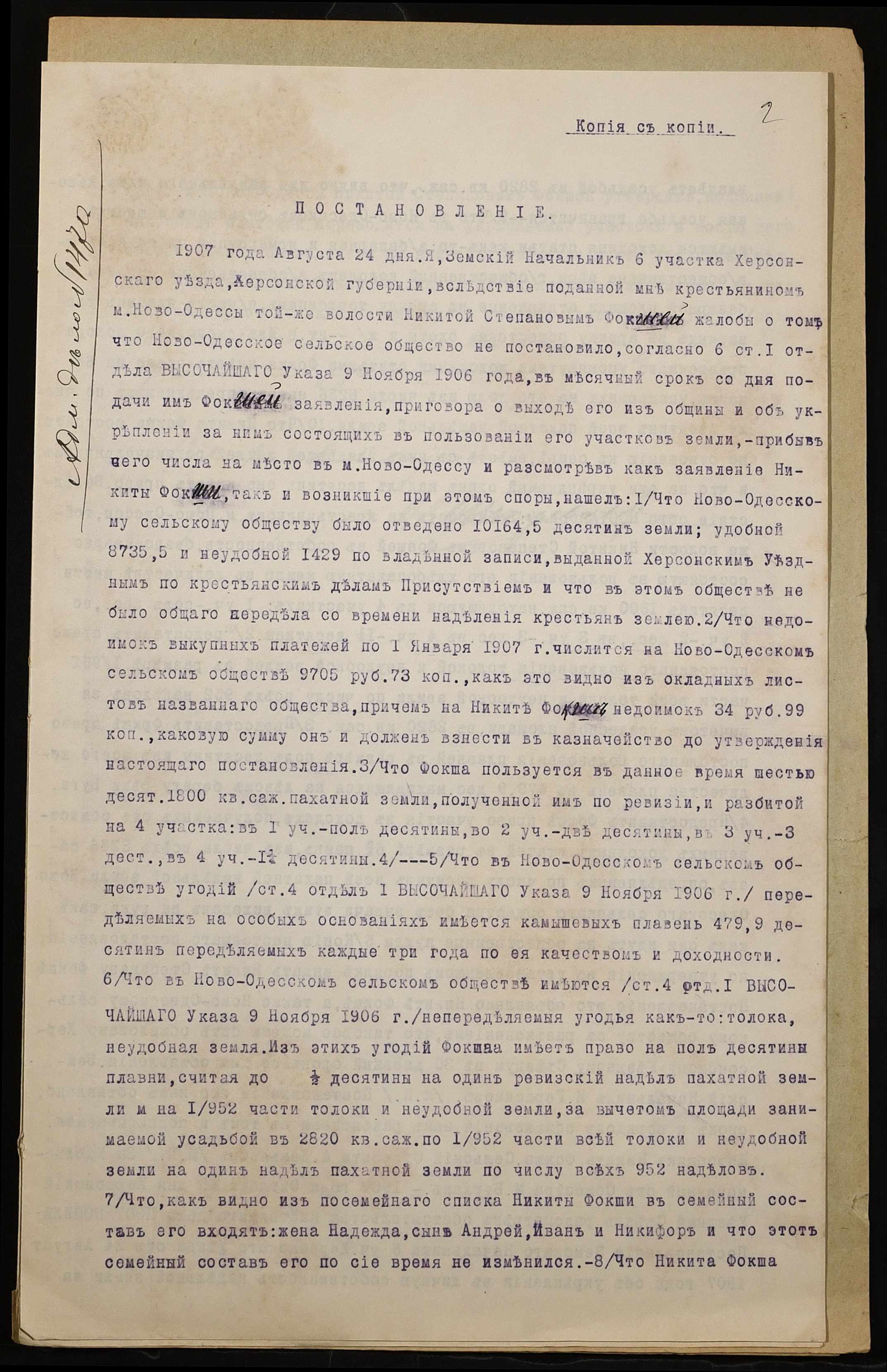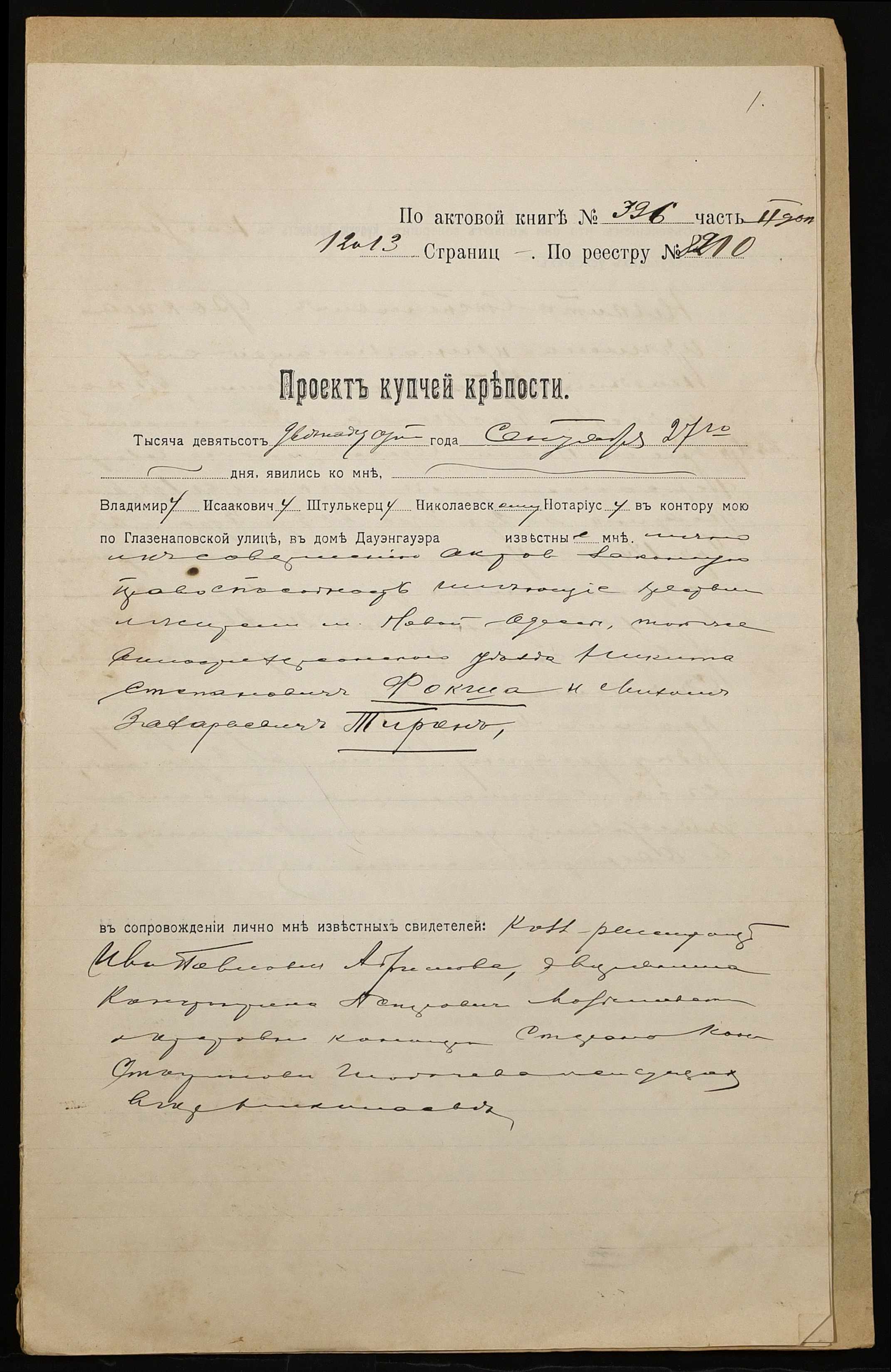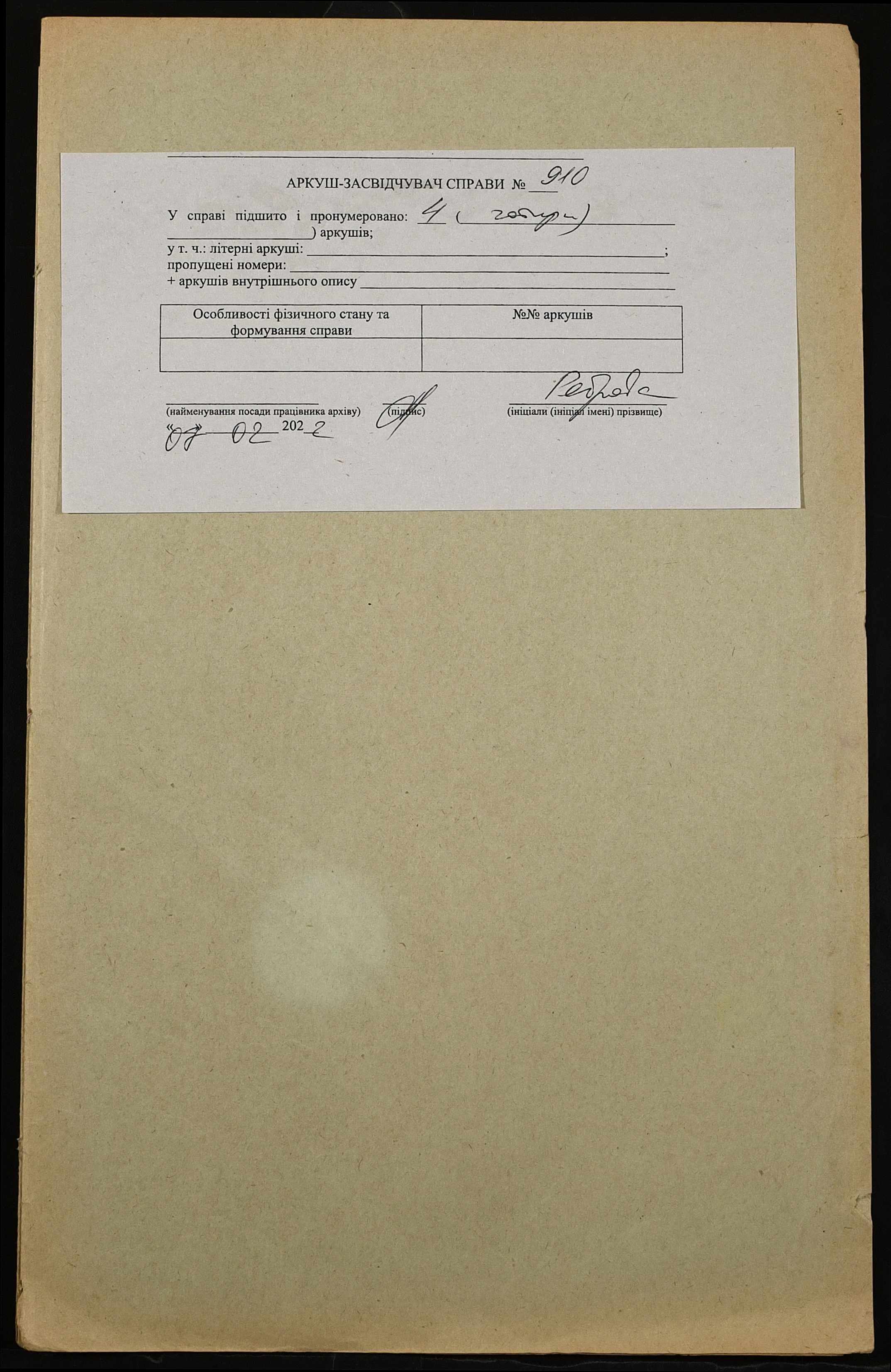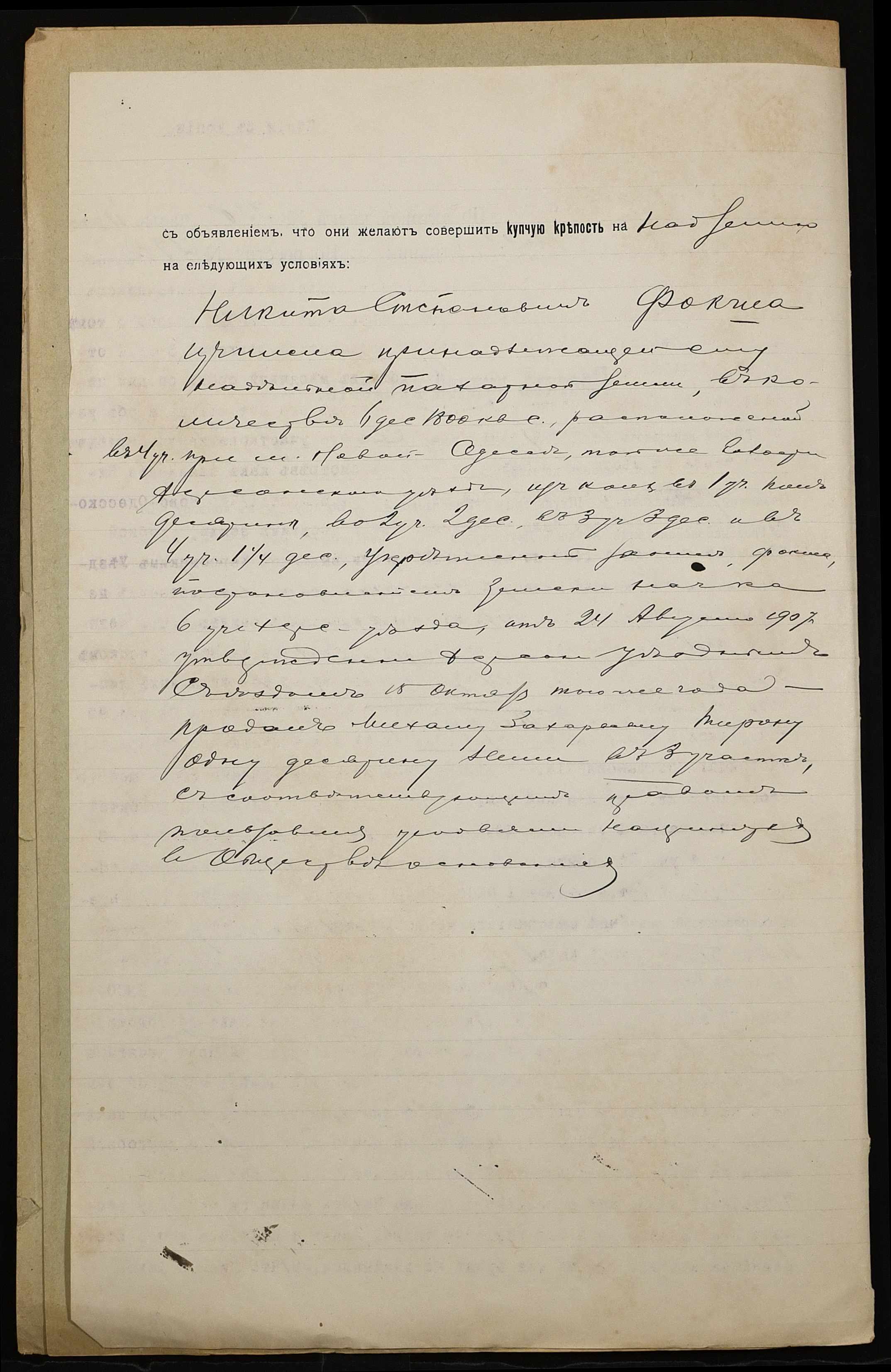 • • • • Справа № 910 “Справа про вчинення купчої про продаж землі селянином Фокшею Микитою Степановичем (Фокшей Никитой Степановичем) на користь селянина Тирона Михайла Захаровича (Тирона Михаила Захаровича)”