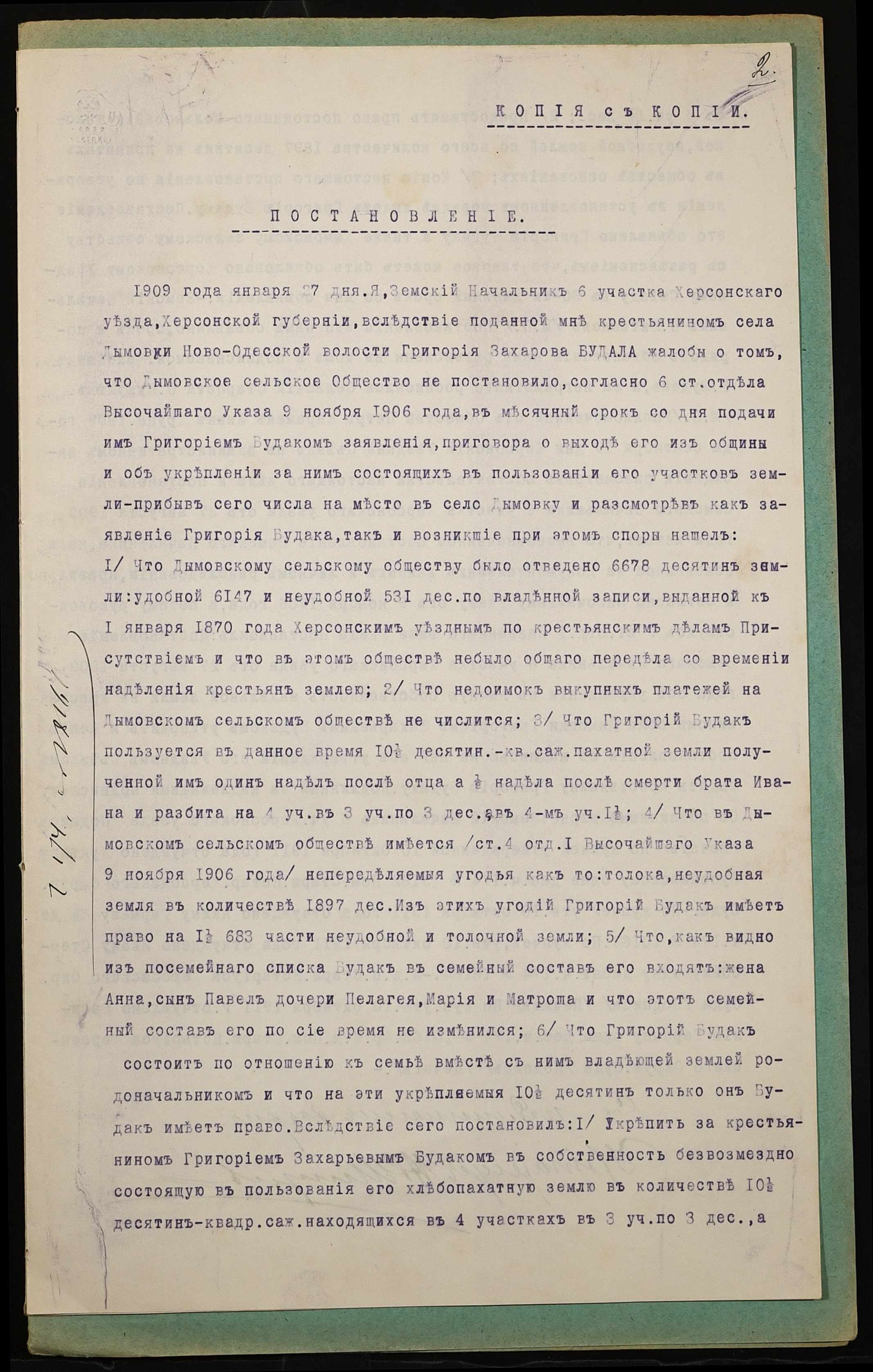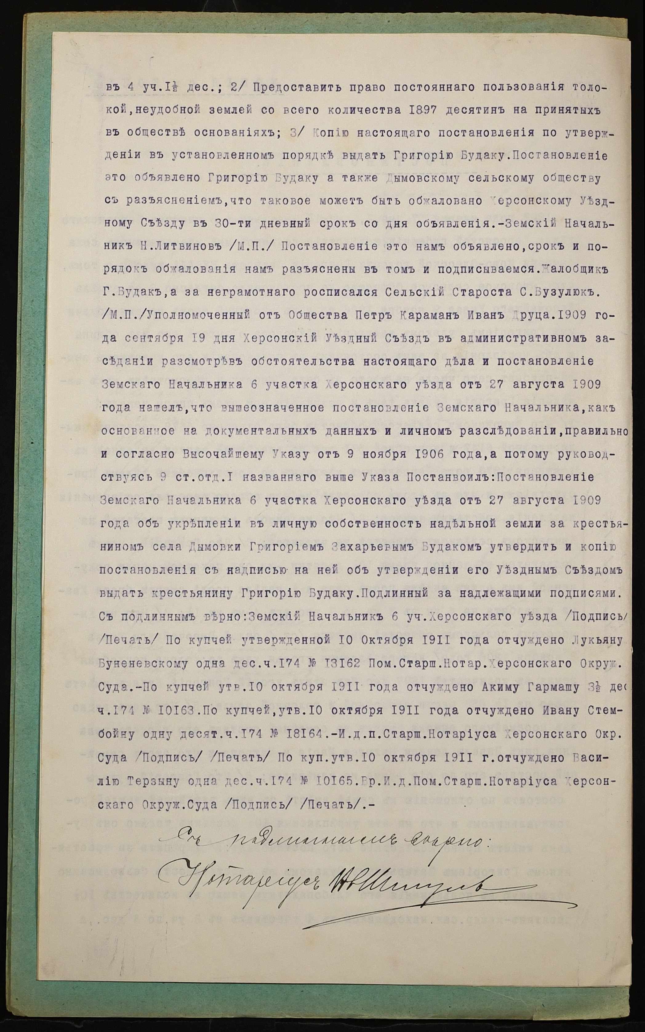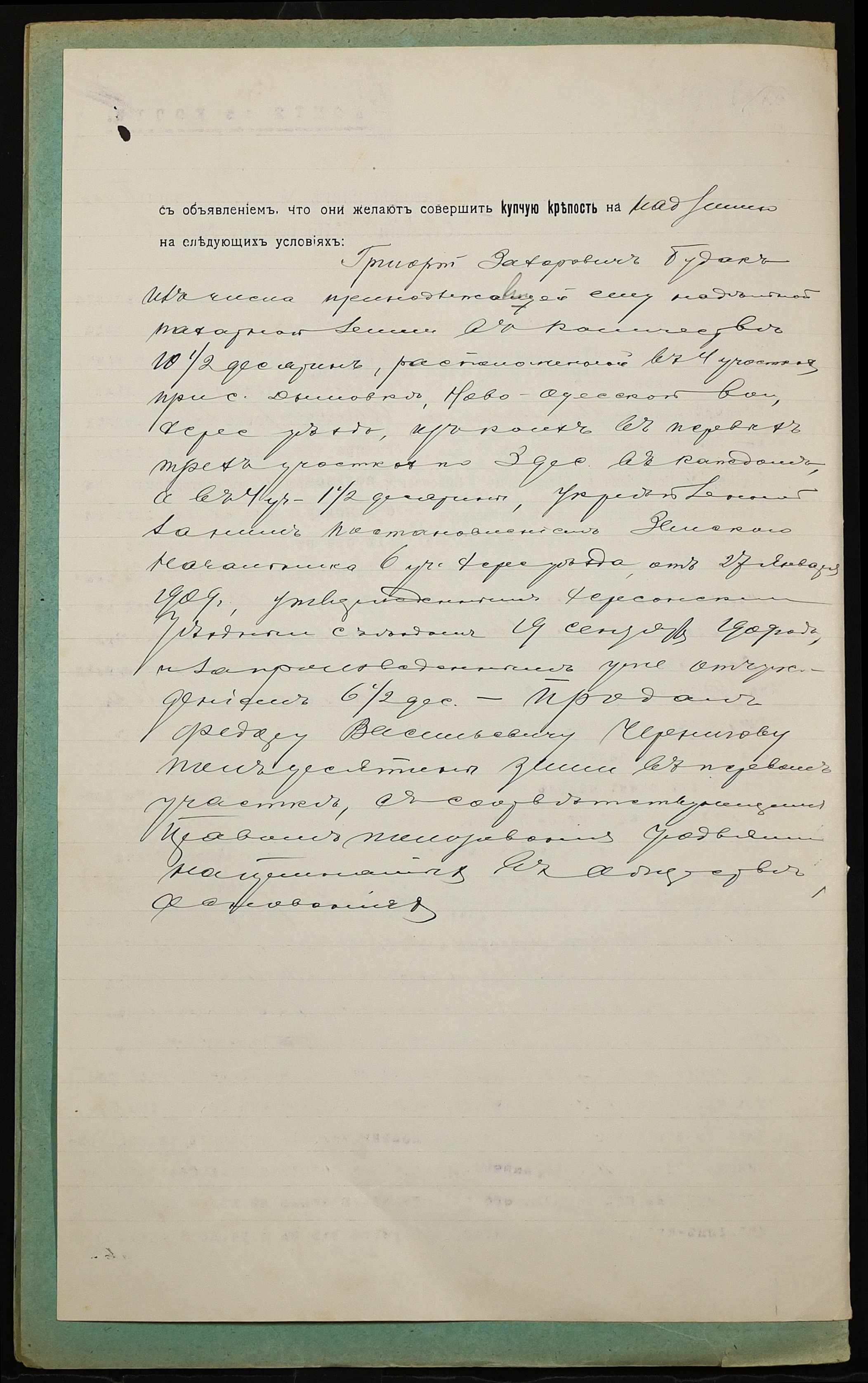 • • • • Справа № 915 “Справа про вчинення купчої про продаж землі селянином Будаком Григорієм Захаровичем (Будаком Григорием Захаровичем) на користь селянина Чернігова Федора Васильовича (Чернигова Федора Васильевича)”
