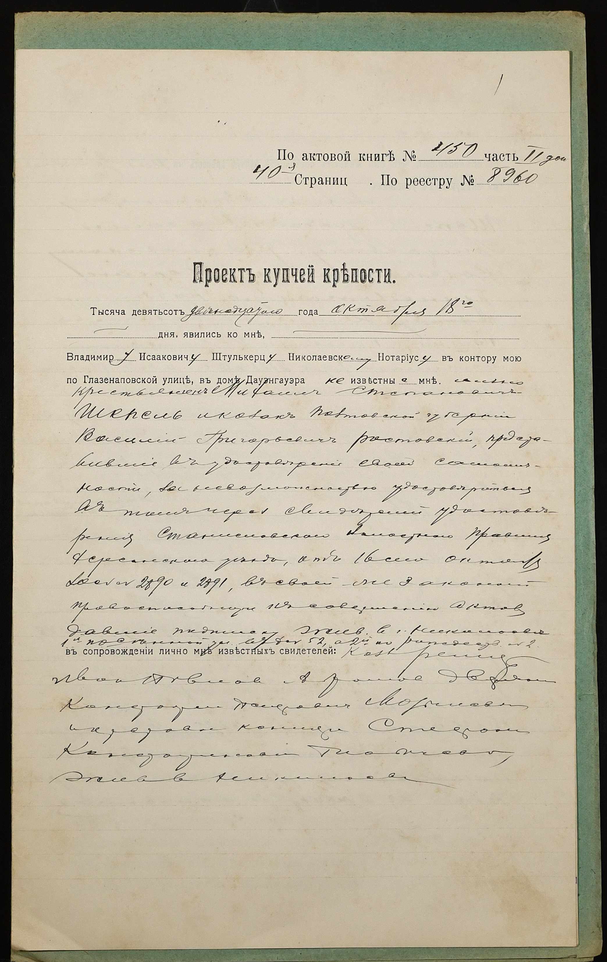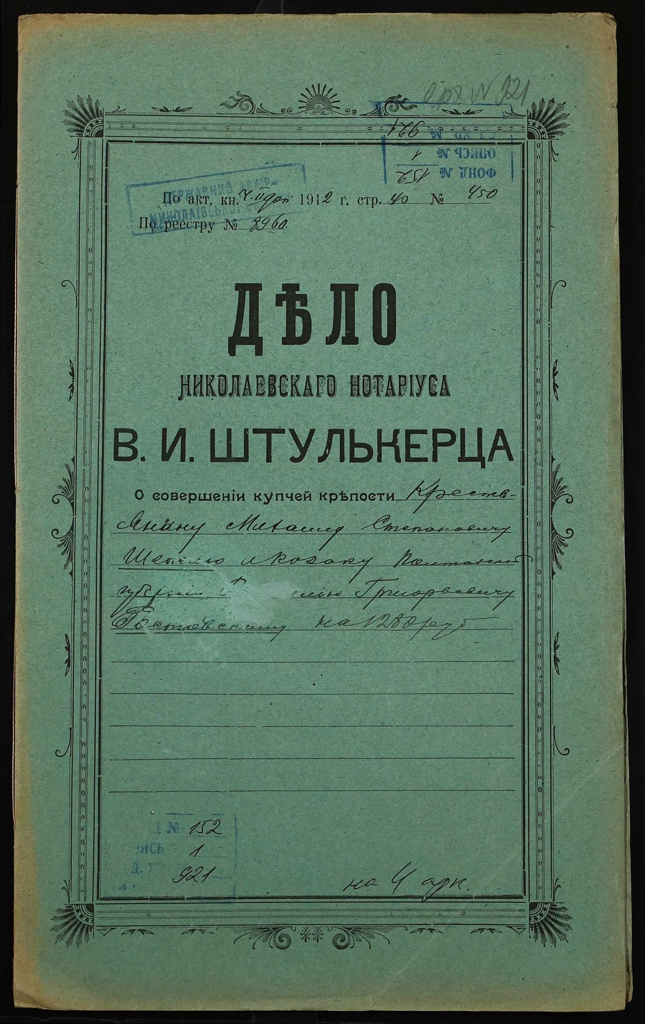 ◦ ◦ Фонд № 152 “Контора миколаївського нотаріуса Херсонського окружного суду Штулькерца Володимира Ісааковича”