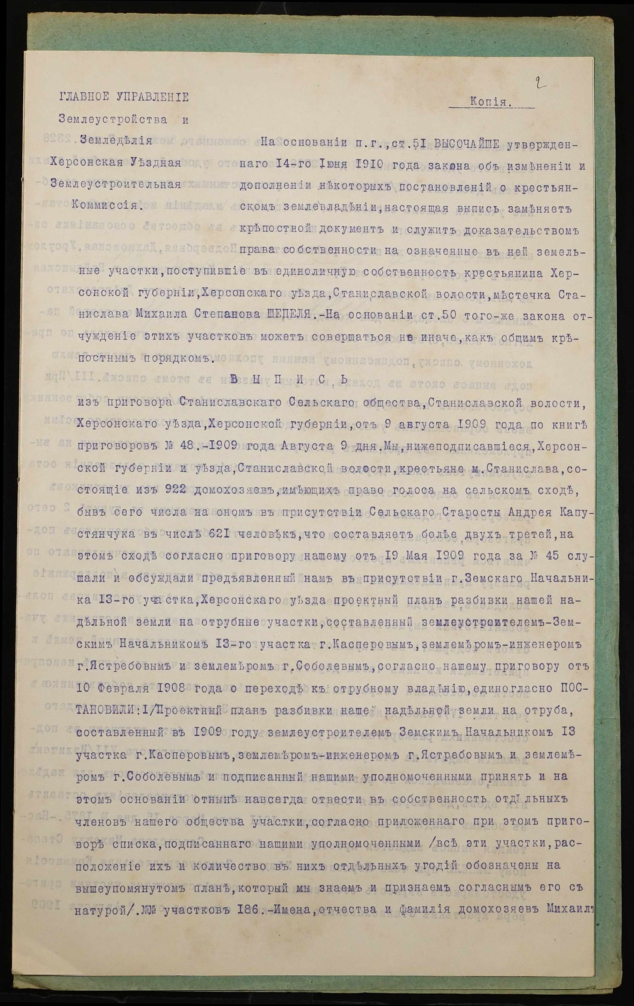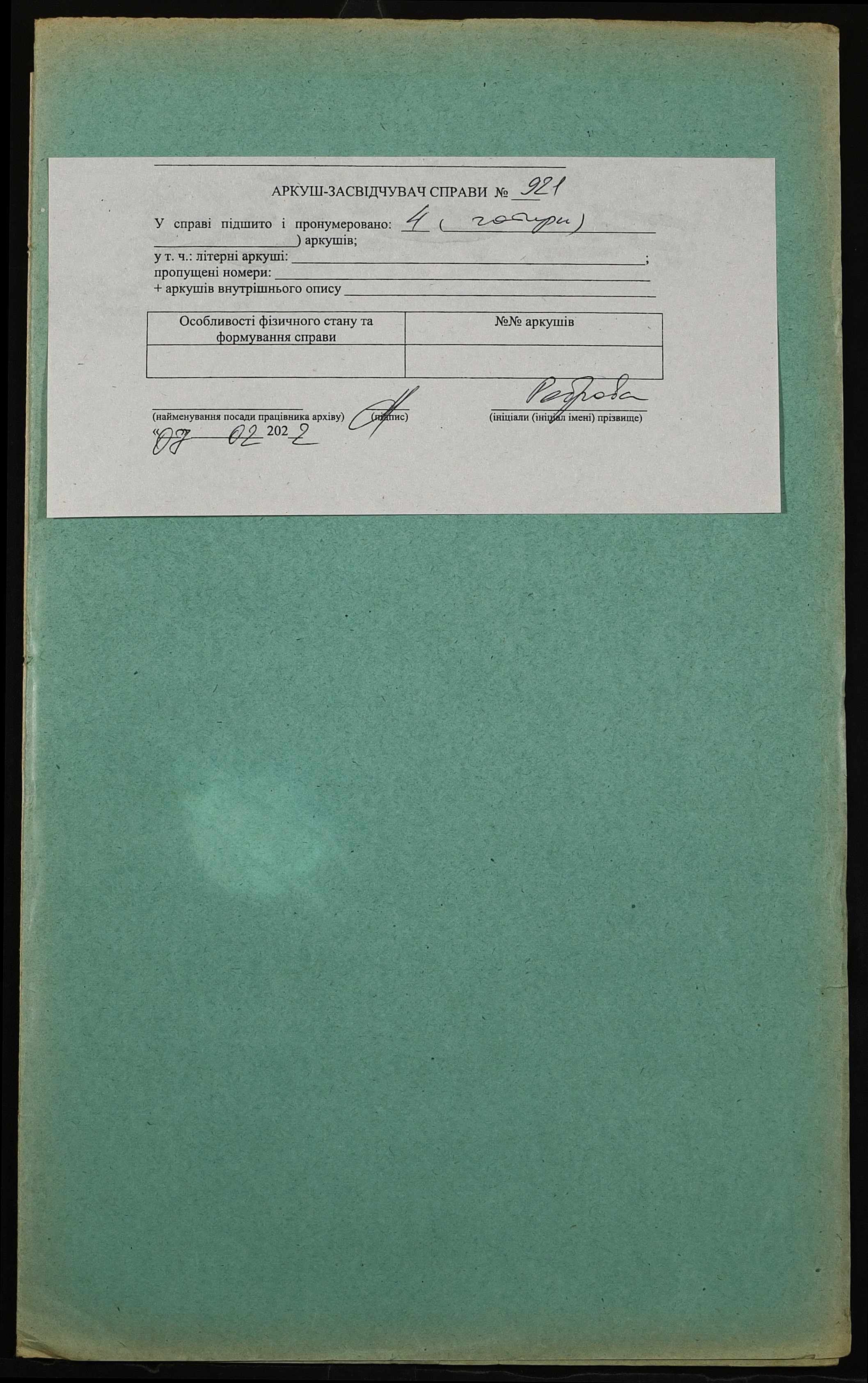 • • • • Справа № 921 “Справа про вчинення купчої про продаж землі селянином Шепелем Михайлом Степановичем (Шепелем Михаилом Степановичем) на користь козака полтавської губернії Ростовського Василя Григоровича (Ростовского Василия Григорьевича)”