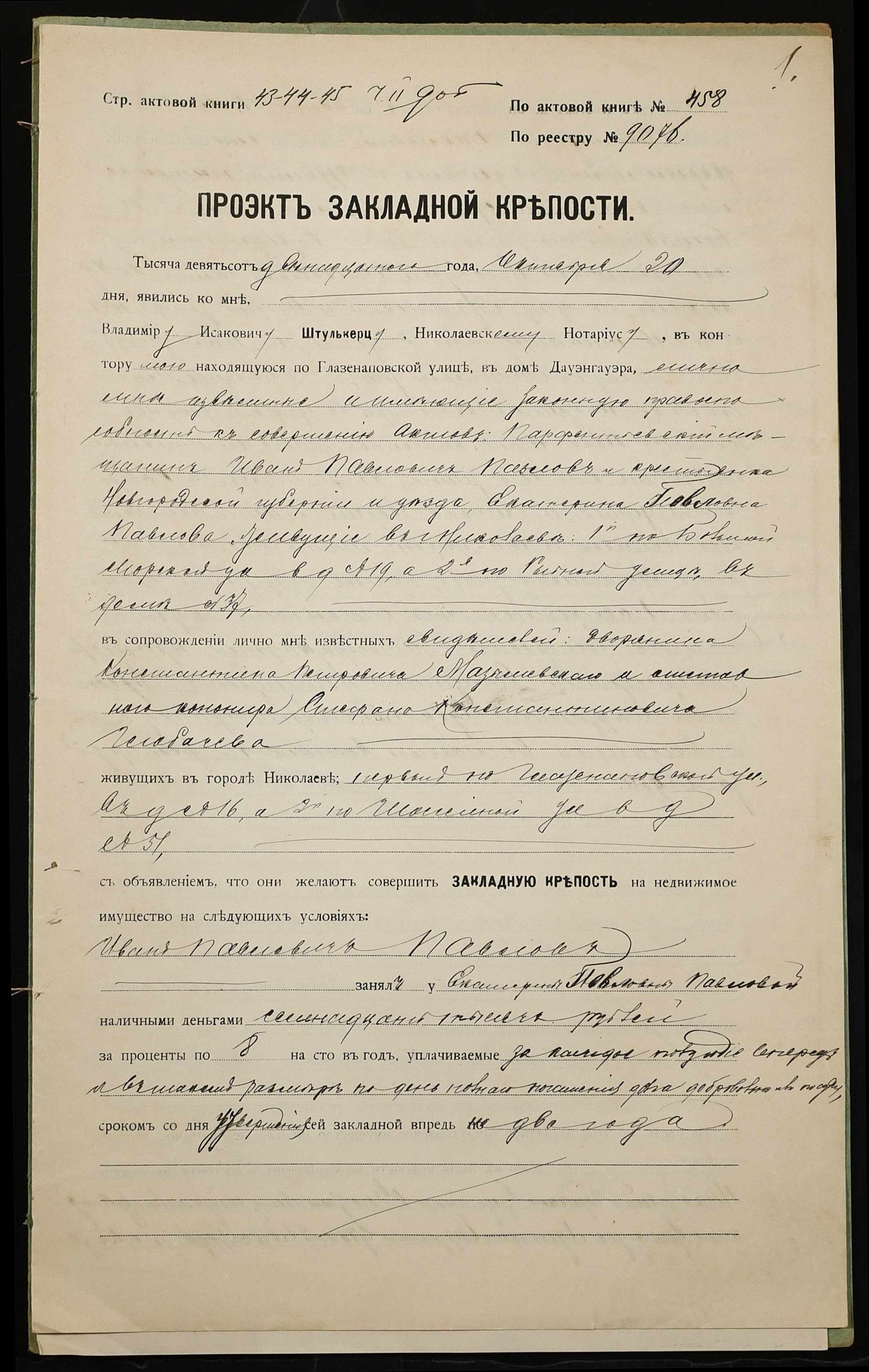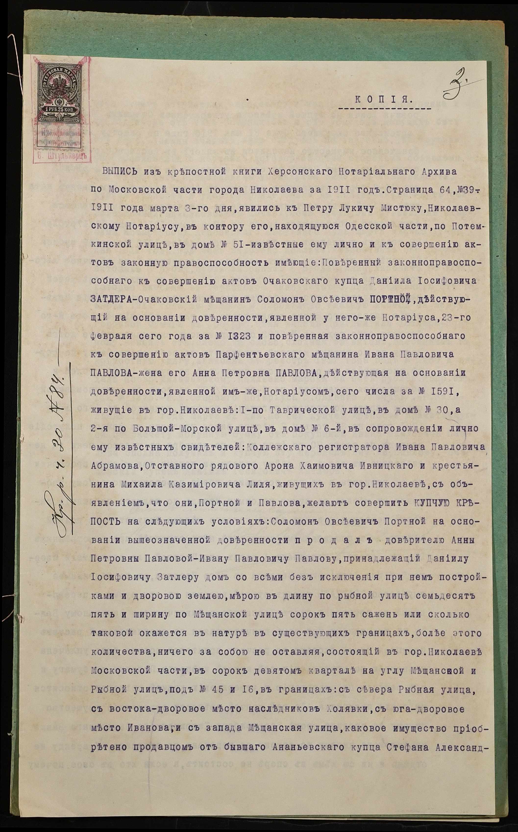 ◦ ◦ Фонд № 152 “Контора миколаївського нотаріуса Херсонського окружного суду Штулькерца Володимира Ісааковича”