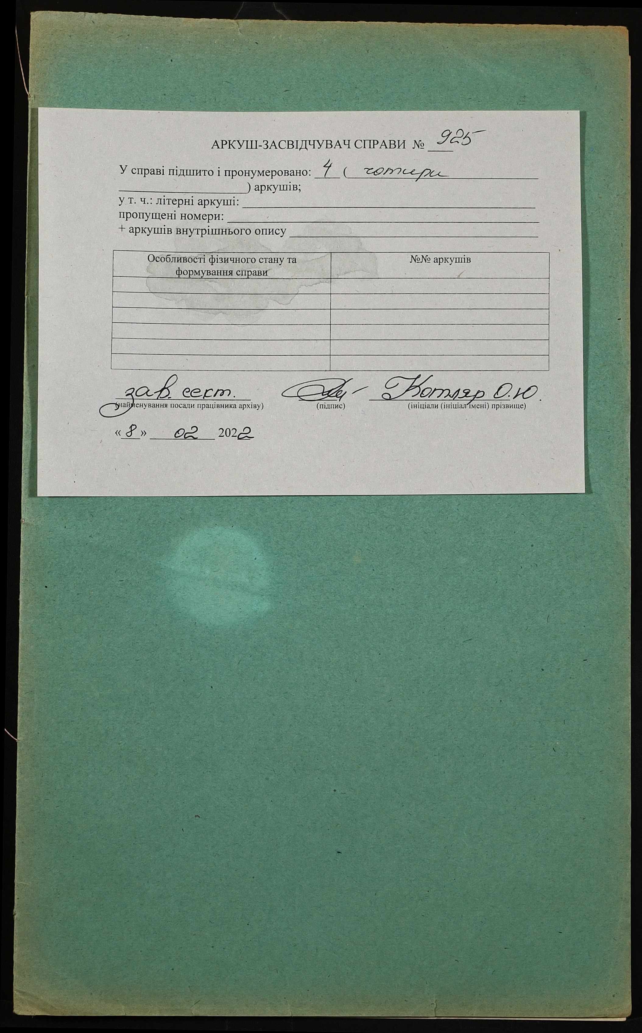 Фонд 152 / Опис 1 / Справа 0925