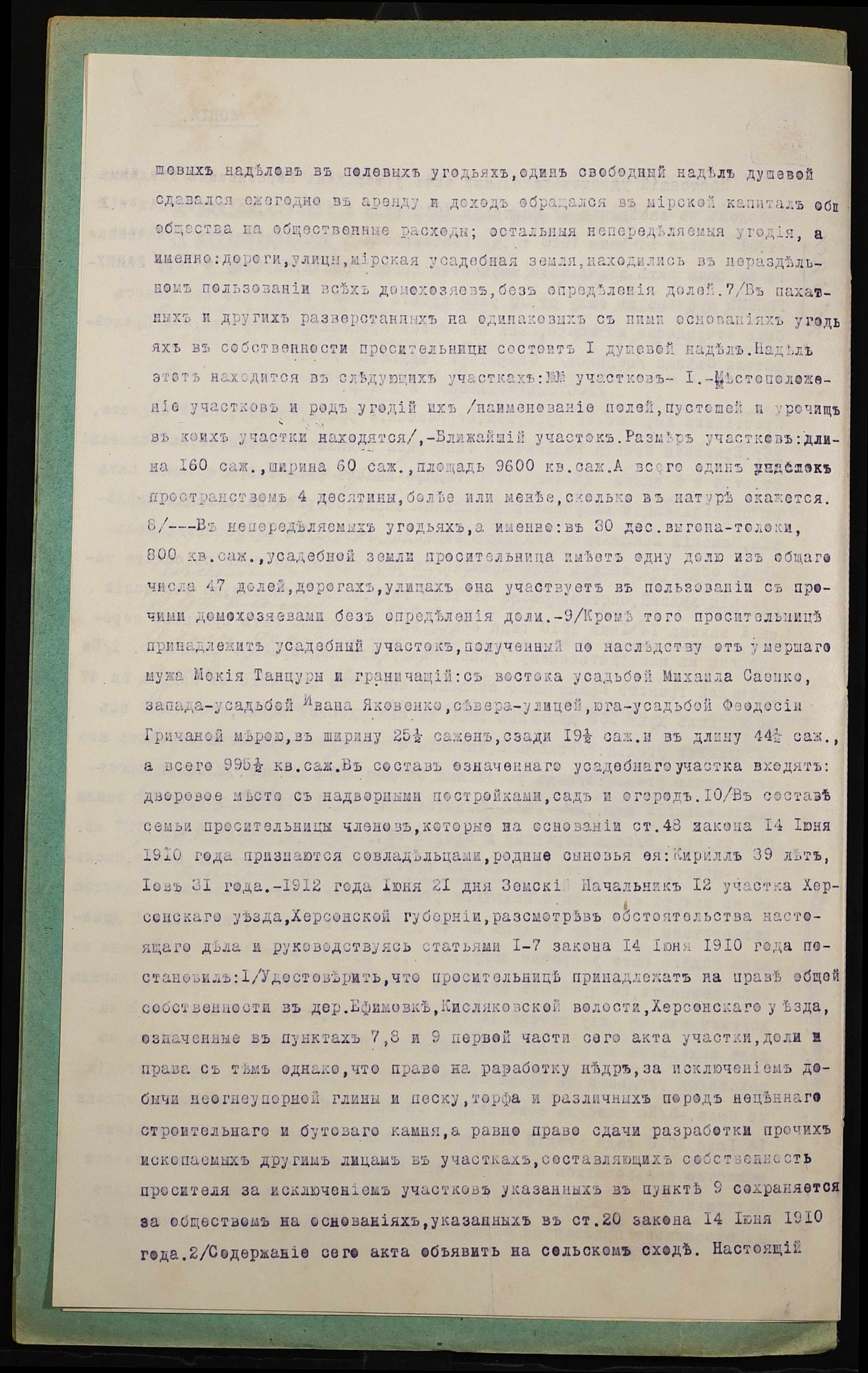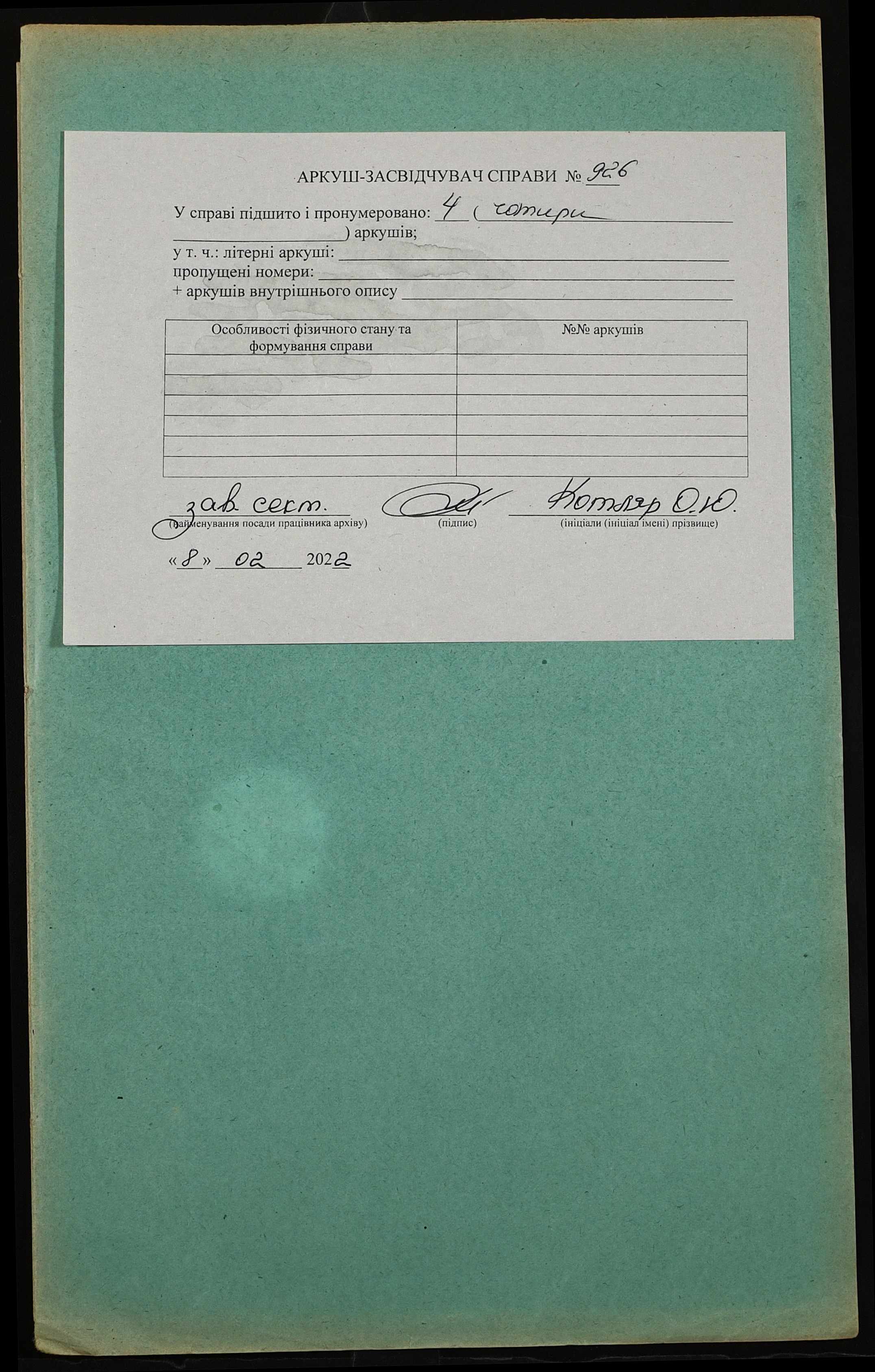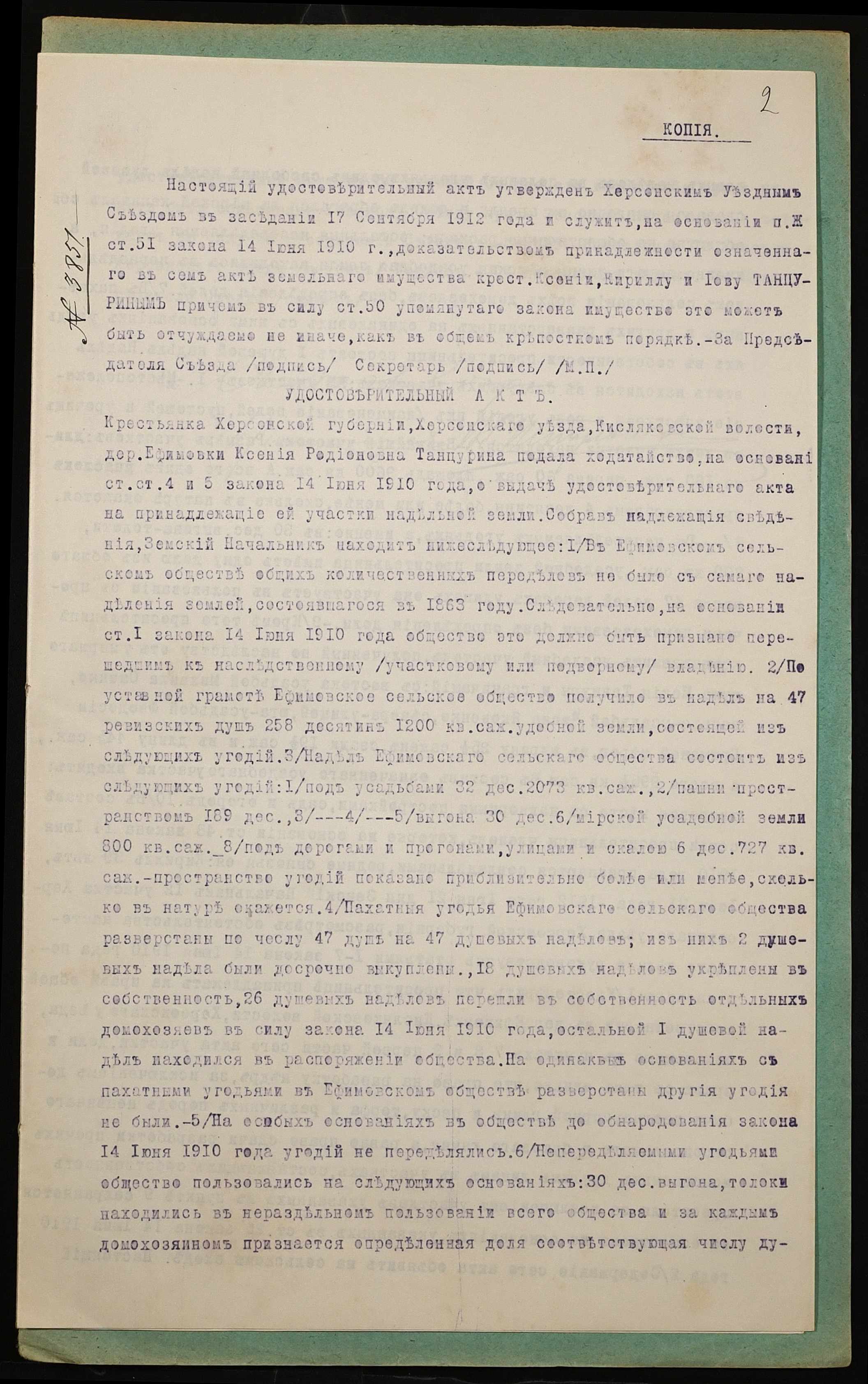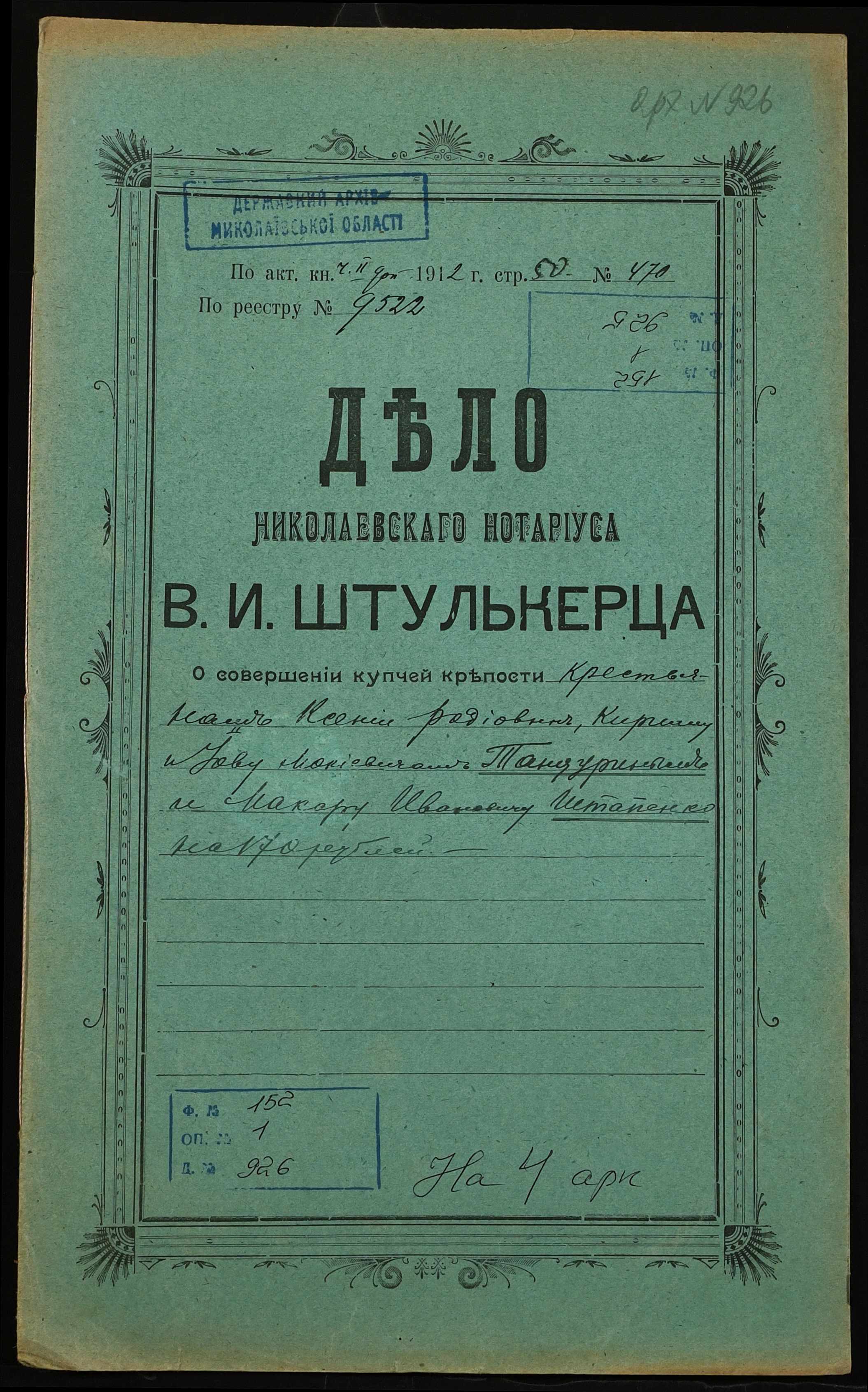 • • • • Справа № 926 “Справа про вчинення купчої про продаж землі селянами Танцюриними Ксенією Родіонівною, Кирилом і Йовом Мокійовичами (Танцюриными Ксенией Родионовной, Кириллом и Иовом Мокиевичами) на користь селянина Штапенка Макара Івановича (Штапенко Макара Ивановича)”