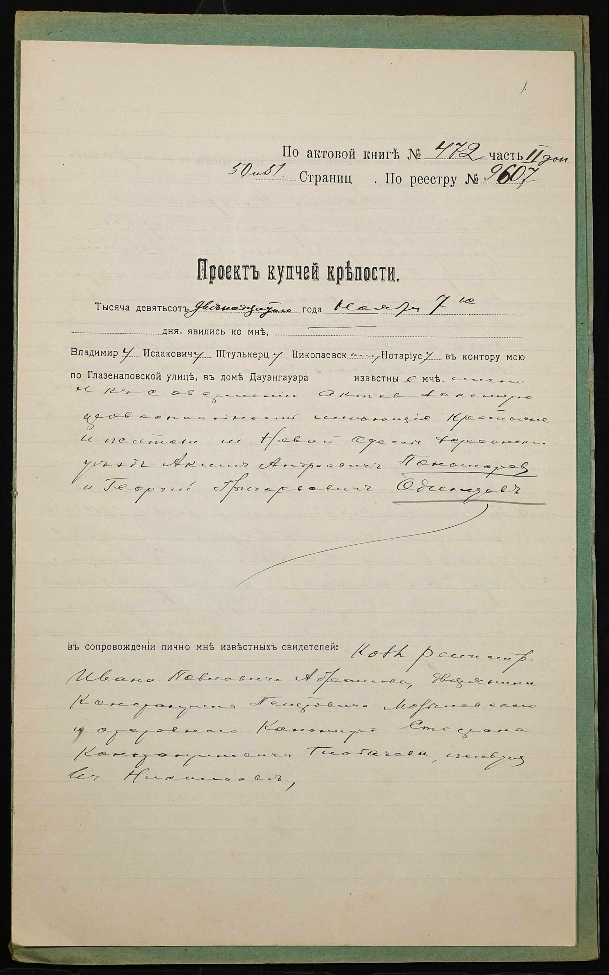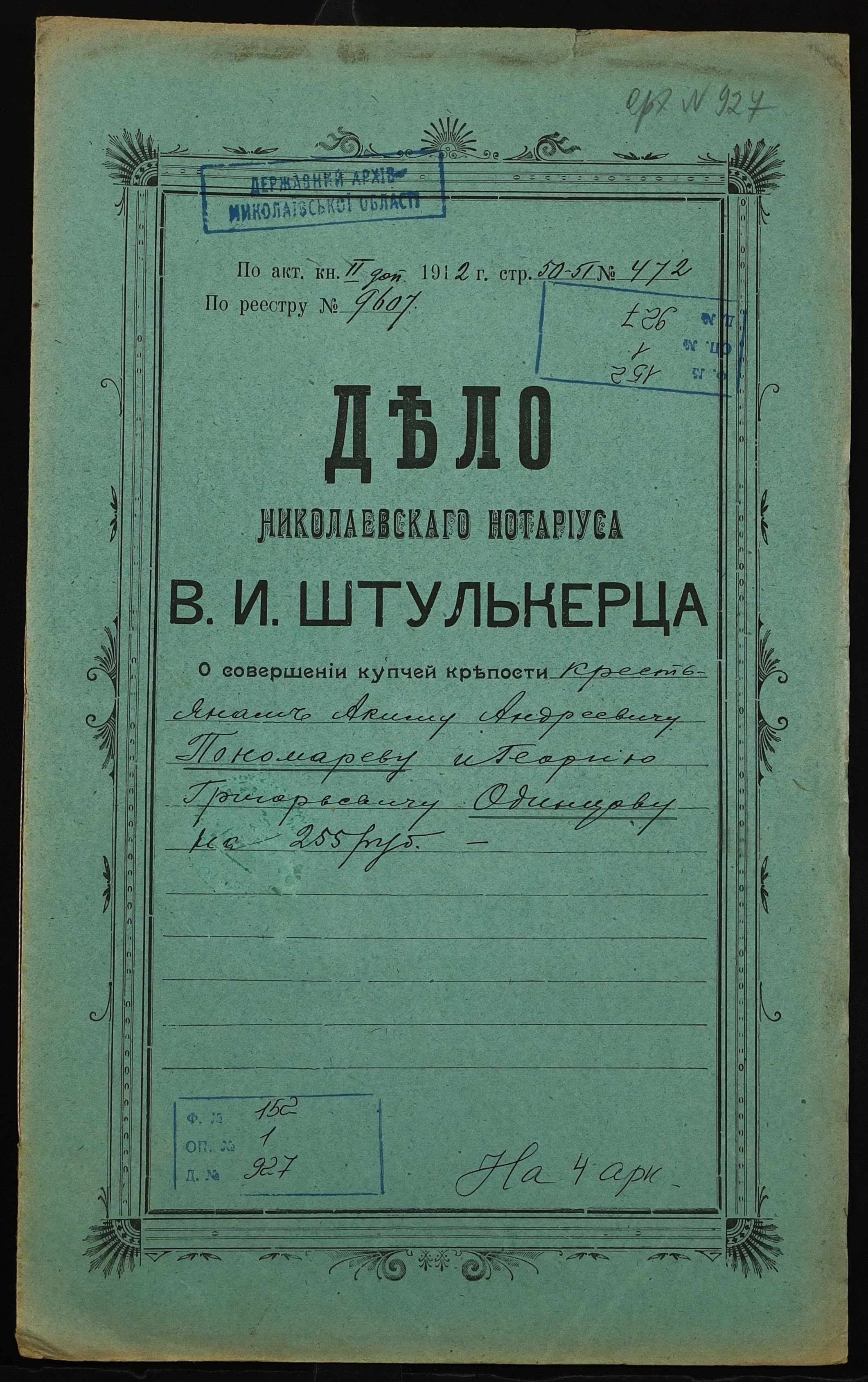 ◦ ◦ Фонд № 152 “Контора миколаївського нотаріуса Херсонського окружного суду Штулькерца Володимира Ісааковича”
