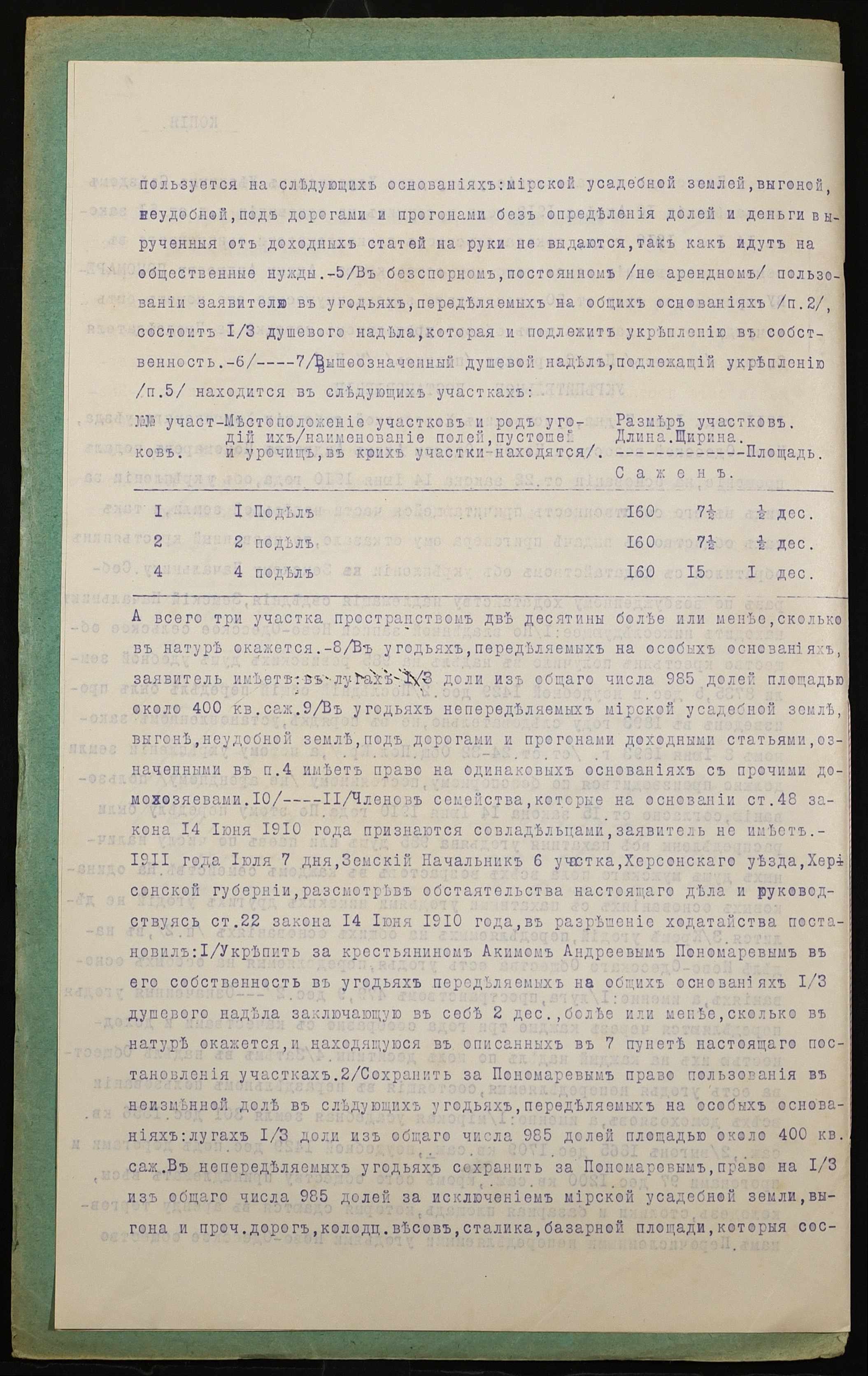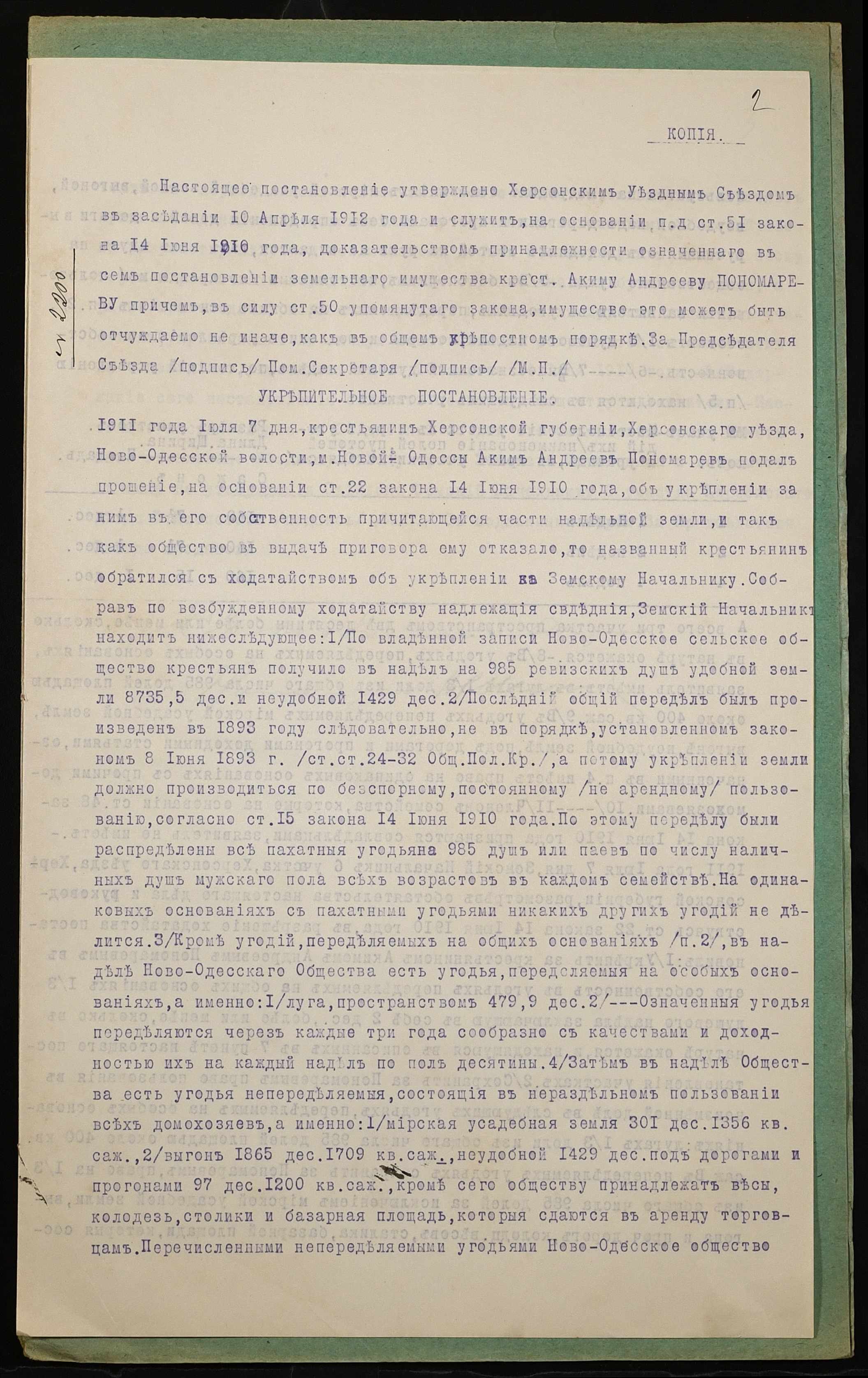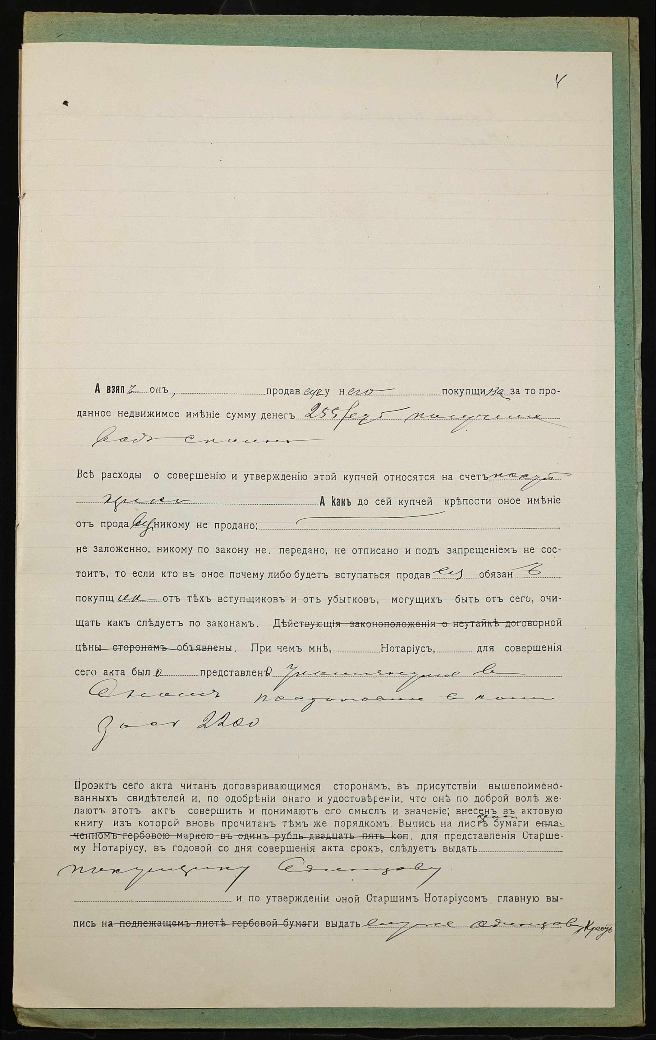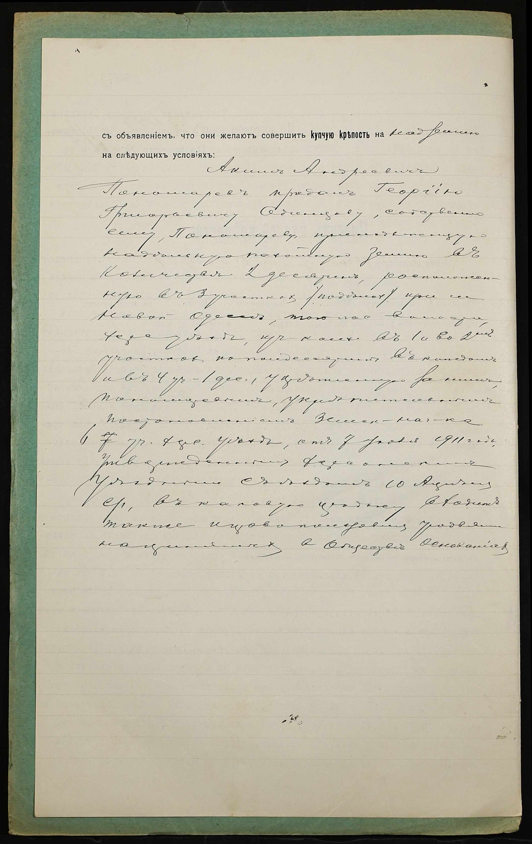 • • • • Справа № 927 “Справа про вчинення купчої про продаж землі селянином Пономарьовим Якимом Андрійовичем (Пономарёвым Акимом Андреевичем) на користь селянина Одинцова Георгія Григоровича (Одинцова Георгия Григорьевича)”
