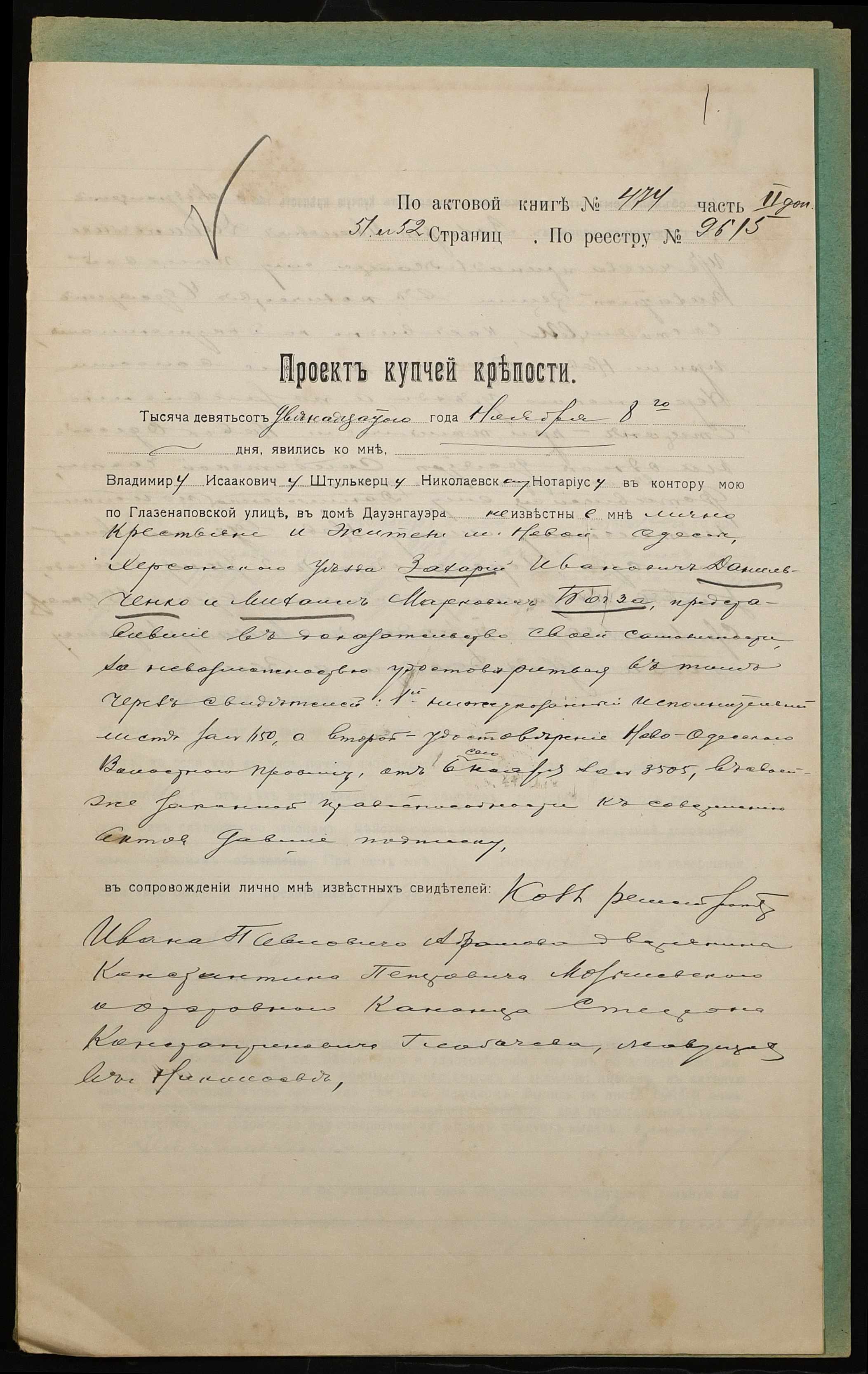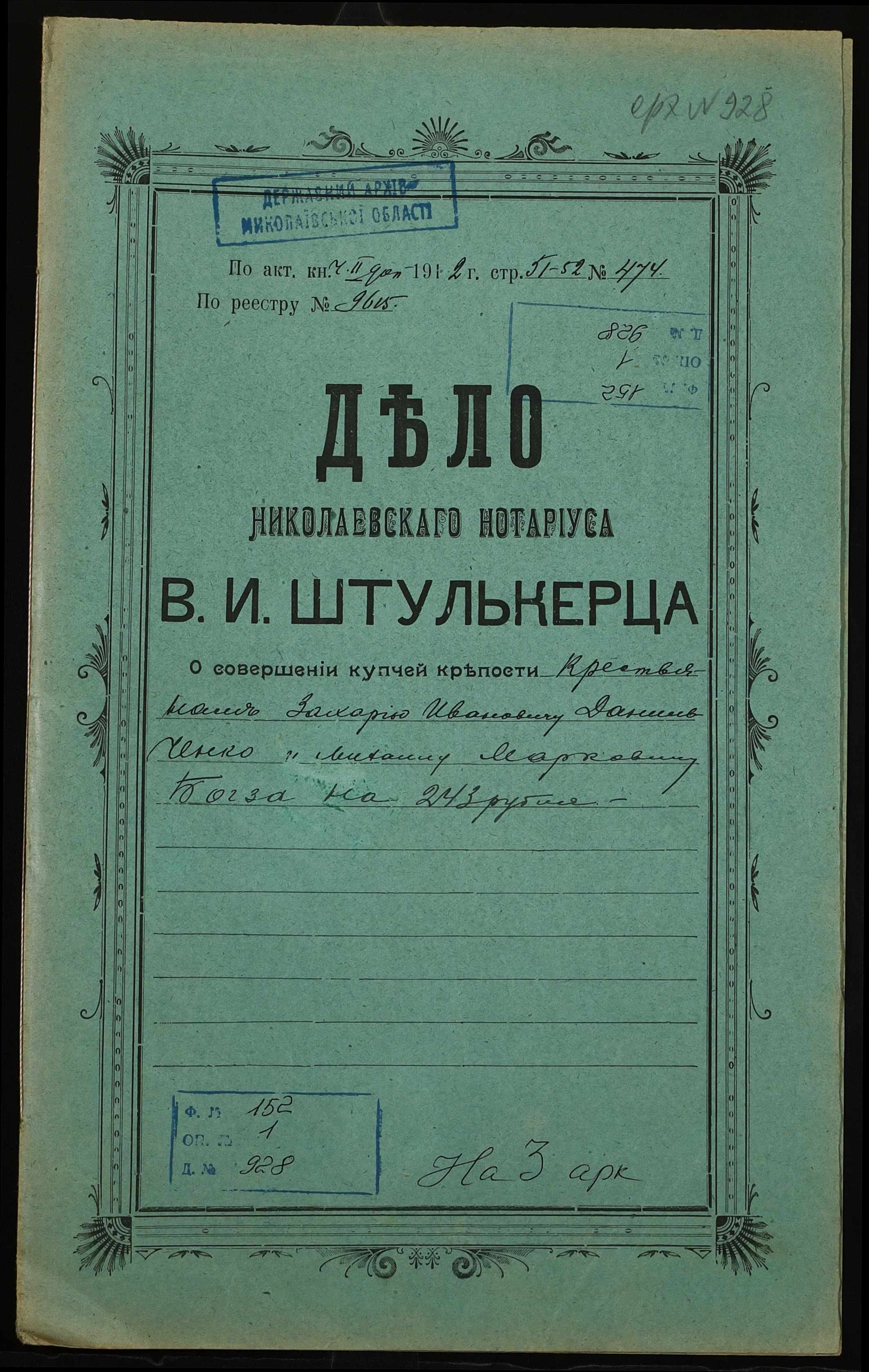 ◦ ◦ Фонд № 152 “Контора миколаївського нотаріуса Херсонського окружного суду Штулькерца Володимира Ісааковича”