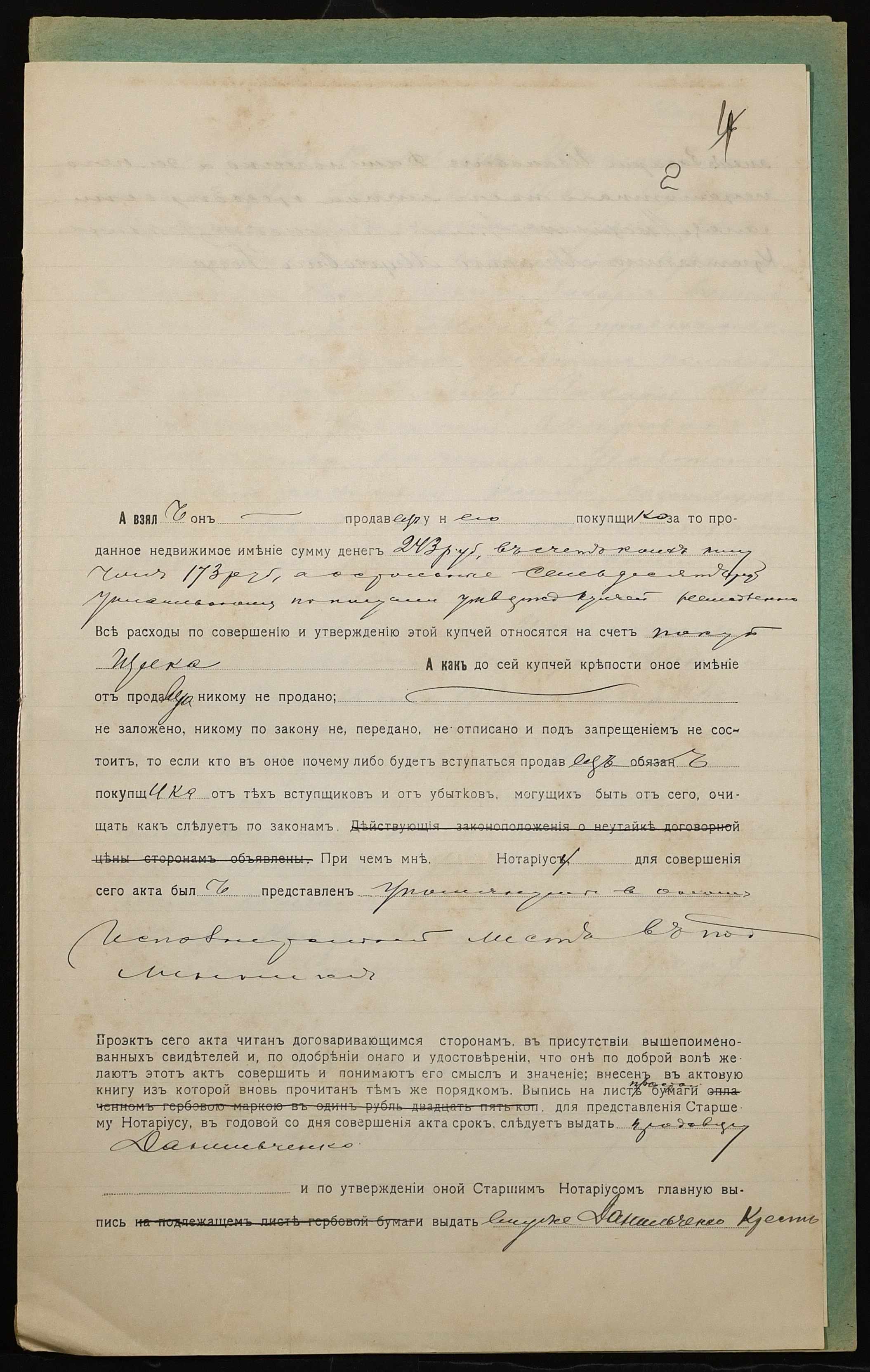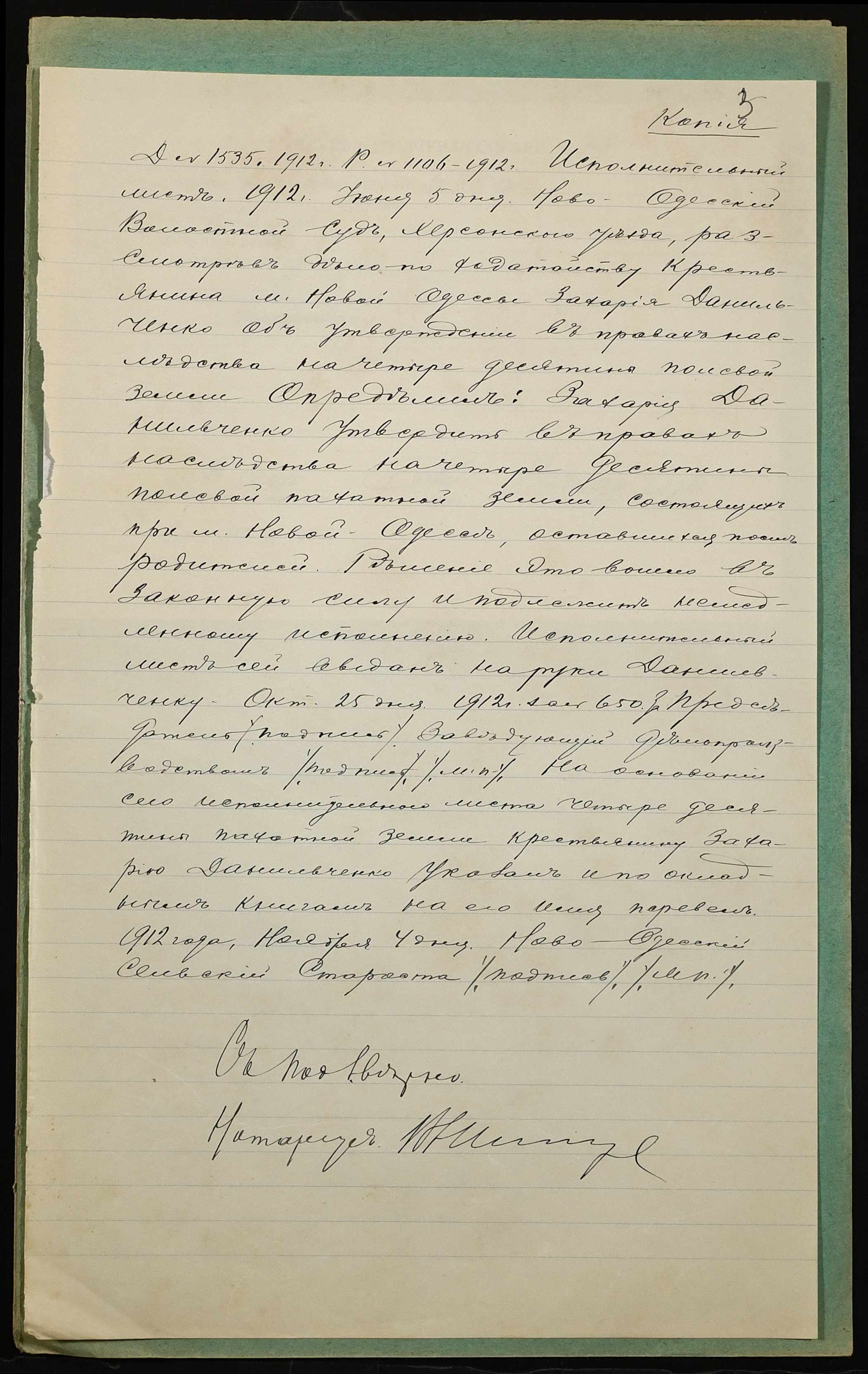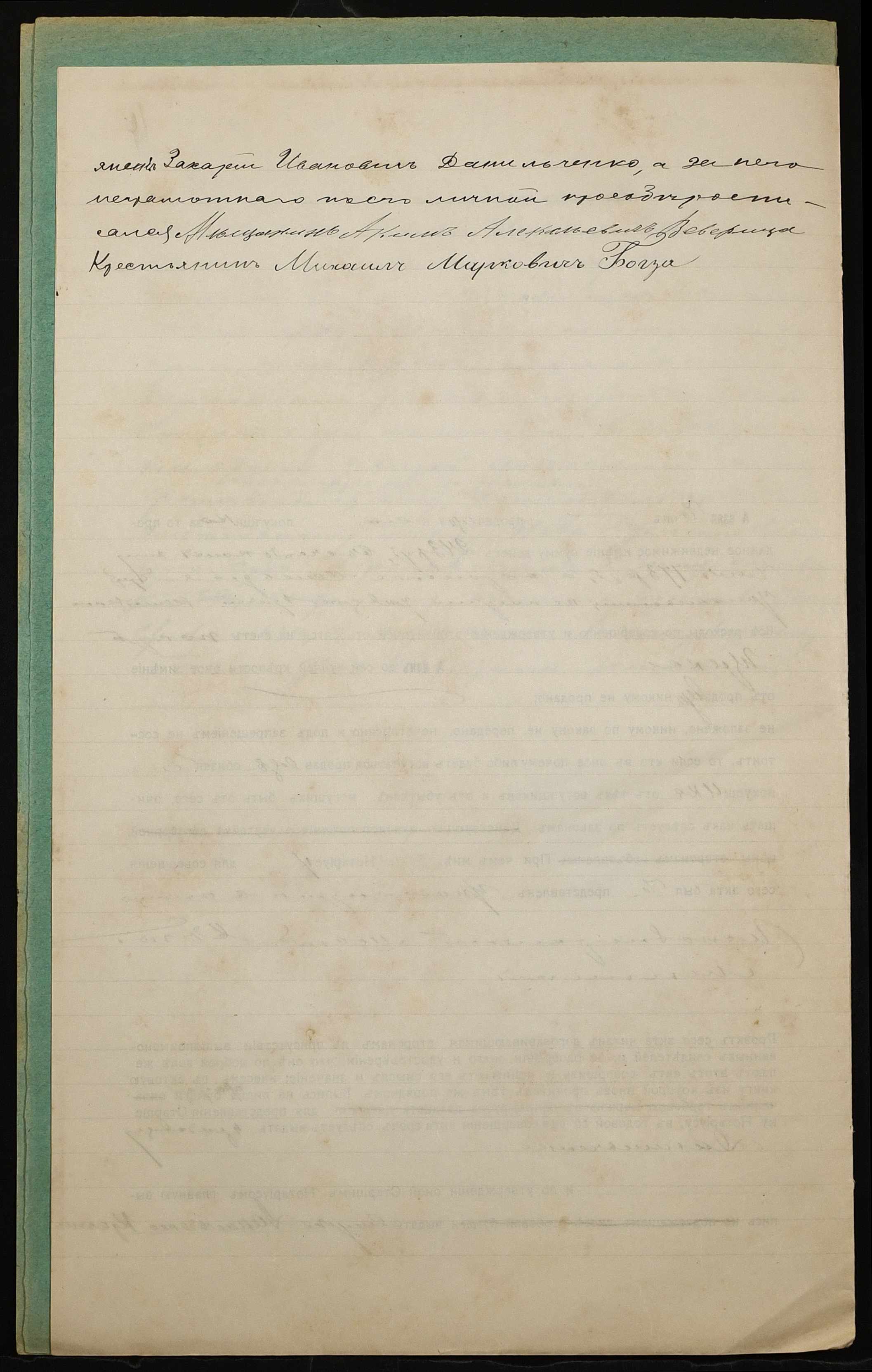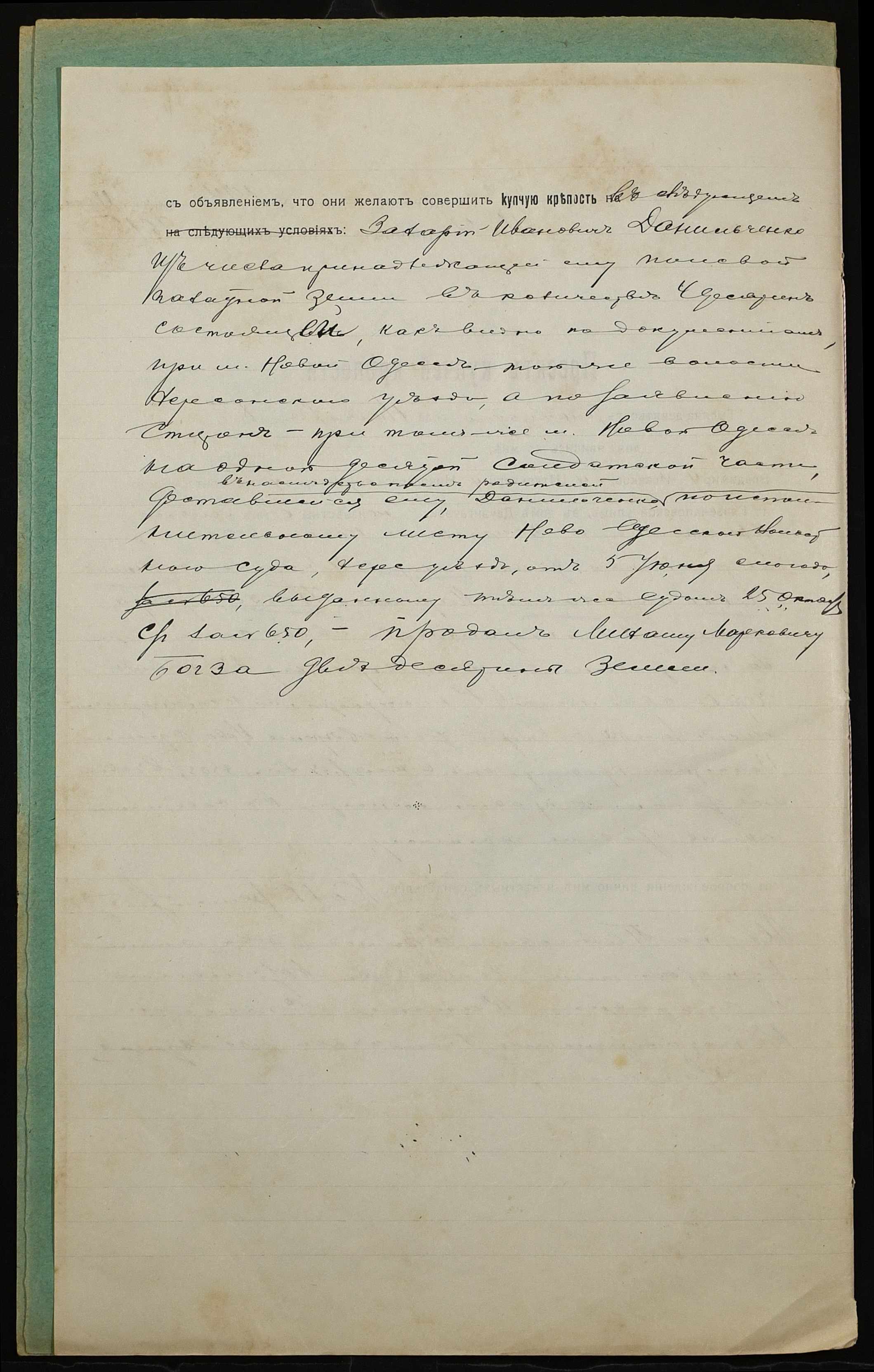 • • • • Справа № 928 “Справа про вчинення купчої про продаж землі селянином Данильченком Захарієм Івановичем (Данильченко Захарием Ивановичем) на користь селянина Богзи Михайла Марковича (Бозги Михаила Марковича)”