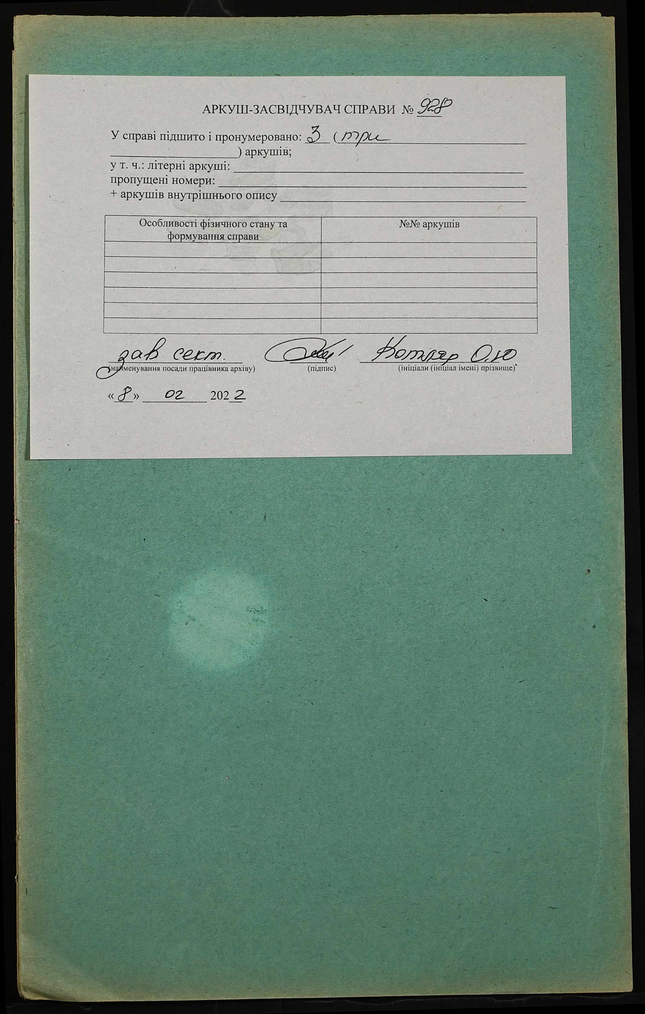 Фонд 152 / Опис 1 / Справа 0928