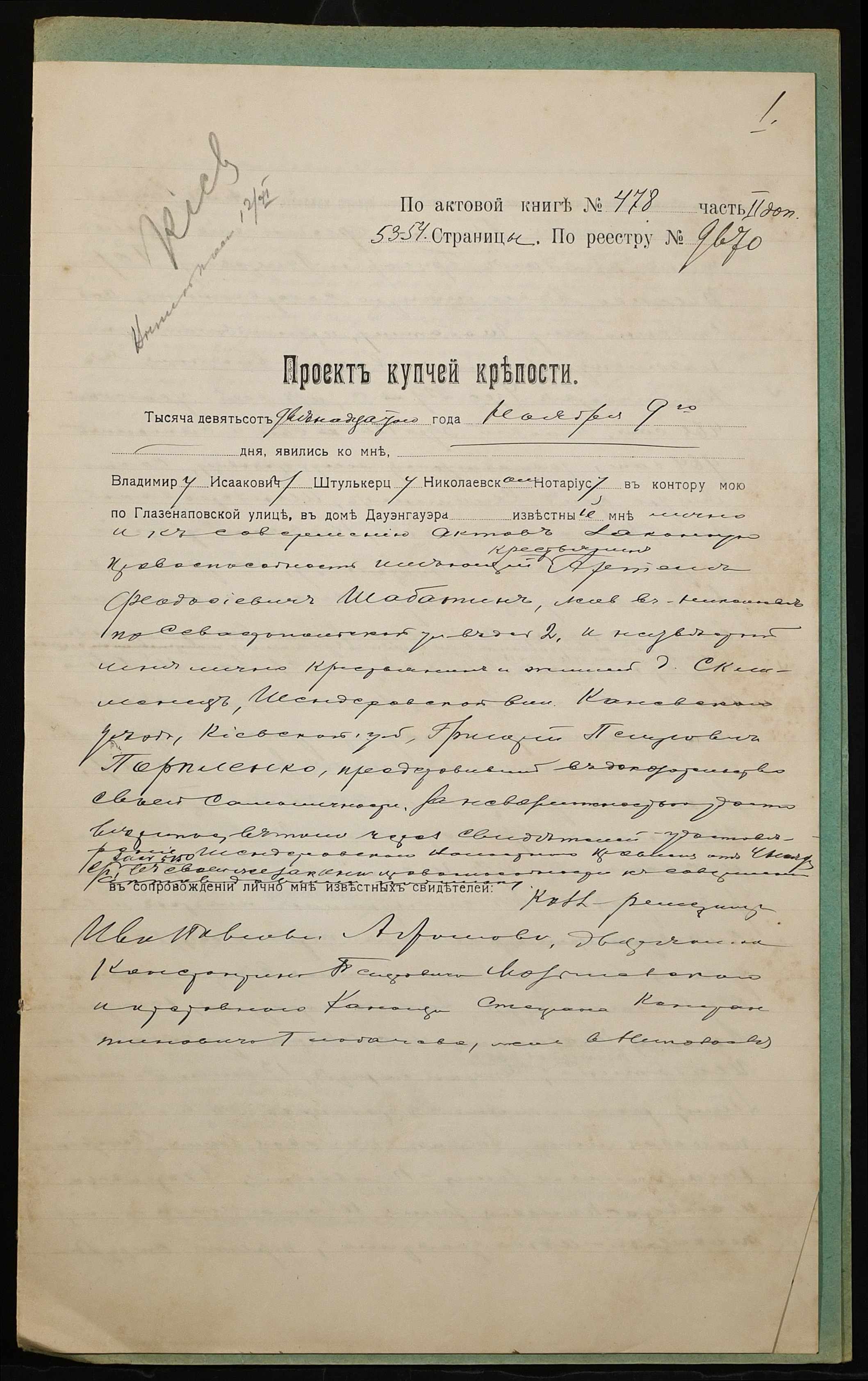 ◦ ◦ Фонд № 152 “Контора миколаївського нотаріуса Херсонського окружного суду Штулькерца Володимира Ісааковича”