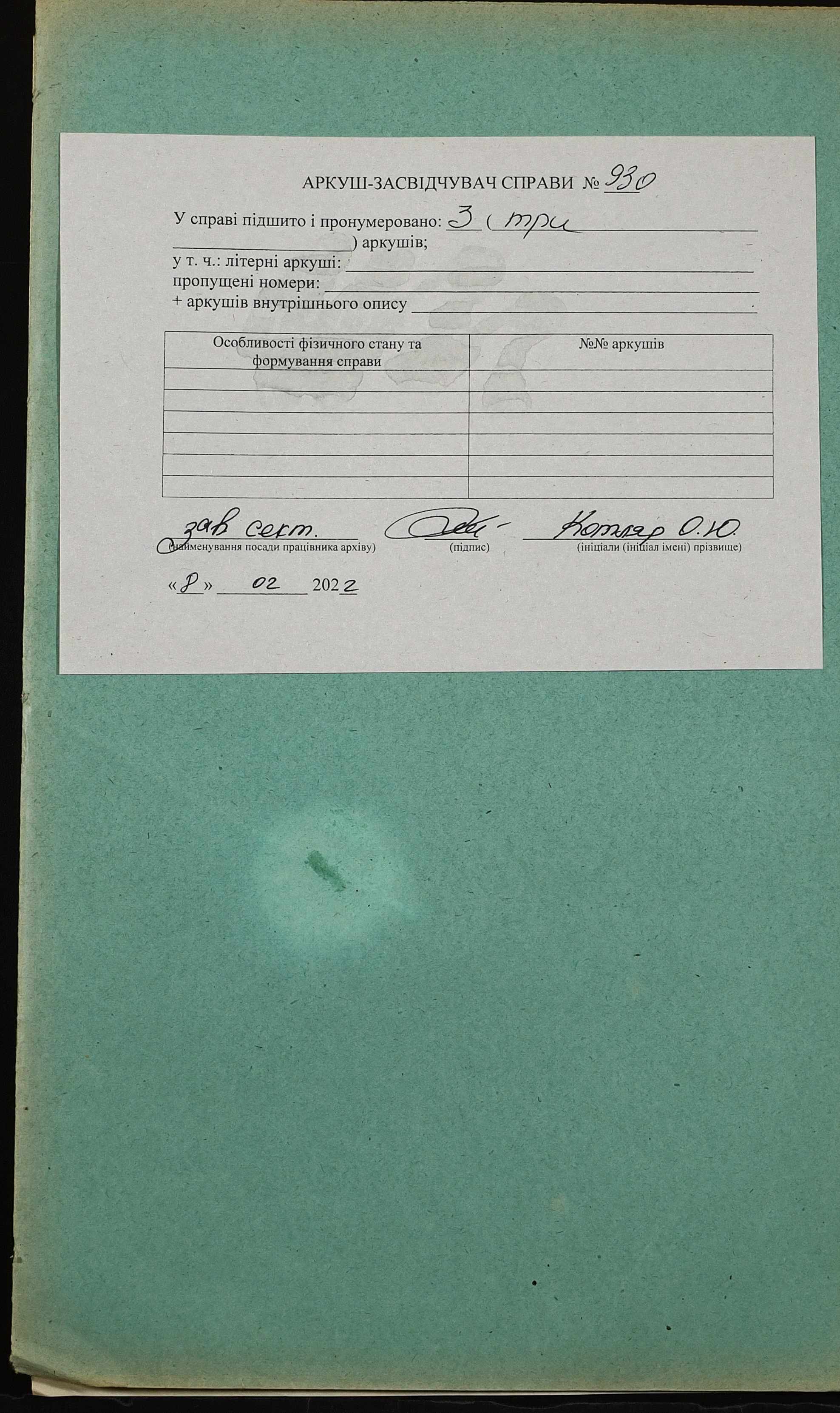 Фонд 152 / Опис 1 / Справа 0930