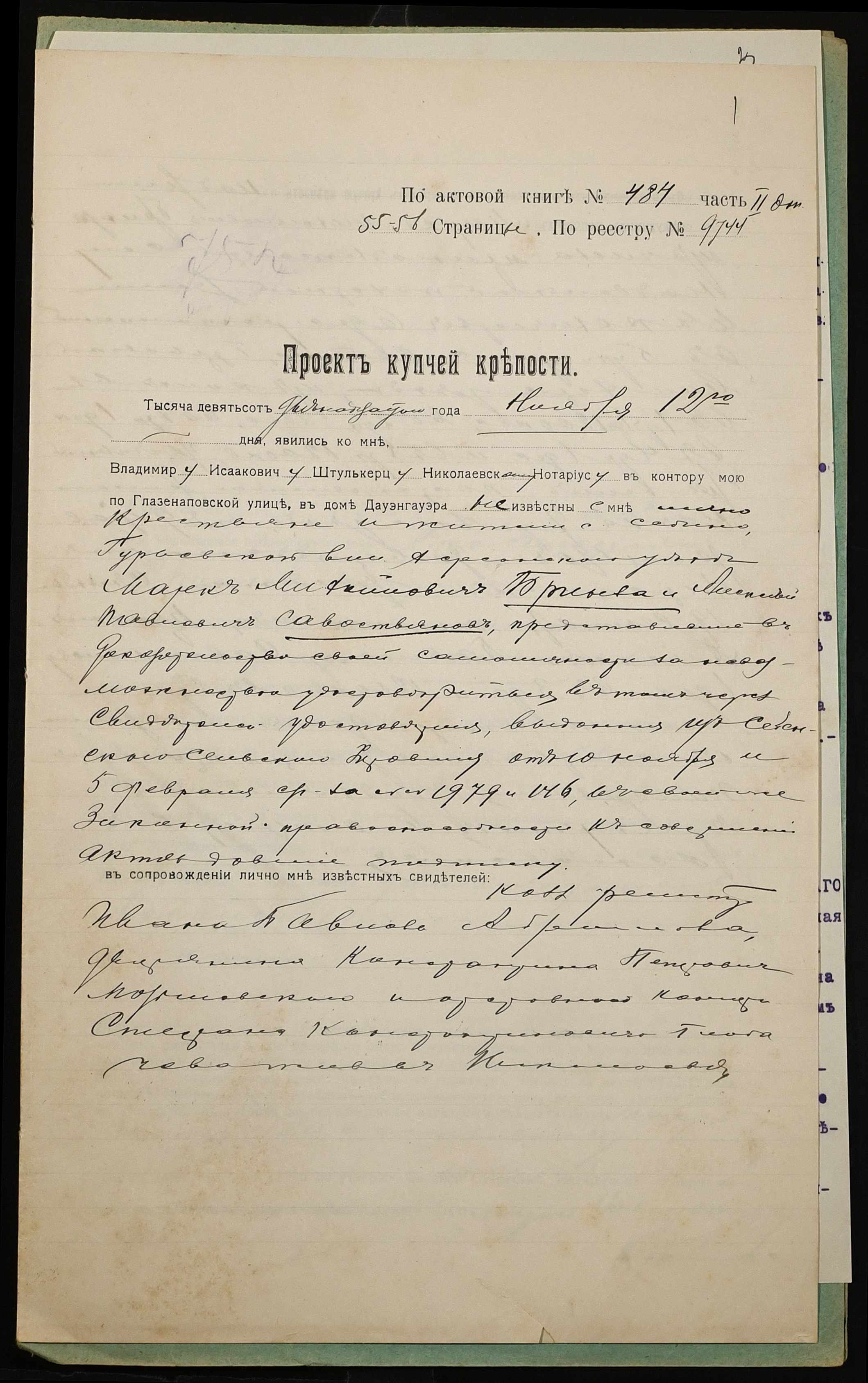 ◦ ◦ Фонд № 152 “Контора миколаївського нотаріуса Херсонського окружного суду Штулькерца Володимира Ісааковича”