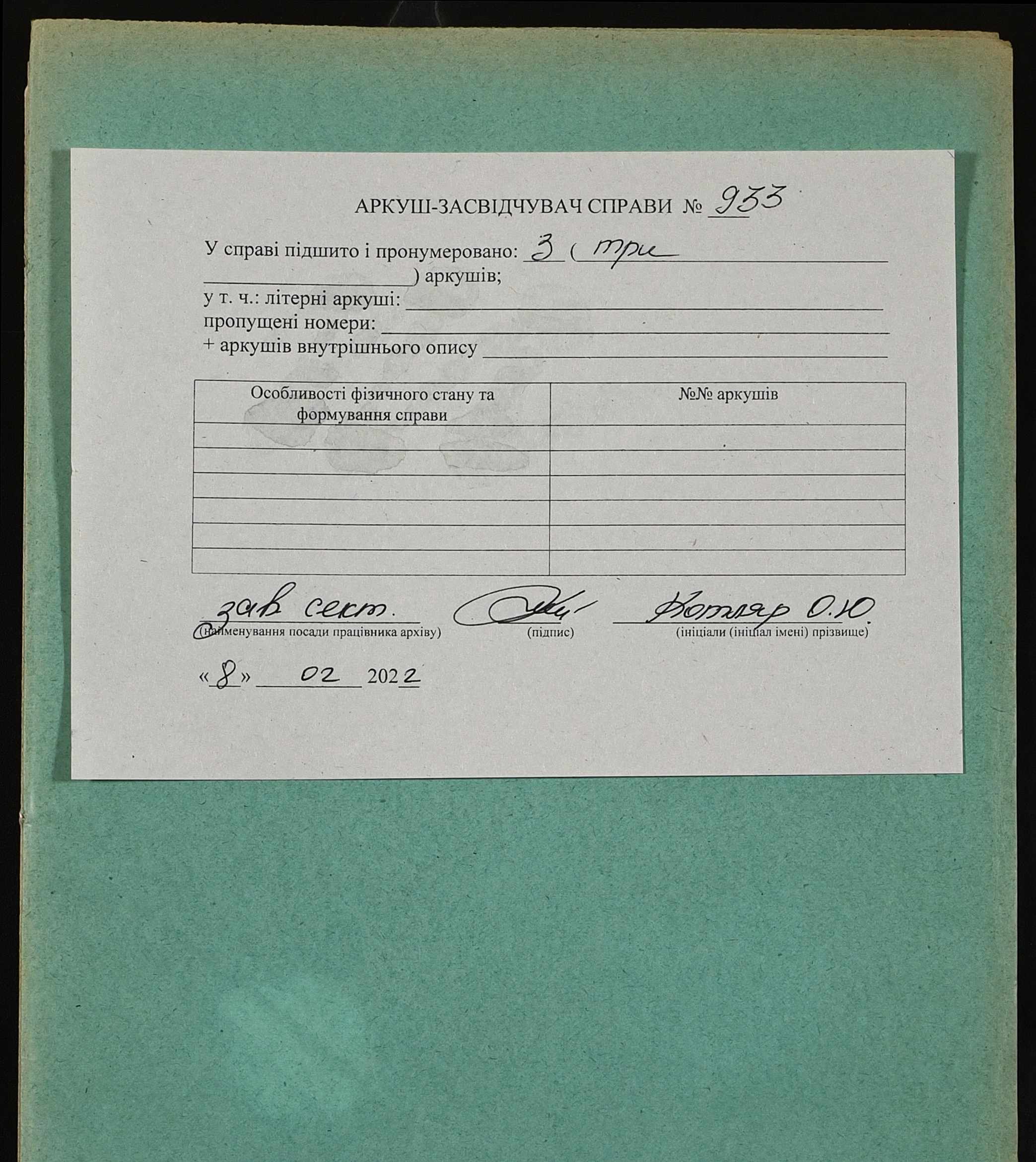 Фонд 152 / Опис 1 / Справа 0933
