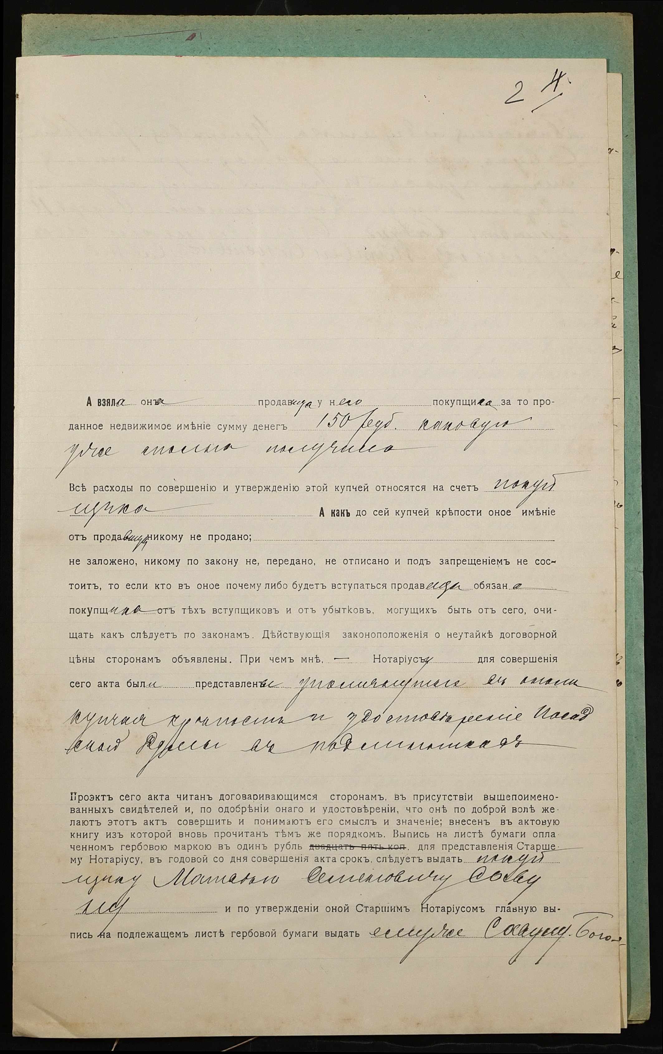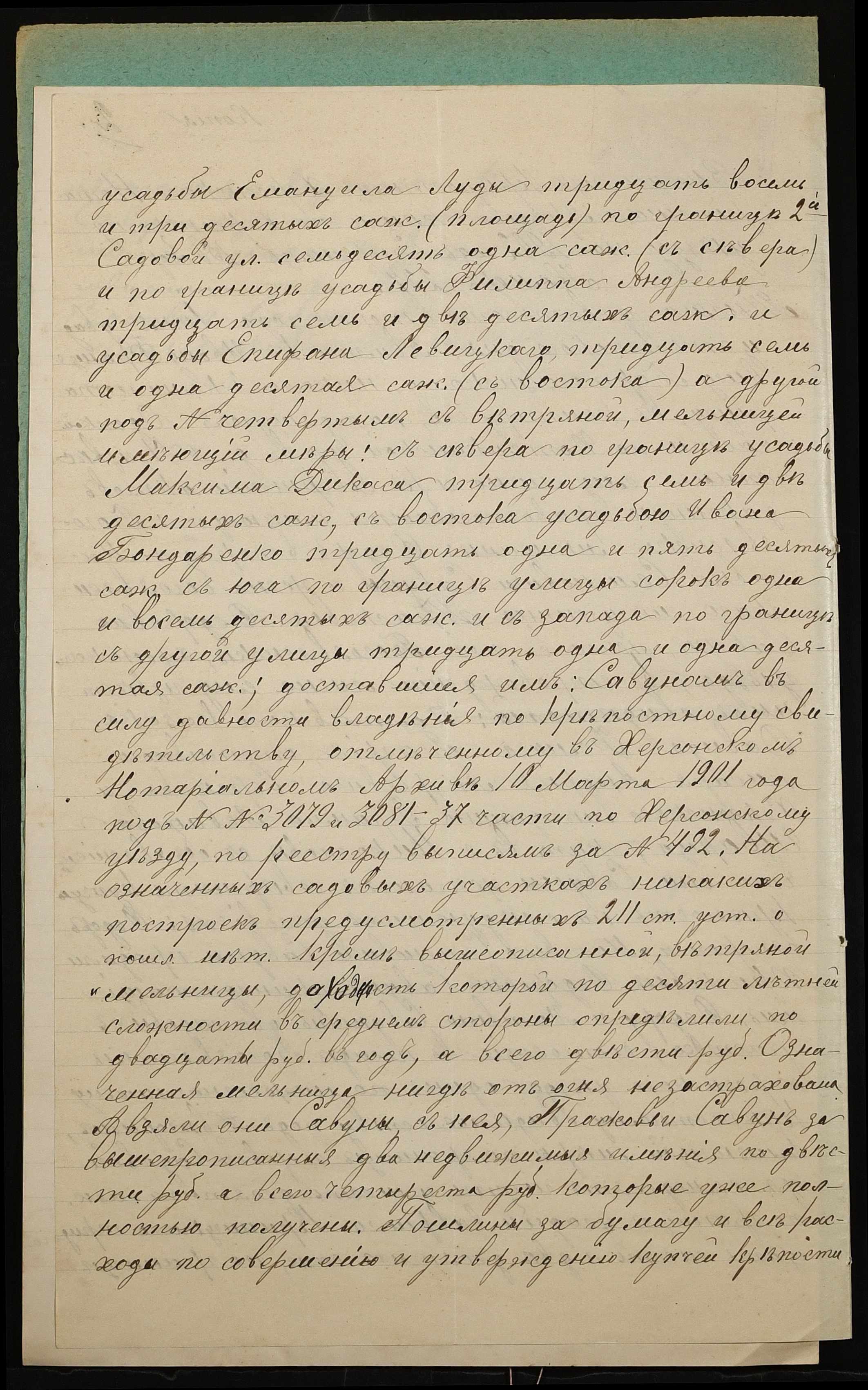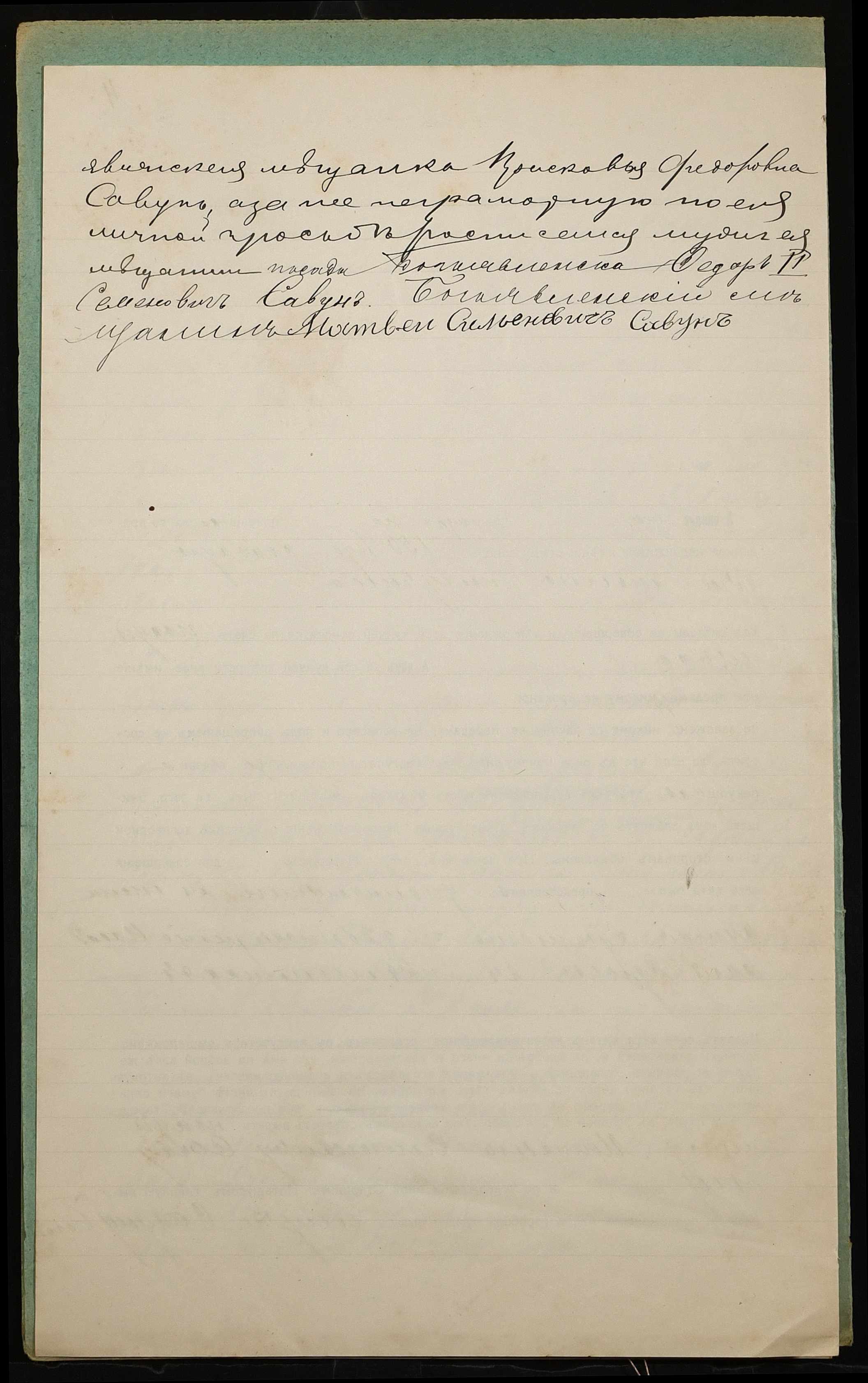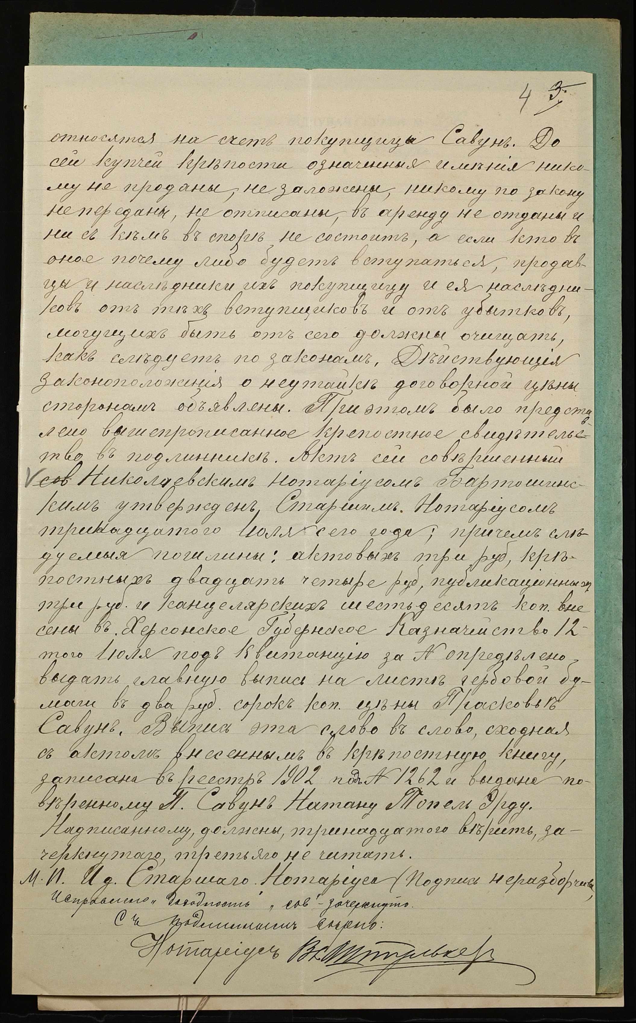 • • • • Справа № 936 “Справа про вчинення купчої про продаж нерухомого майна міщанкою Савун Парасковією Федорівною (Савун Прасковьей Федоровной) на користь міщанина Савуна Матвія Семеновича (Савуна Матвея Семеновича)”