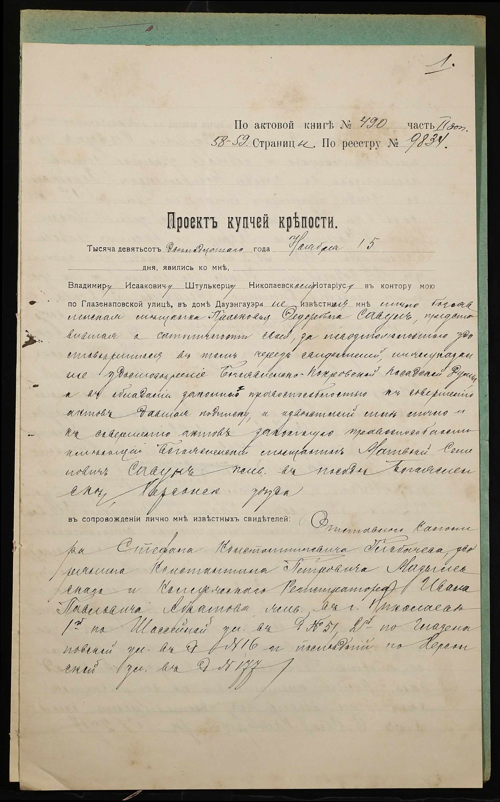 ◦ ◦ Фонд № 152 “Контора миколаївського нотаріуса Херсонського окружного суду Штулькерца Володимира Ісааковича”