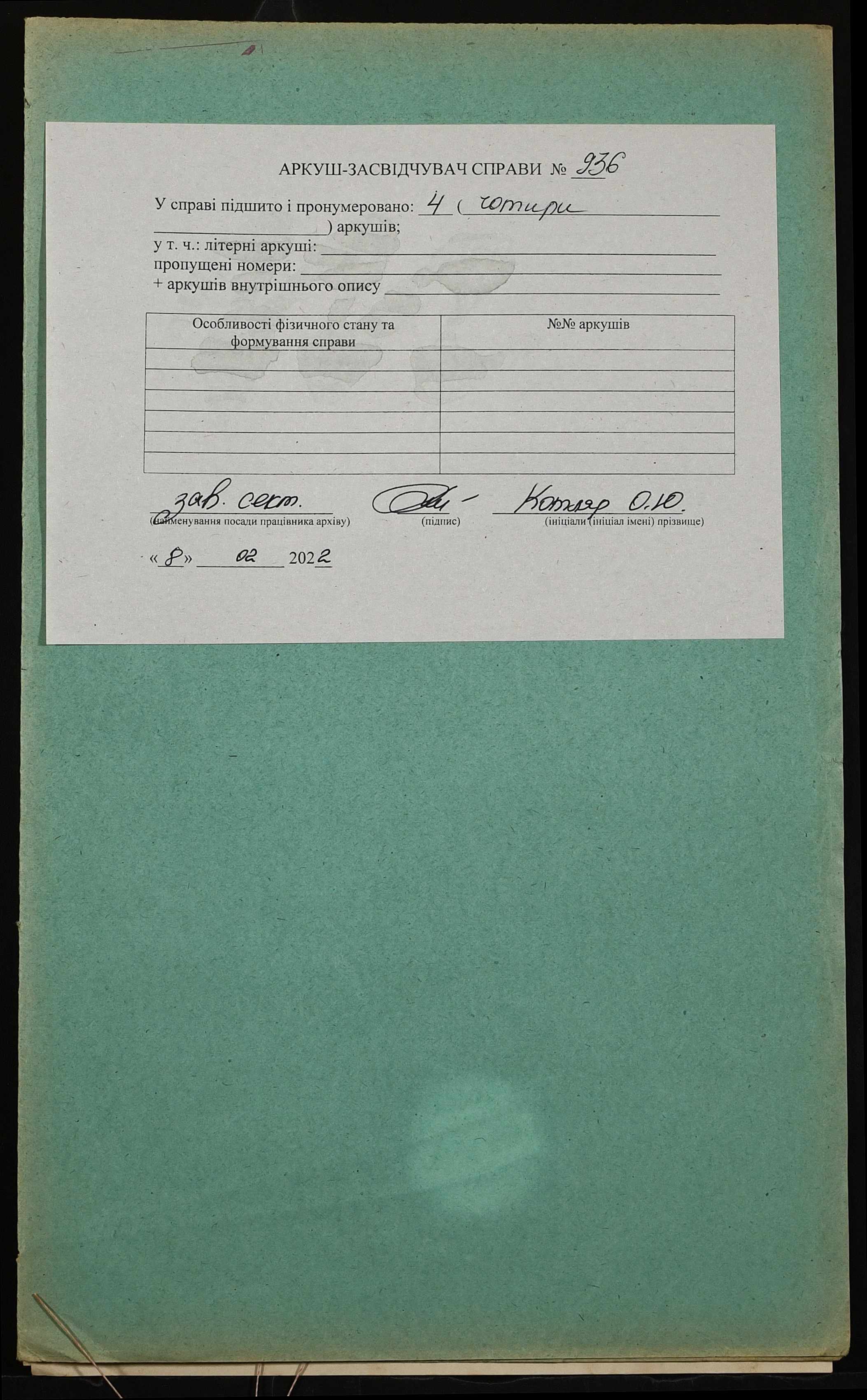 Фонд 152 / Опис 1 / Справа 0936