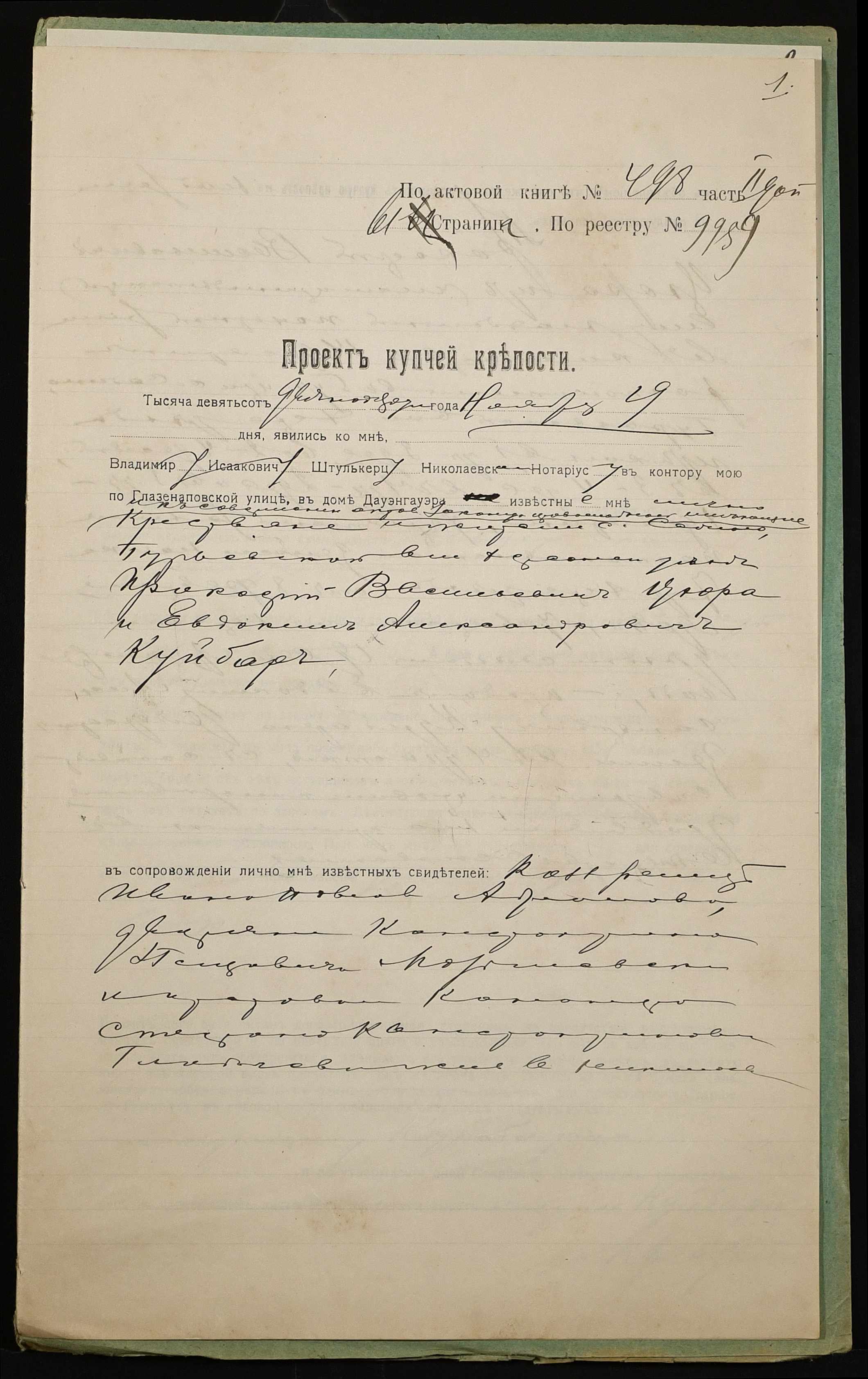◦ ◦ Фонд № 152 “Контора миколаївського нотаріуса Херсонського окружного суду Штулькерца Володимира Ісааковича”