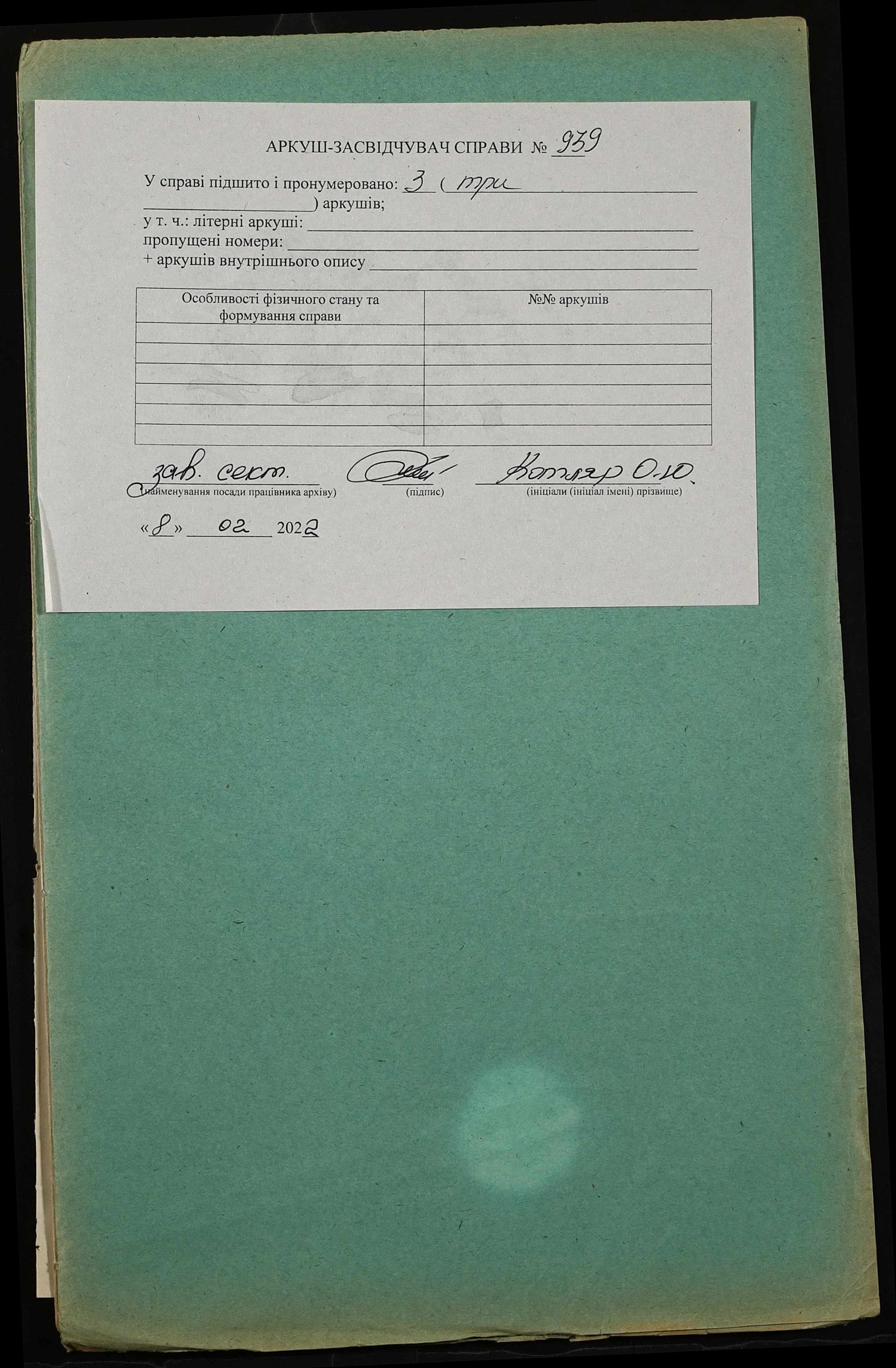 Фонд 152 / Опис 1 / Справа 0939