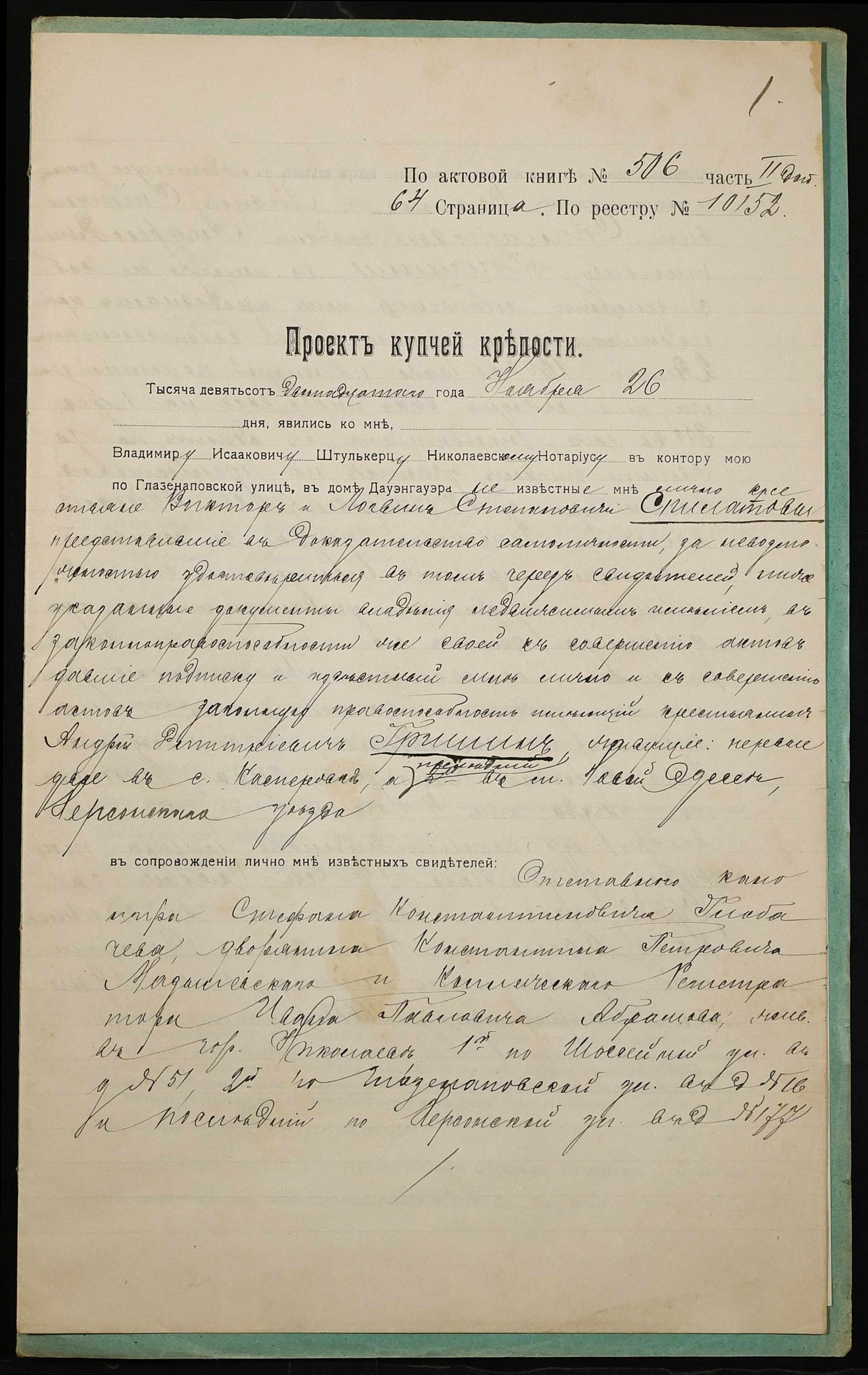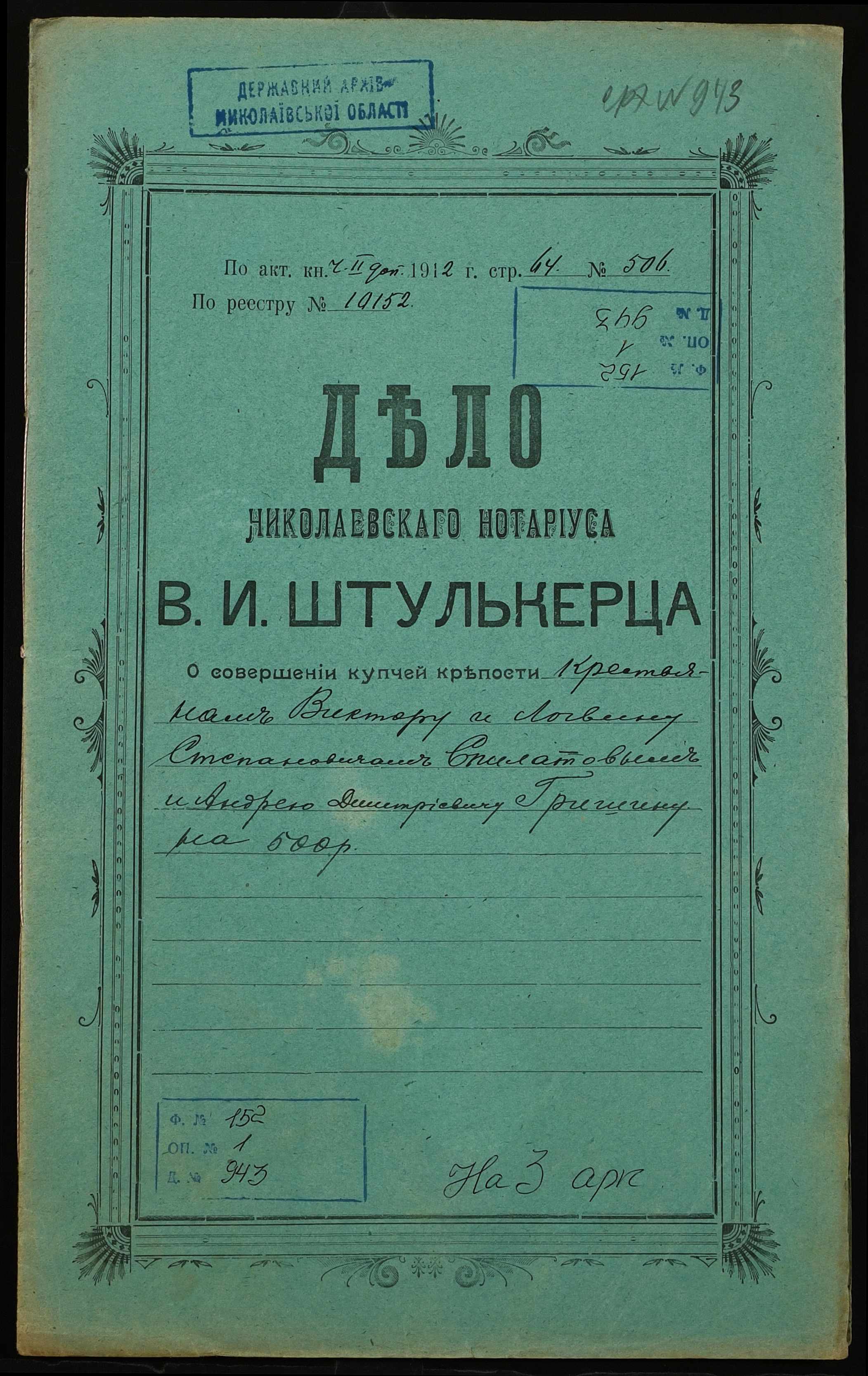 ◦ ◦ Фонд № 152 “Контора миколаївського нотаріуса Херсонського окружного суду Штулькерца Володимира Ісааковича”