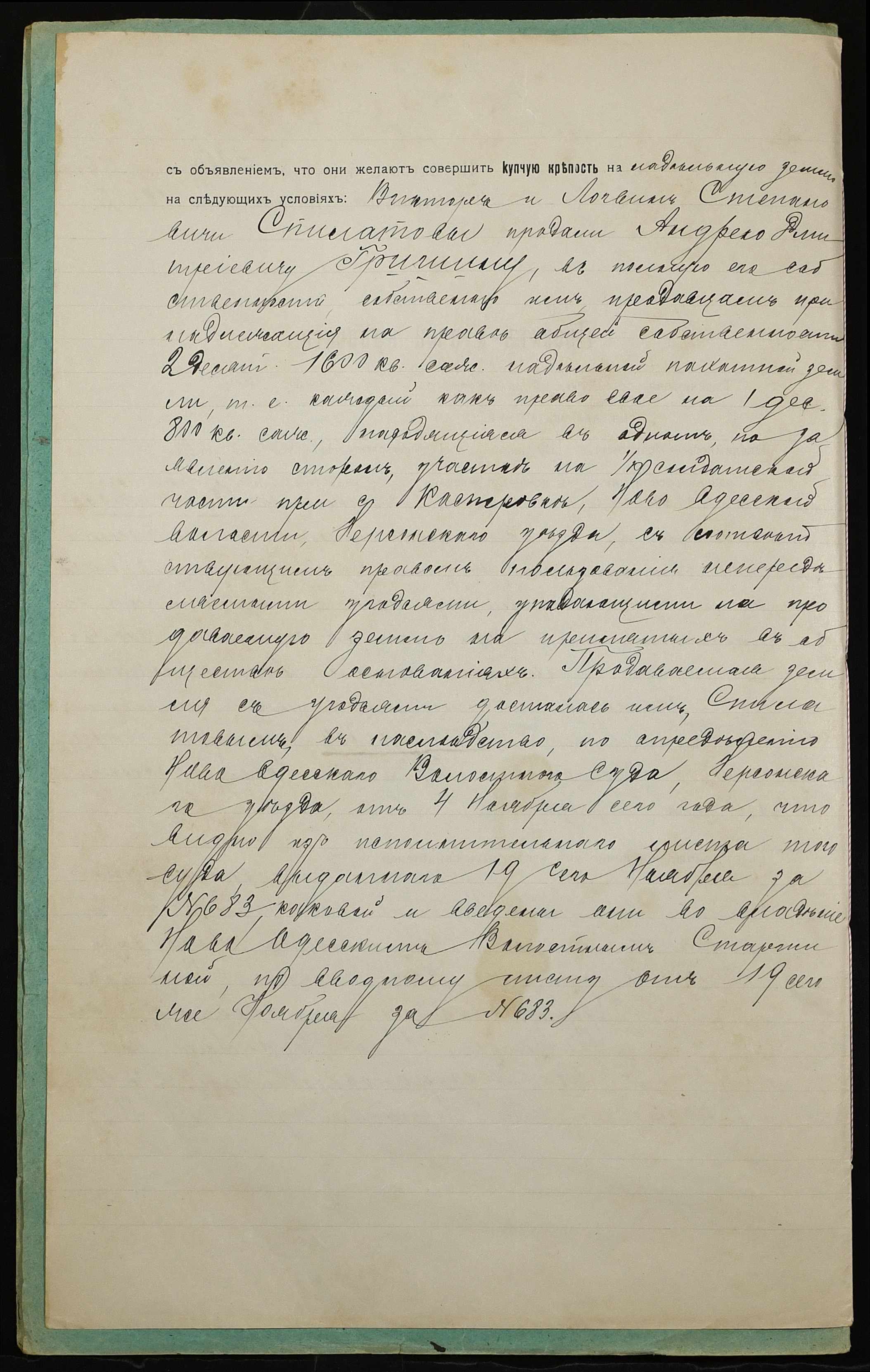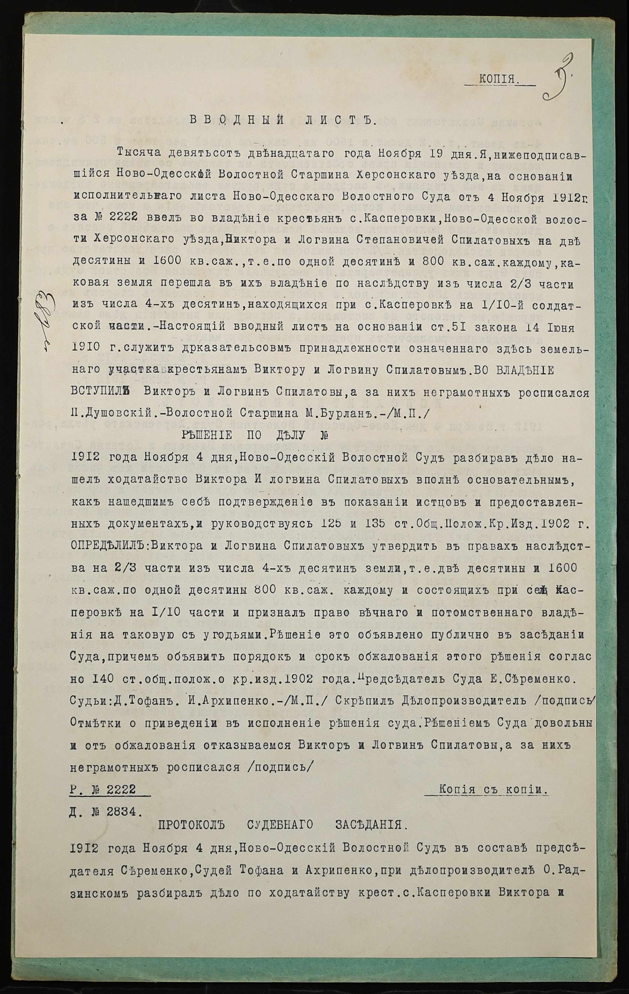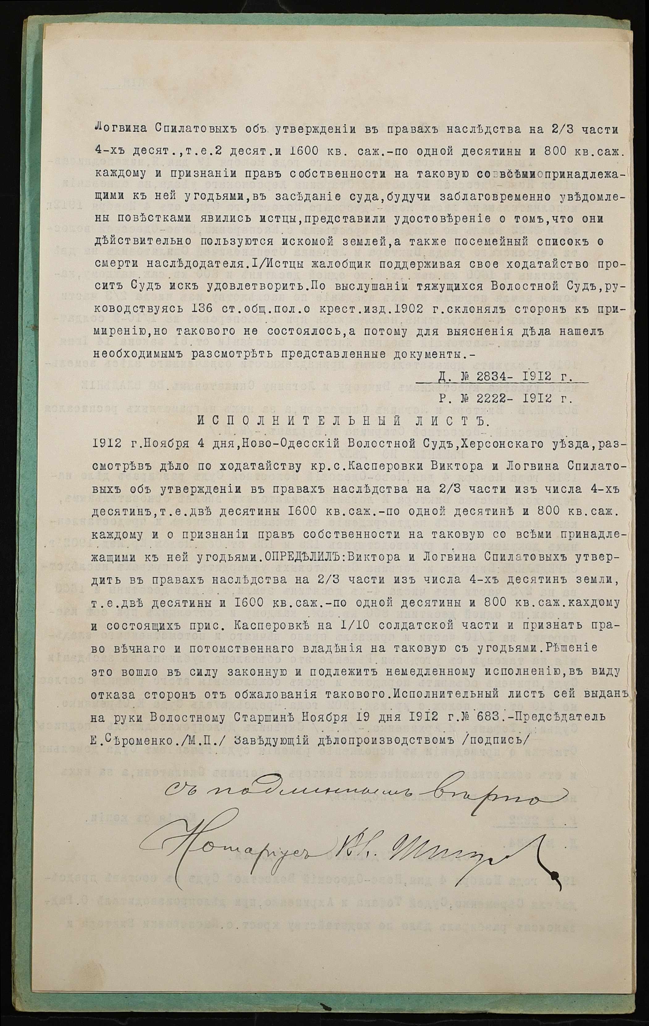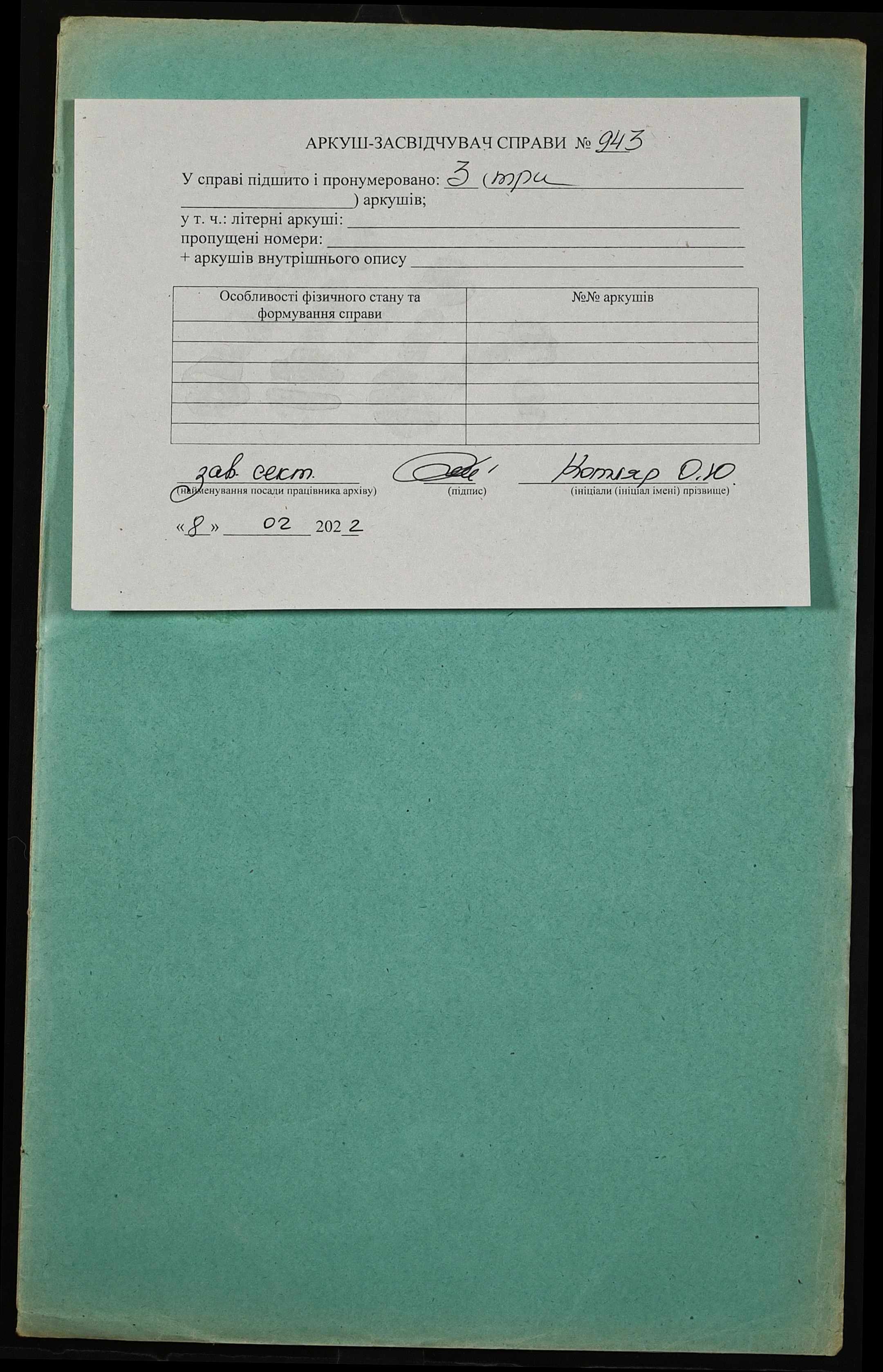 • • • • Справа № 943 “Справа про вчинення купчої про продаж землі селянами Спілатовими Віктором і Логвином Степановичами (Спилатовыми Виктором и Логвином Степановичем) на користь селянина Гришина Андрія Дмитровича (Гришина Андрея Дмитриевича)”