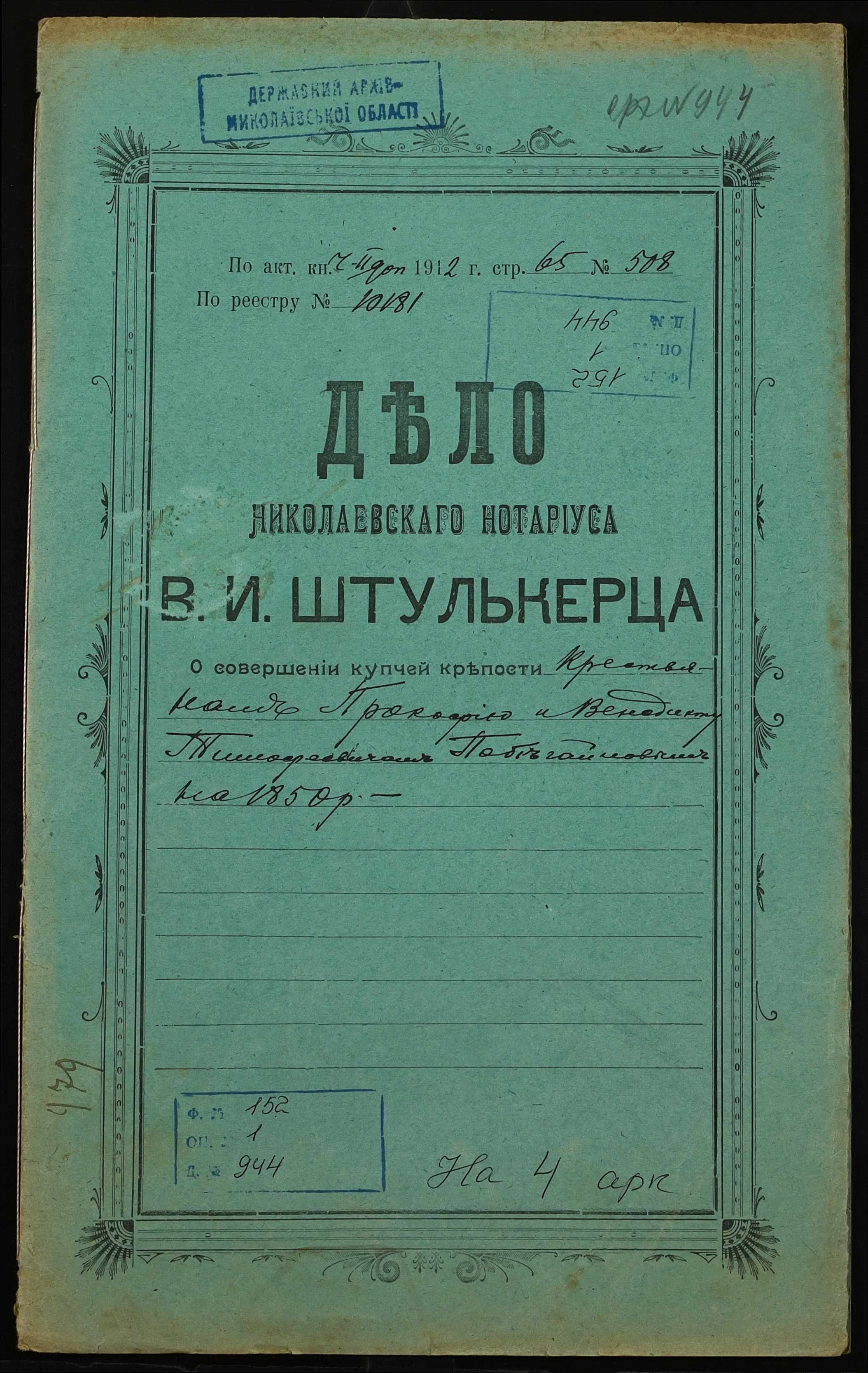 ◦ ◦ Фонд № 152 “Контора миколаївського нотаріуса Херсонського окружного суду Штулькерца Володимира Ісааковича”