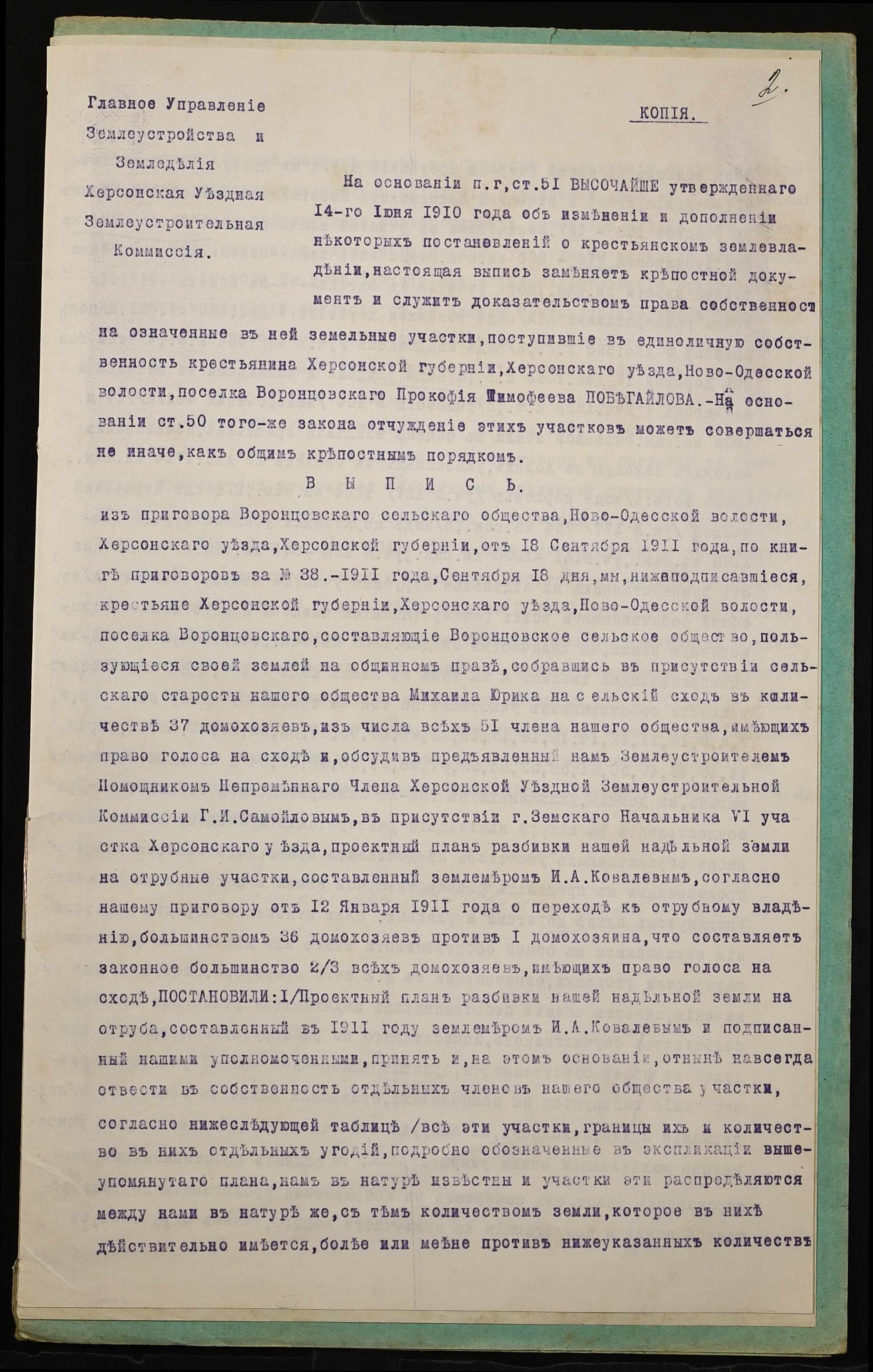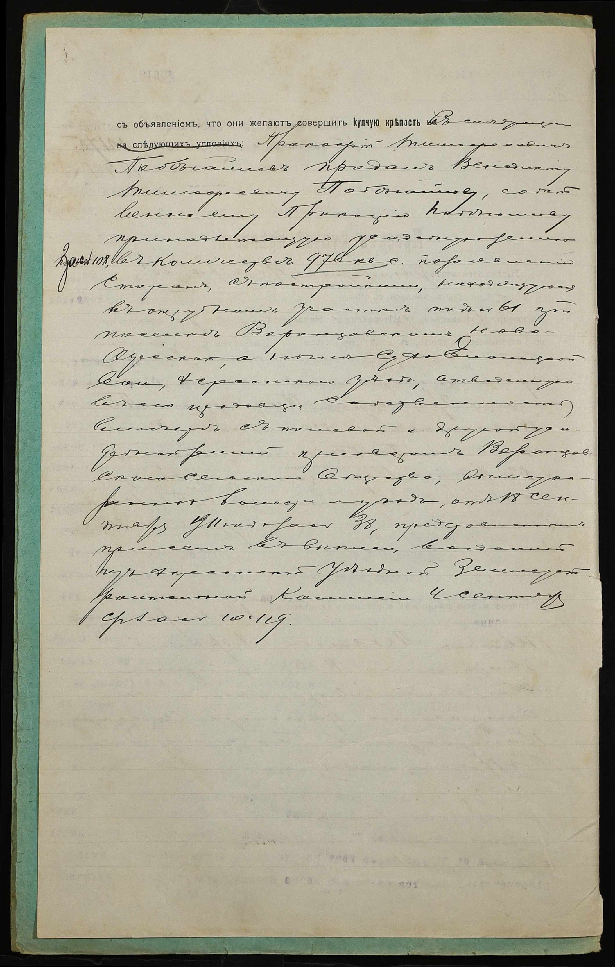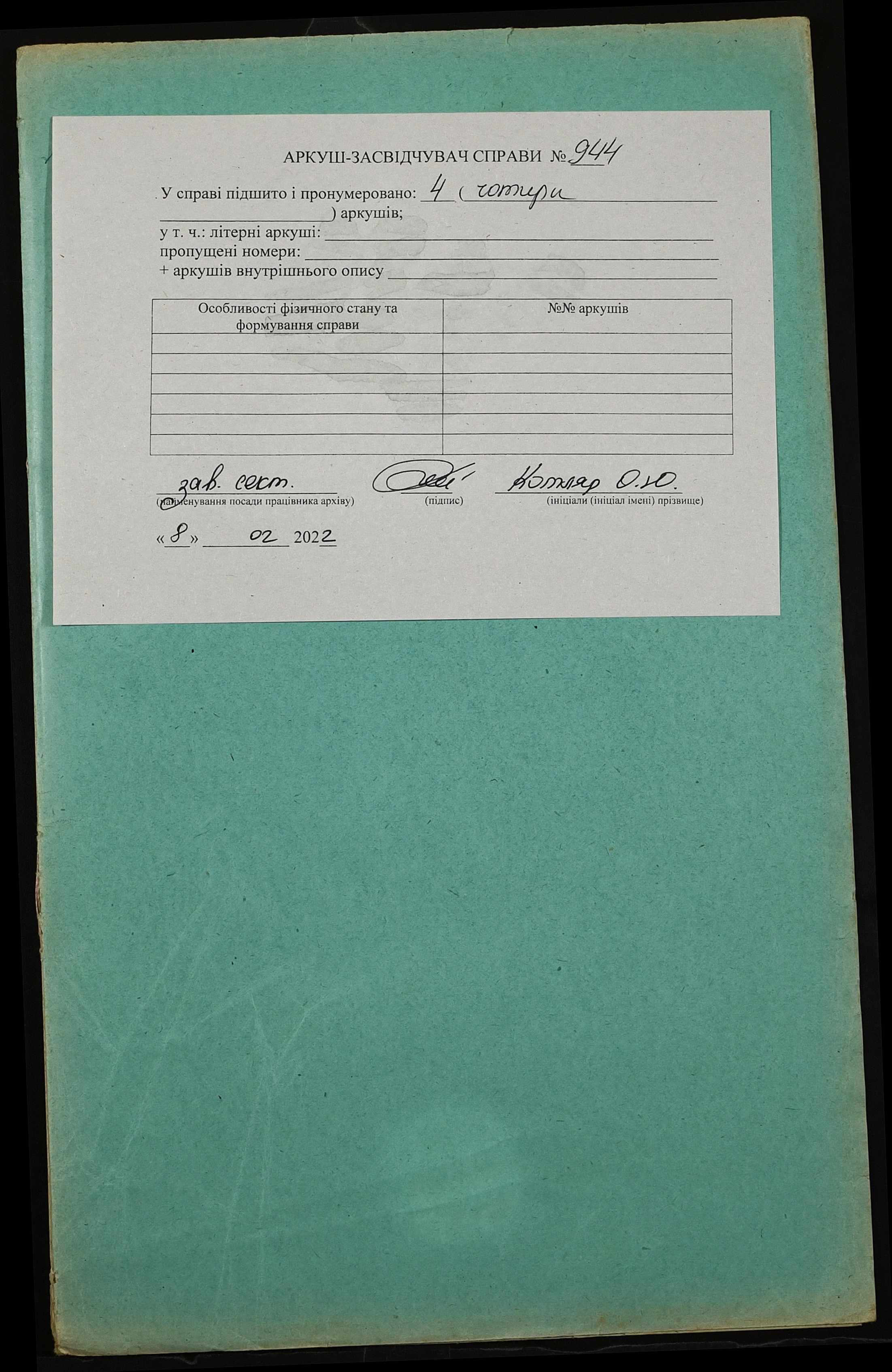 • • • • Справа № 944 “Справа про вчинення купчої про продаж землі селянином Побєгайловим Прокопом Тимофійовичем (Побегайловым Прокофием Тимофеевичем) на користь селянина Побєгайлова Венедикта Тимофійовича (Побегайлова Венедикта Тимофеевича)”