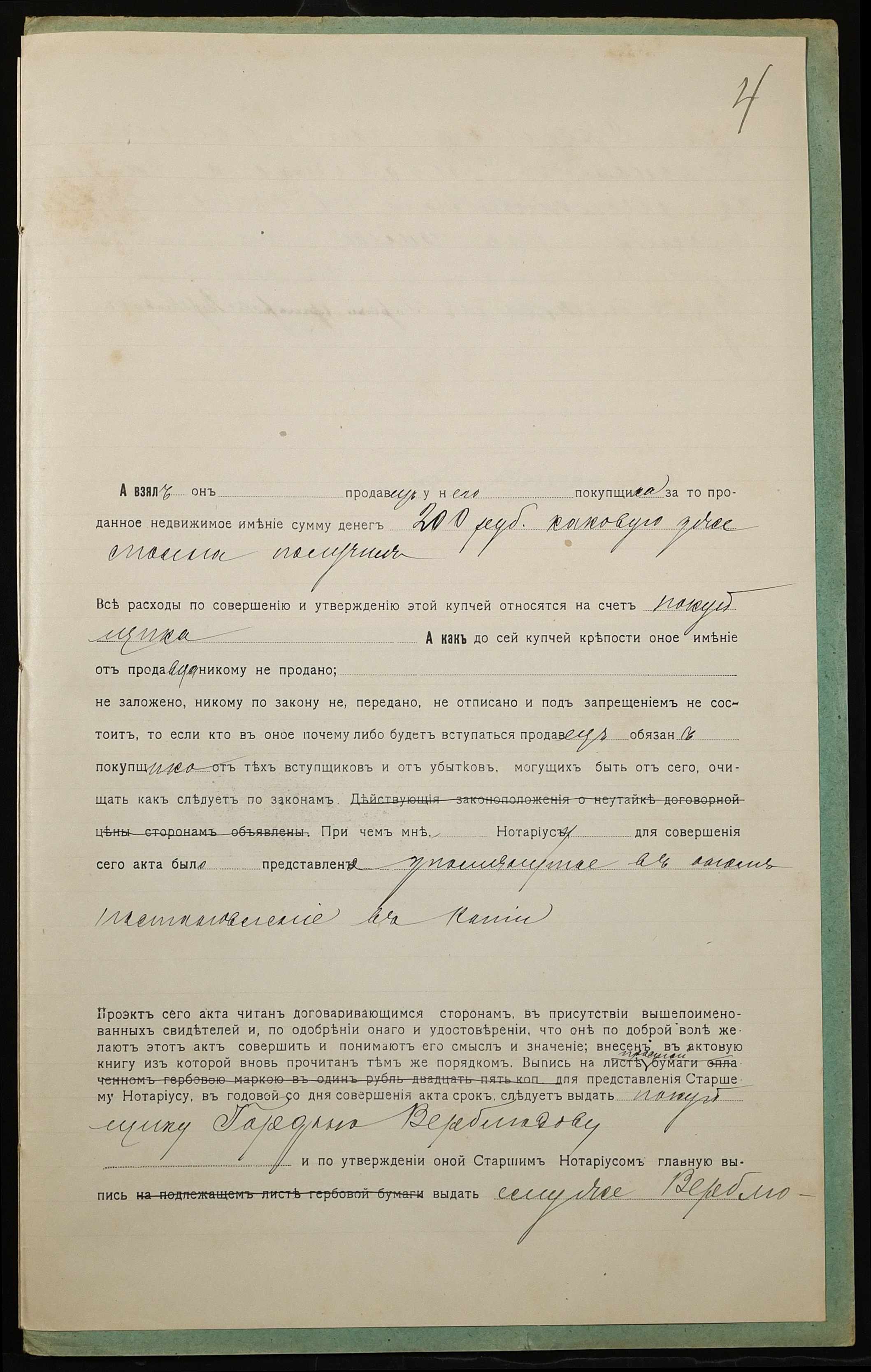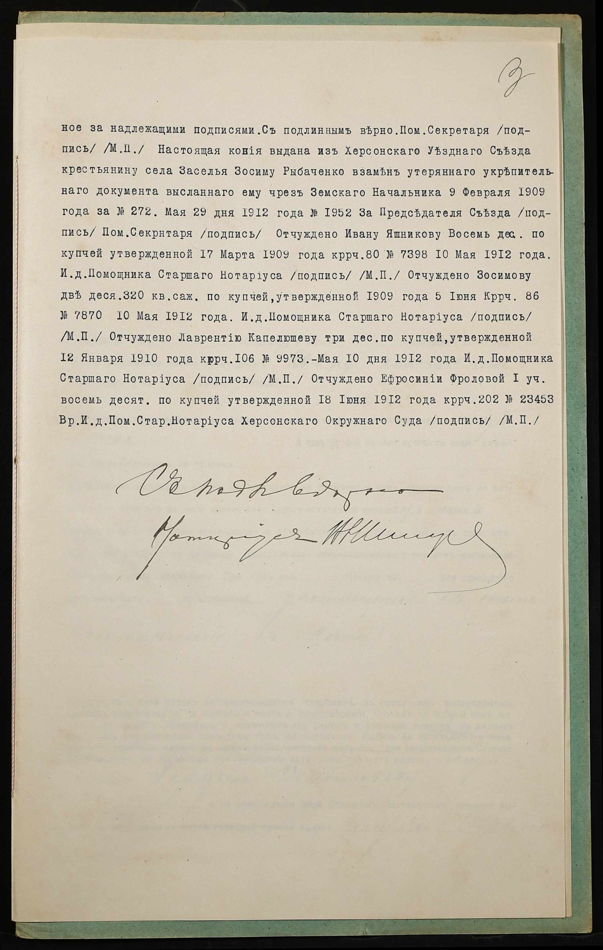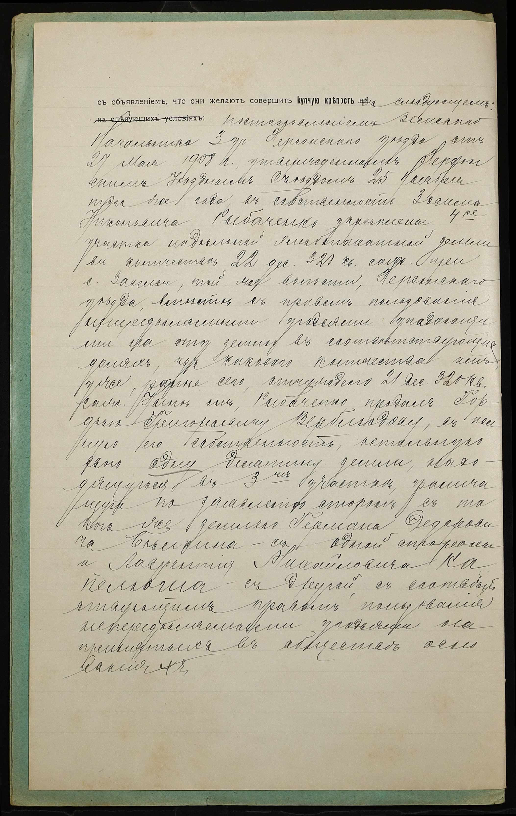 • • • • Справа № 946 “Справа про вчинення купчої про продаж землі селянином Верблюдовим Гордієм Григоровичем (Верблюдовым Гордеем Григорьевичем) на користь селянина Рибаченка Василя Никоновича (Рыбаченко Василия Никоновича)”
