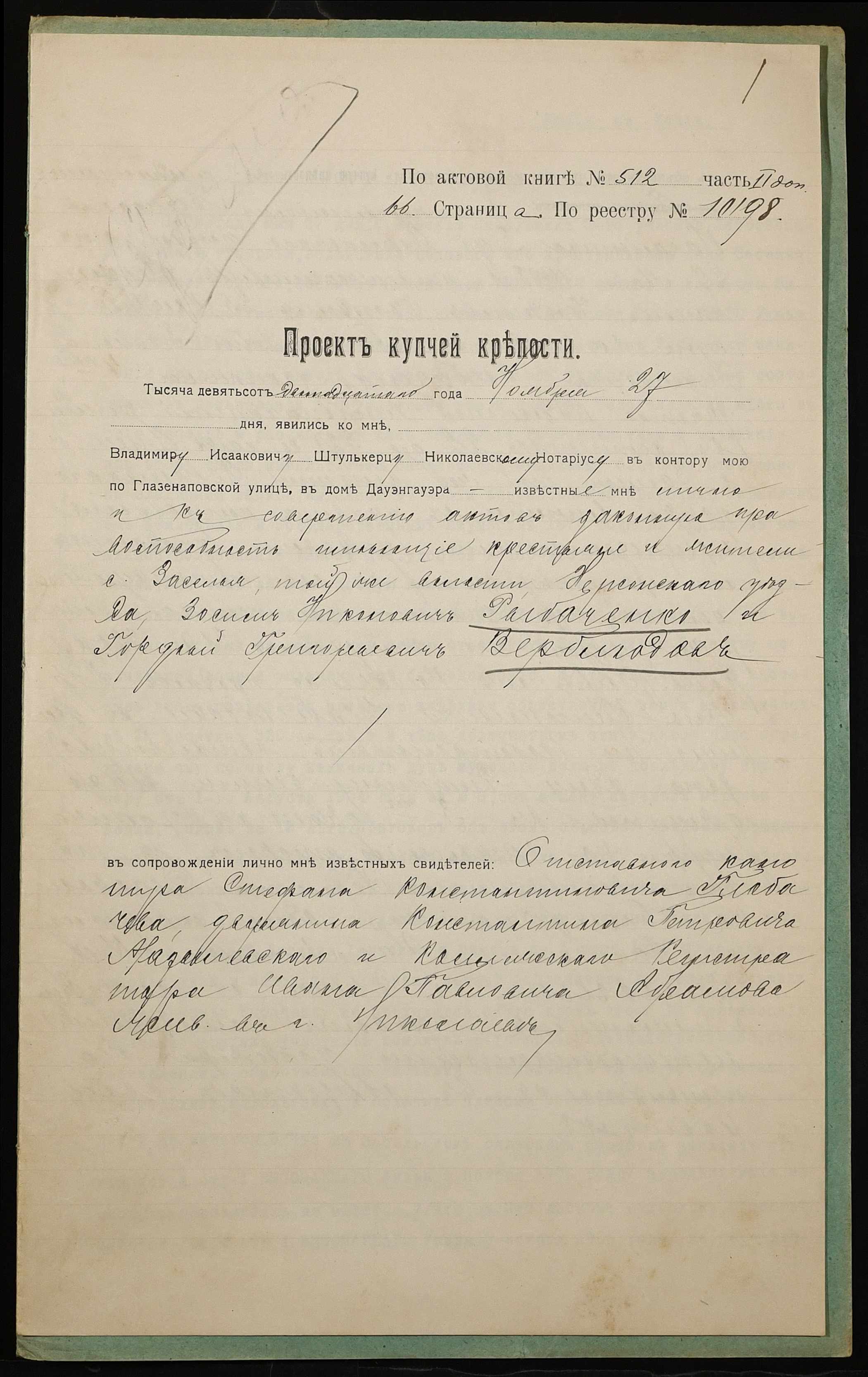 ◦ ◦ Фонд № 152 “Контора миколаївського нотаріуса Херсонського окружного суду Штулькерца Володимира Ісааковича”