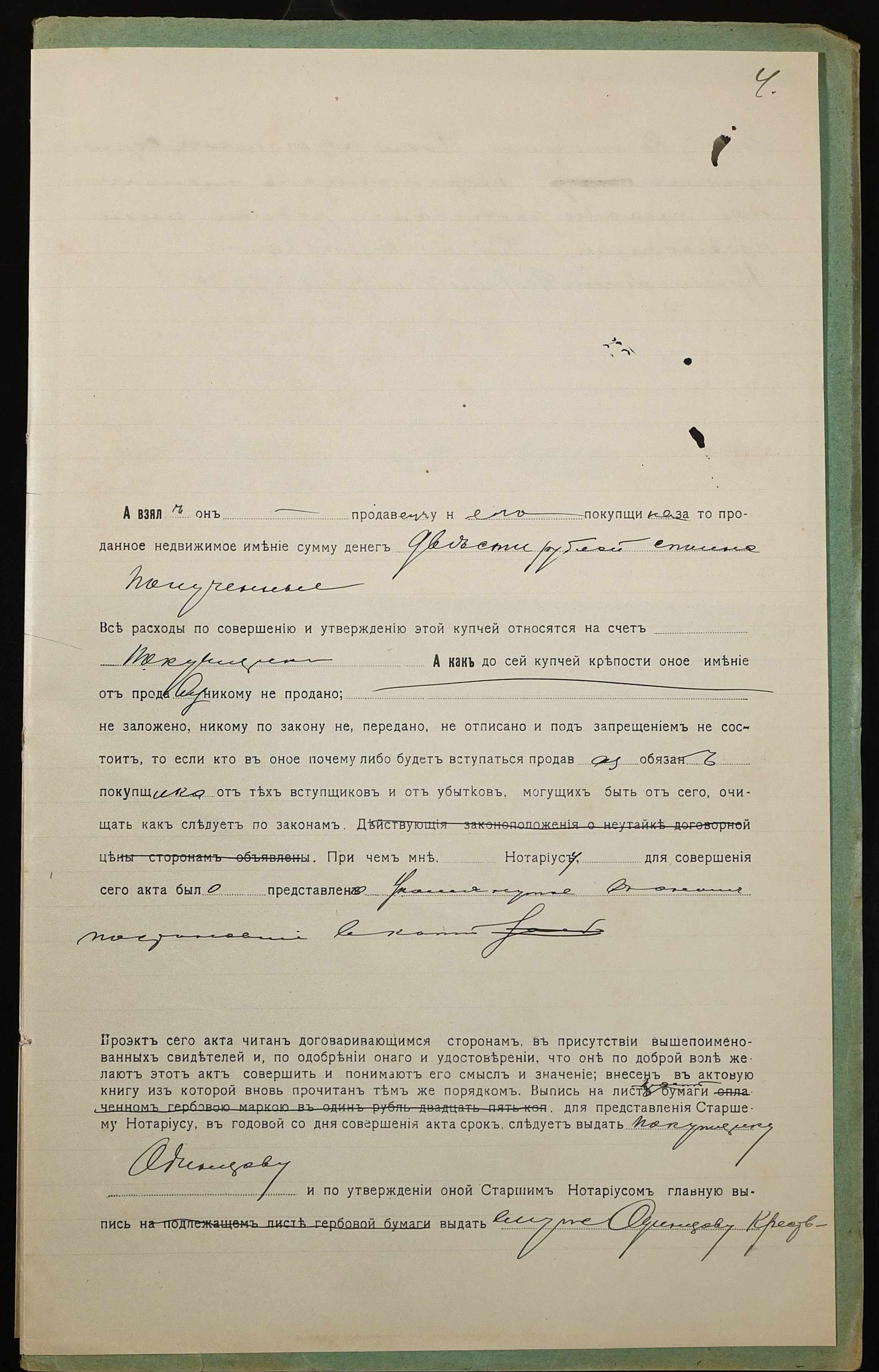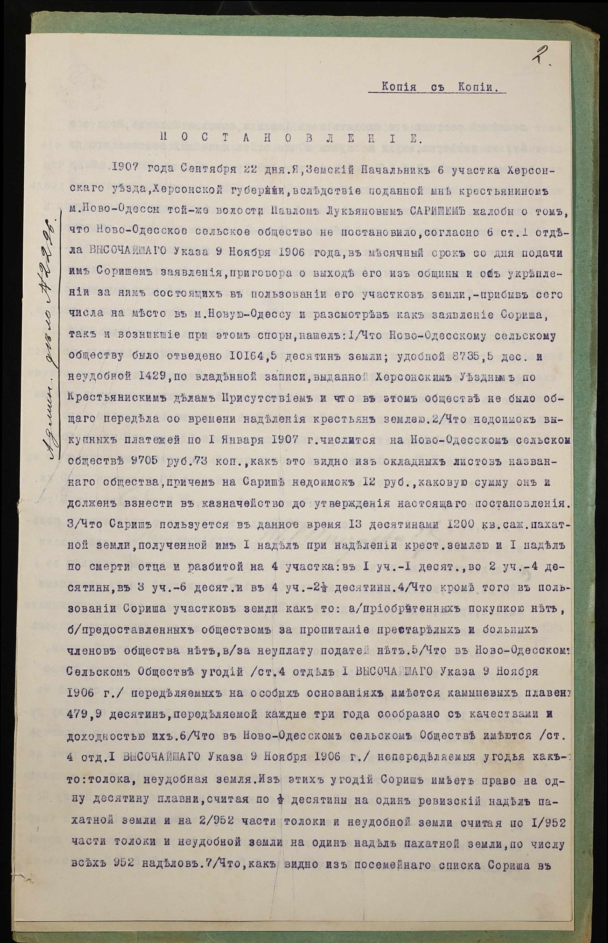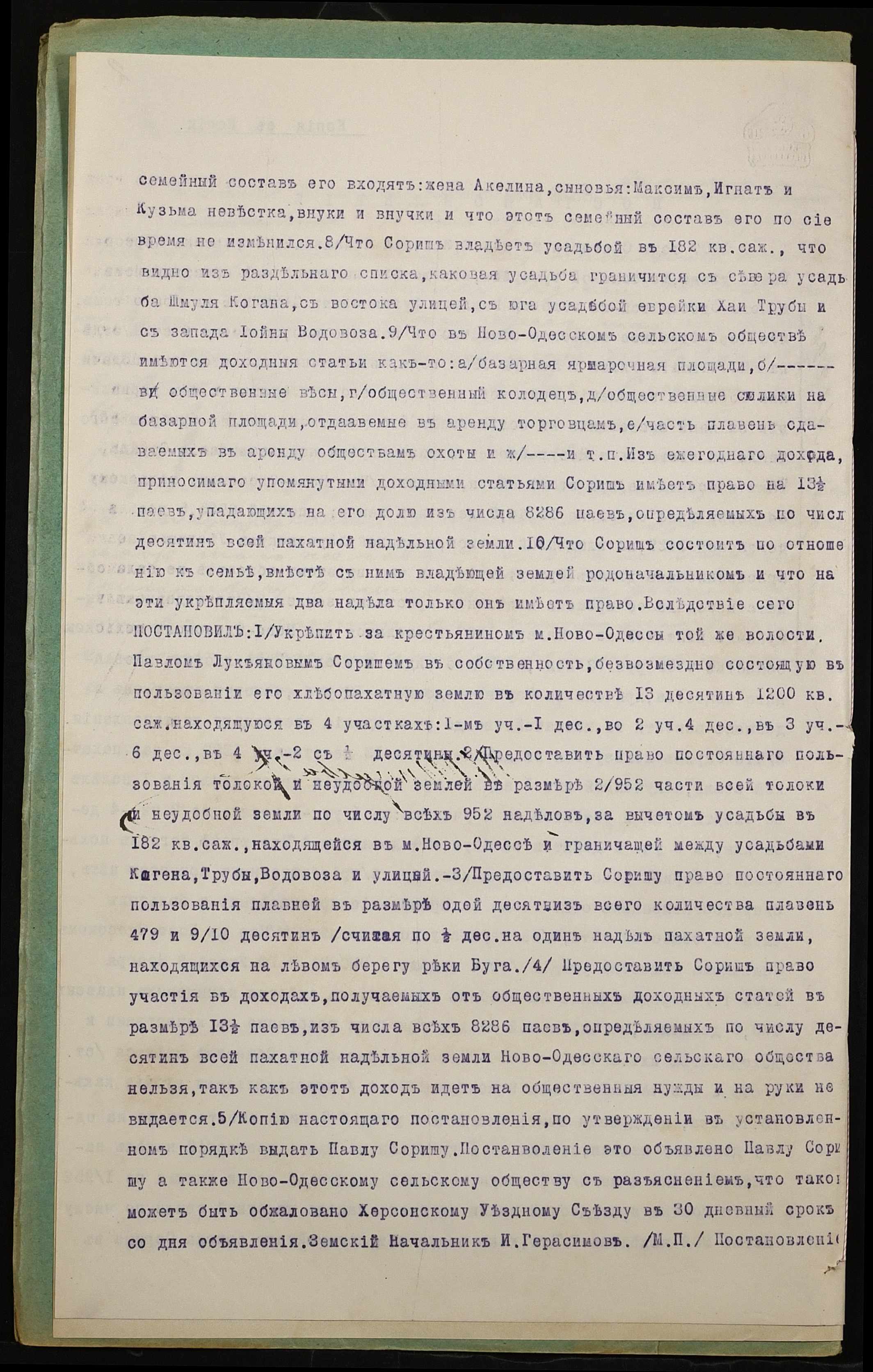 • • • • Справа № 947 “Справа про вчинення купчої про продаж землі селянином Соришем Павлом Лук’яновичем (Соришем Павлом Лукьяновичем) на користь селянина Одинцова Георгія Григоровича (Одинцова Георгия Григорьевича)”