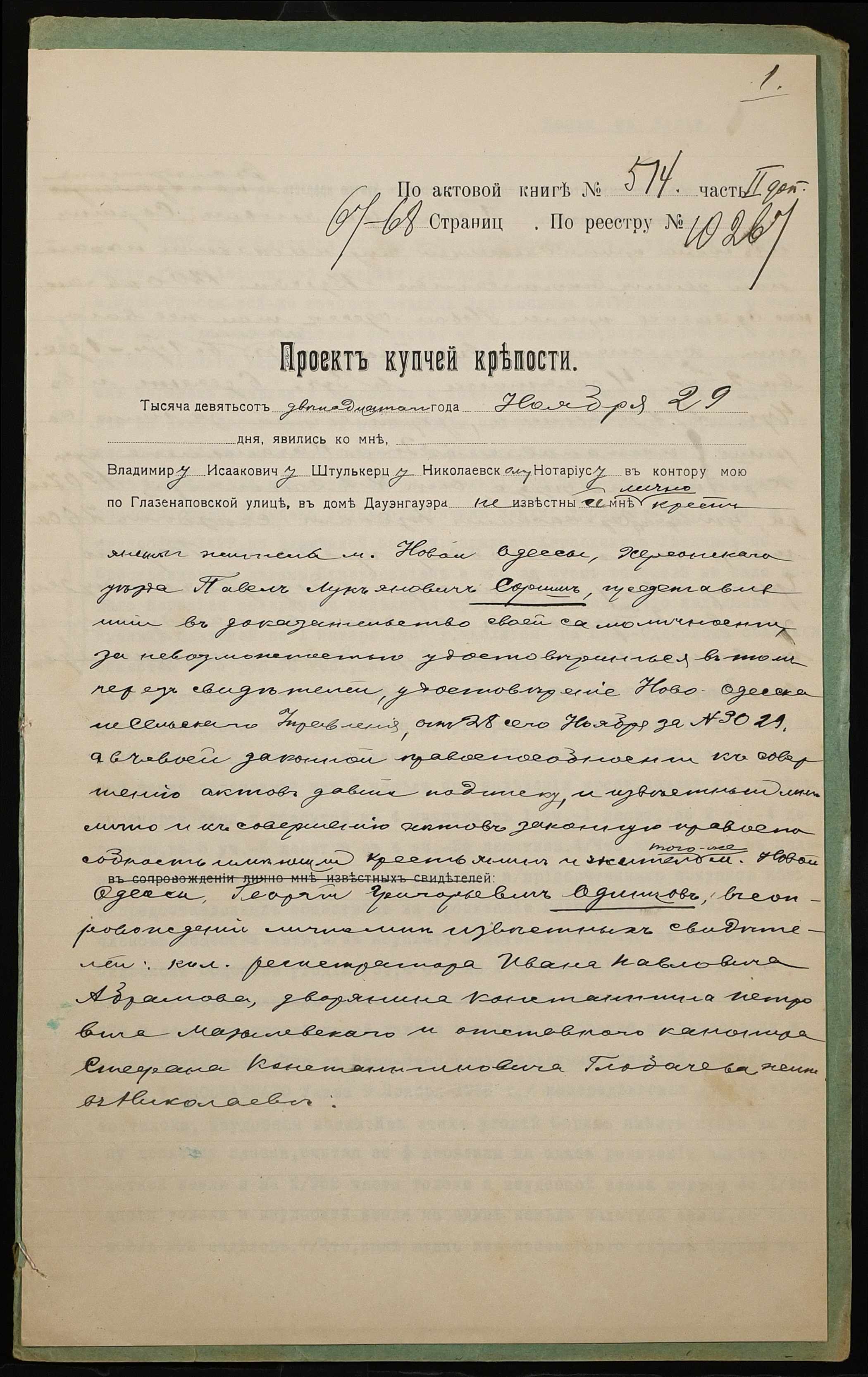 ◦ ◦ Фонд № 152 “Контора миколаївського нотаріуса Херсонського окружного суду Штулькерца Володимира Ісааковича”