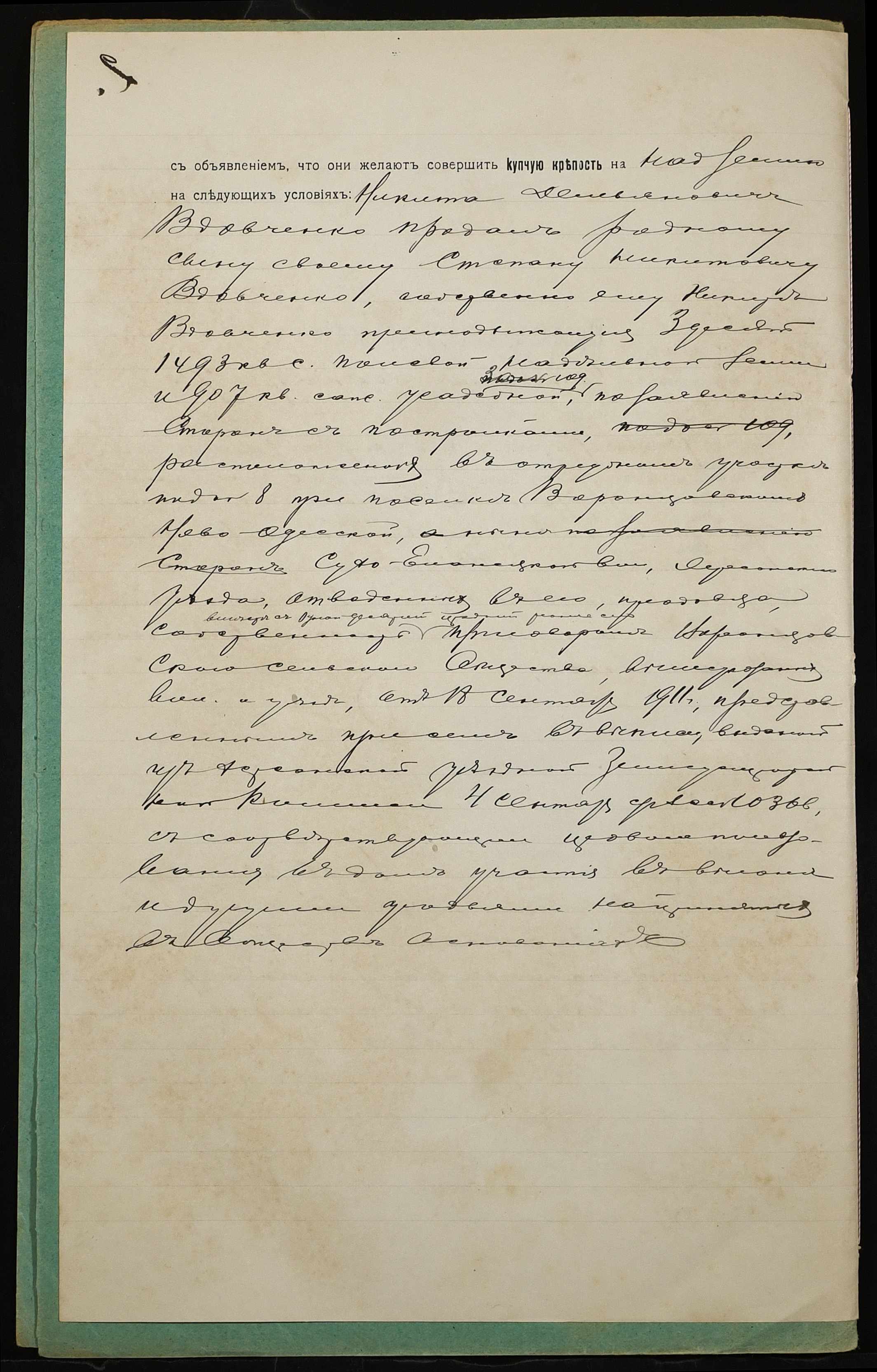 • • • • Справа № 953 “Справа про вчинення купчої про продаж землі селянином Вдовченком Микитою Дем’яновичем (Вдовченко Никитой Демьяновичем) на користь селянина Вдовченка Степана Микитовича (Вдовченко Степана Никитовича)”