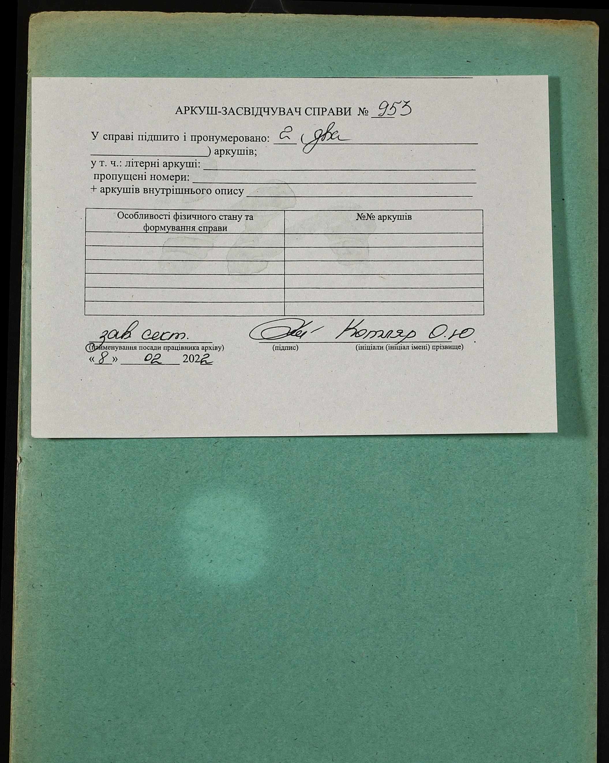 Фонд 152 / Опис 1 / Справа 0953