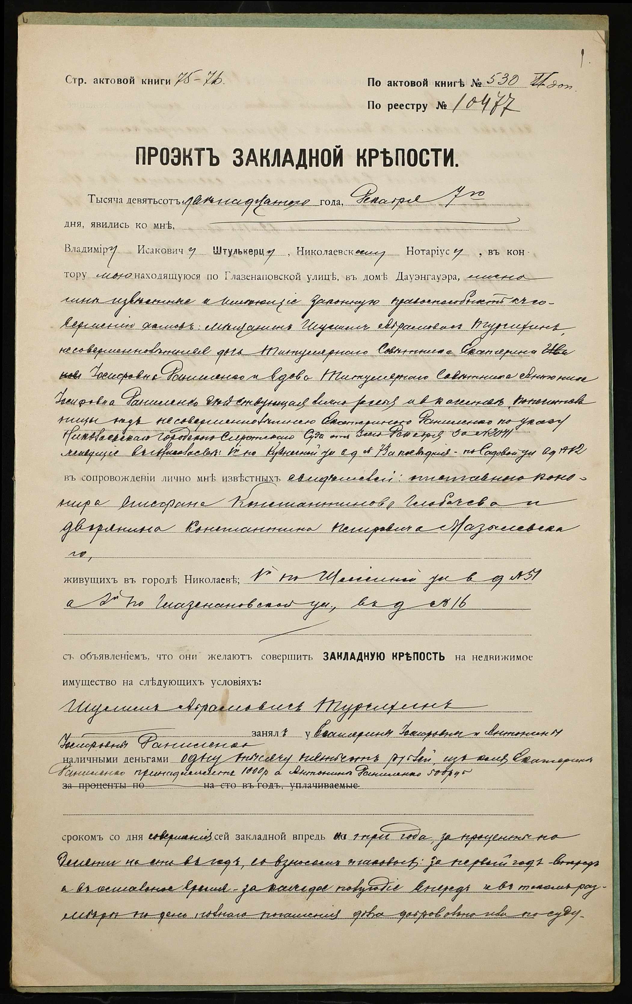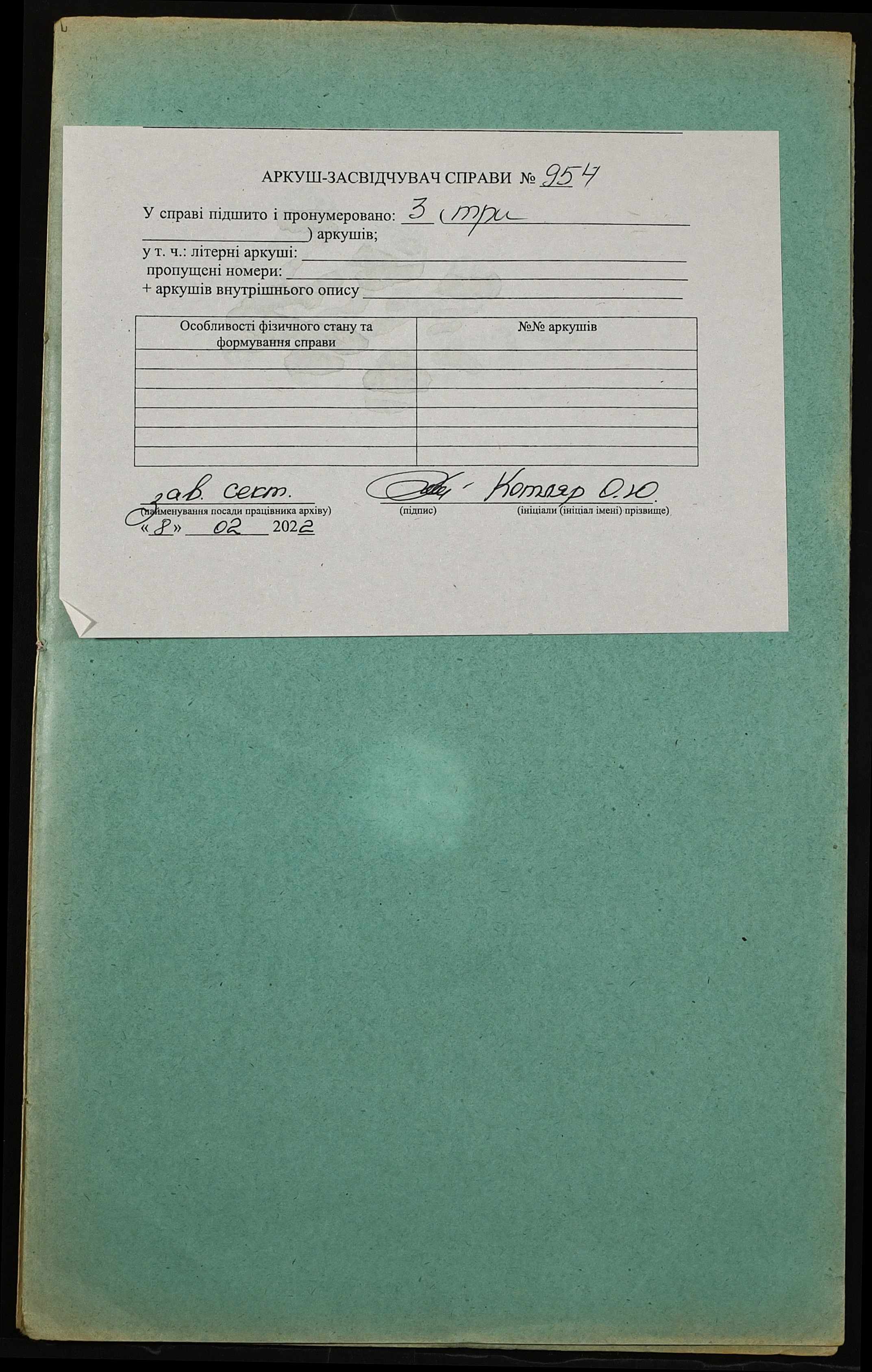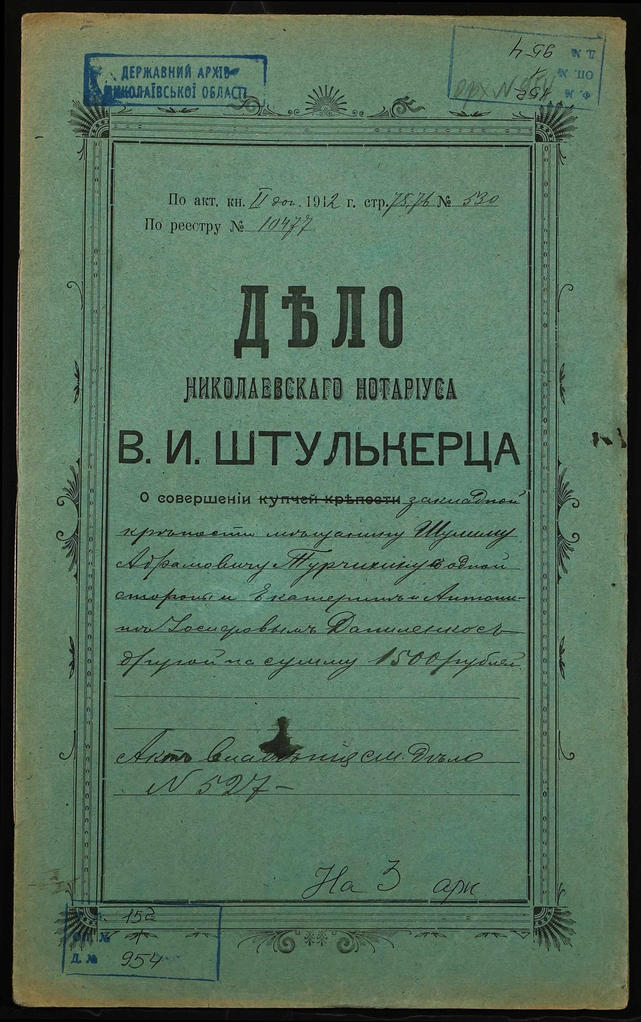 • • • • Справа № 954 “Справа про вчинення заставної на дворове місце з будинком і усіма спорудами, закладене міщанином Турчихіним Шулімом Абрамовичем (Турчихиным Шулимом Абрамовичем) – Даниленко Катерині Йосипівні (Даниленко Екатерине Иосифовне) і Даниленко Антоніні Йосипівні (Даниленко Антонине Иосифовне)”