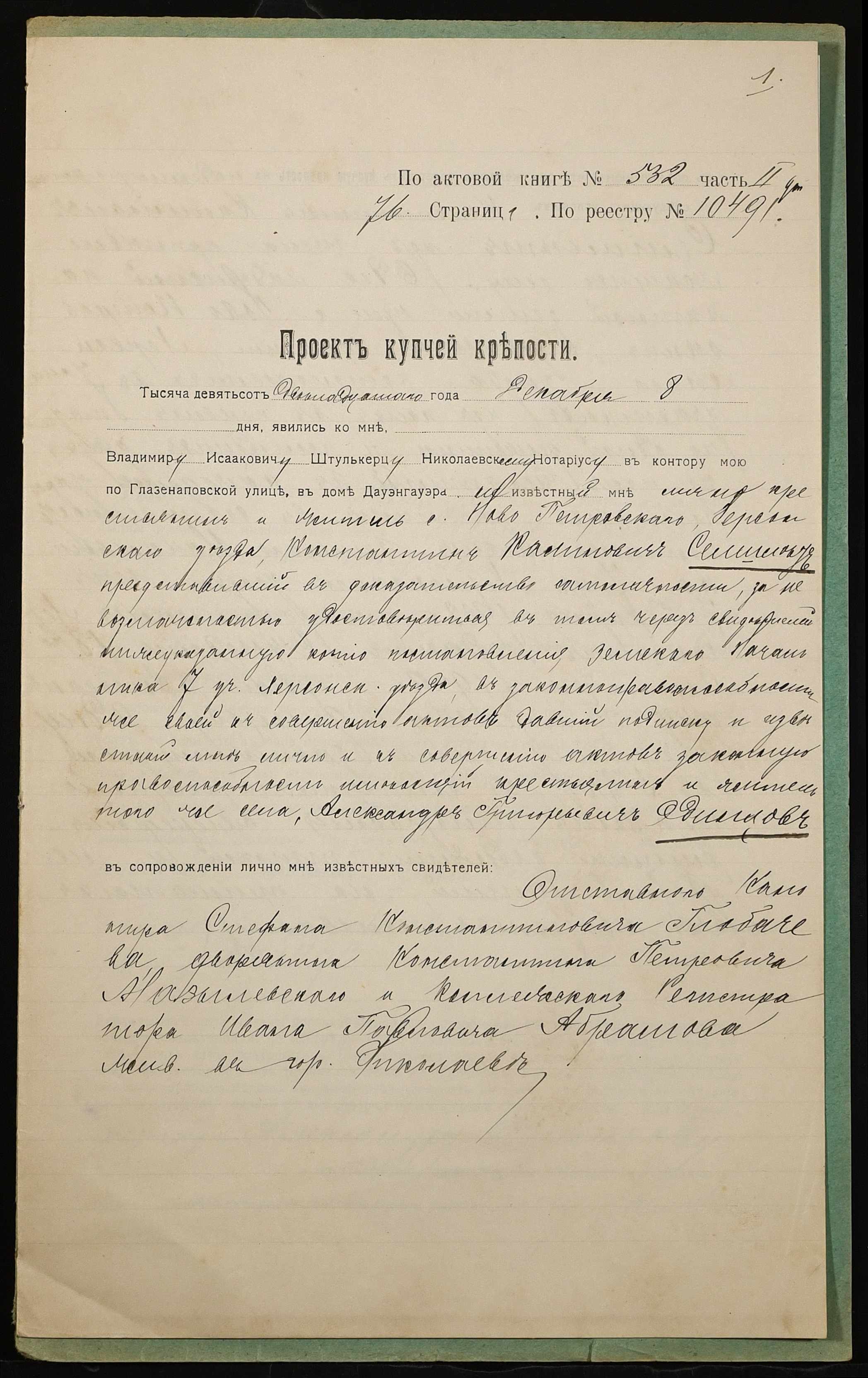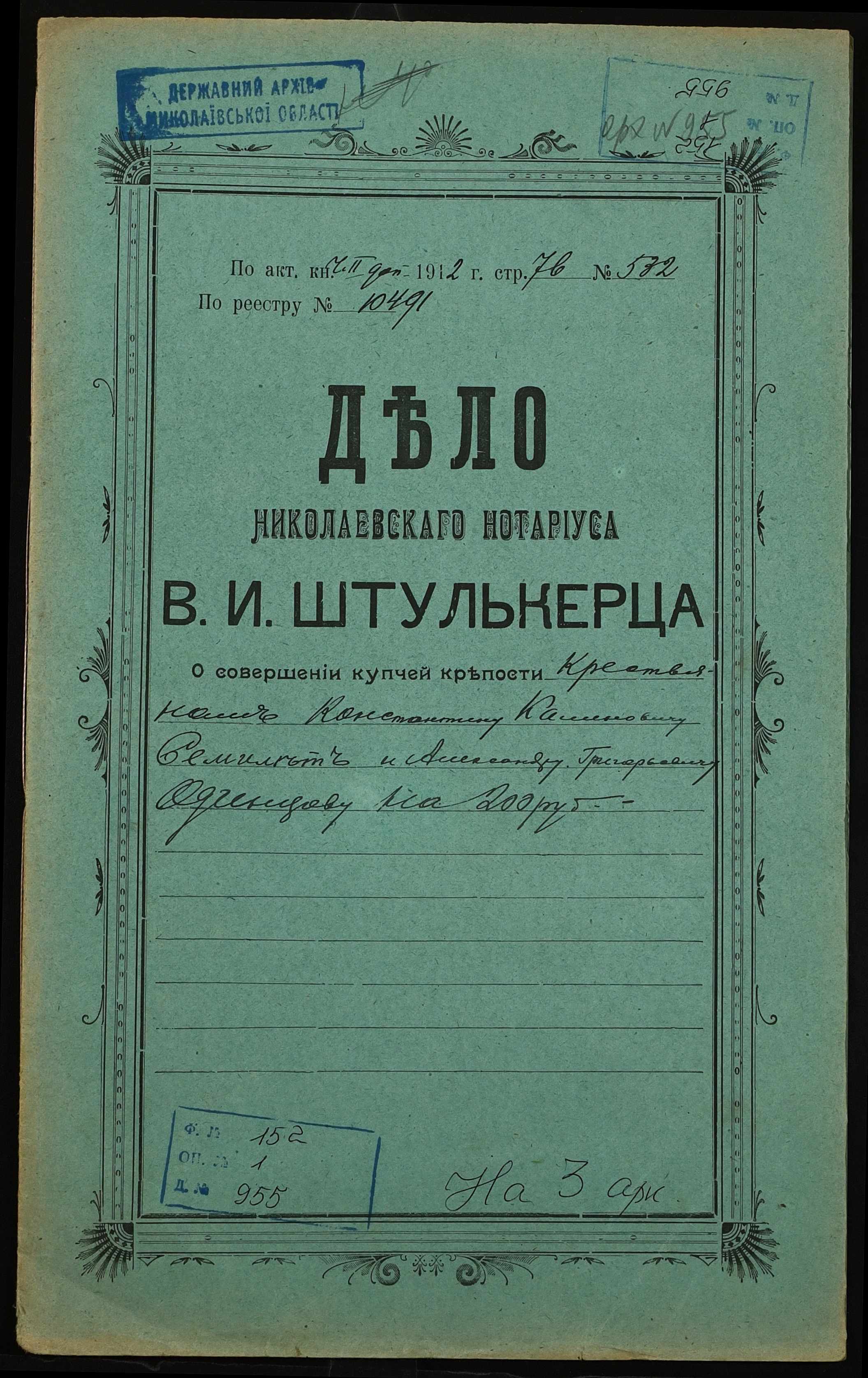 ◦ ◦ Фонд № 152 “Контора миколаївського нотаріуса Херсонського окружного суду Штулькерца Володимира Ісааковича”