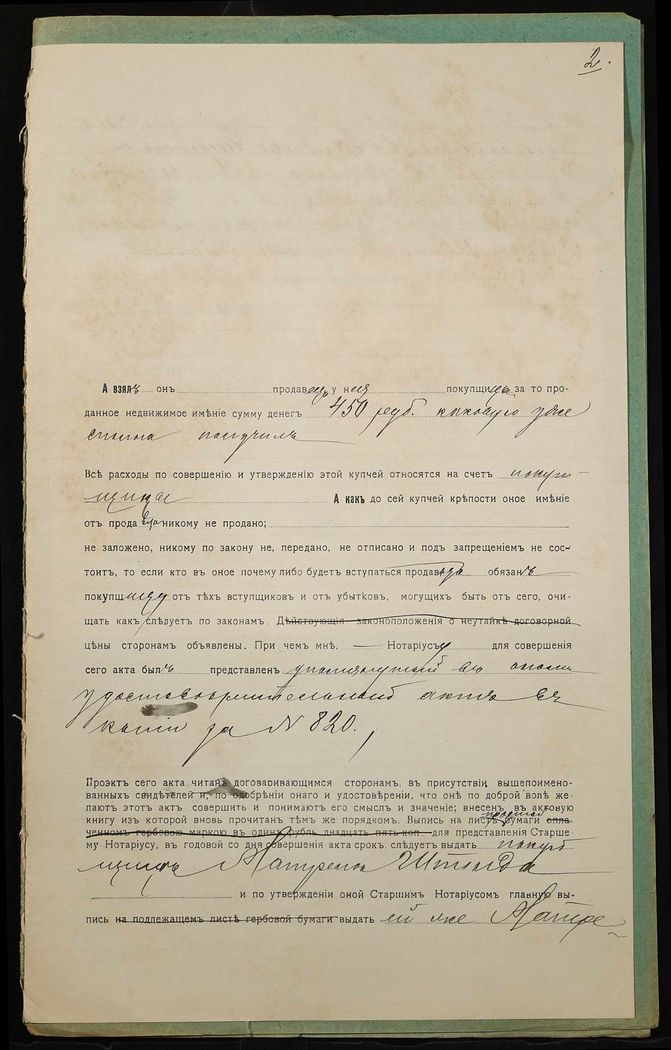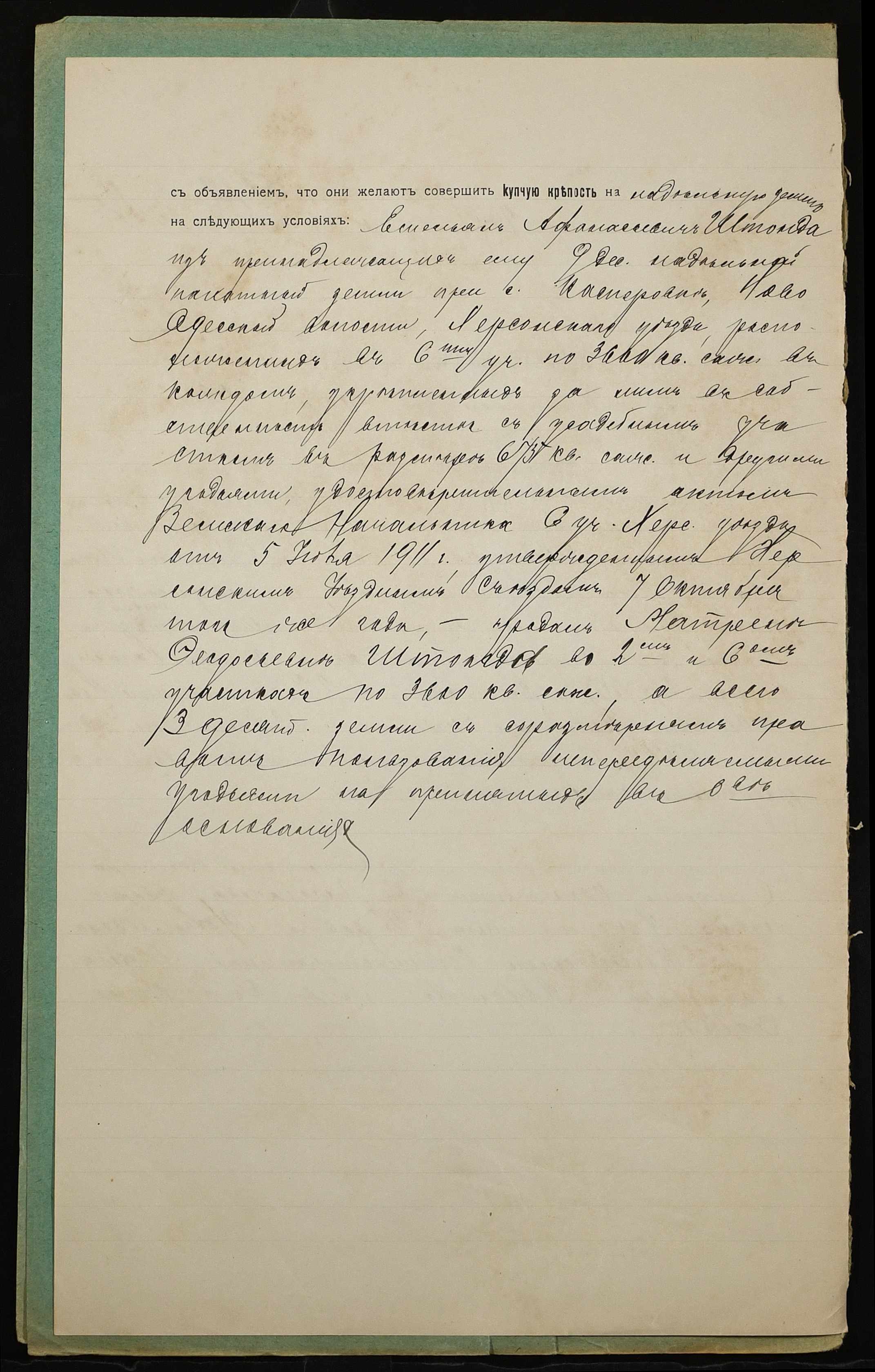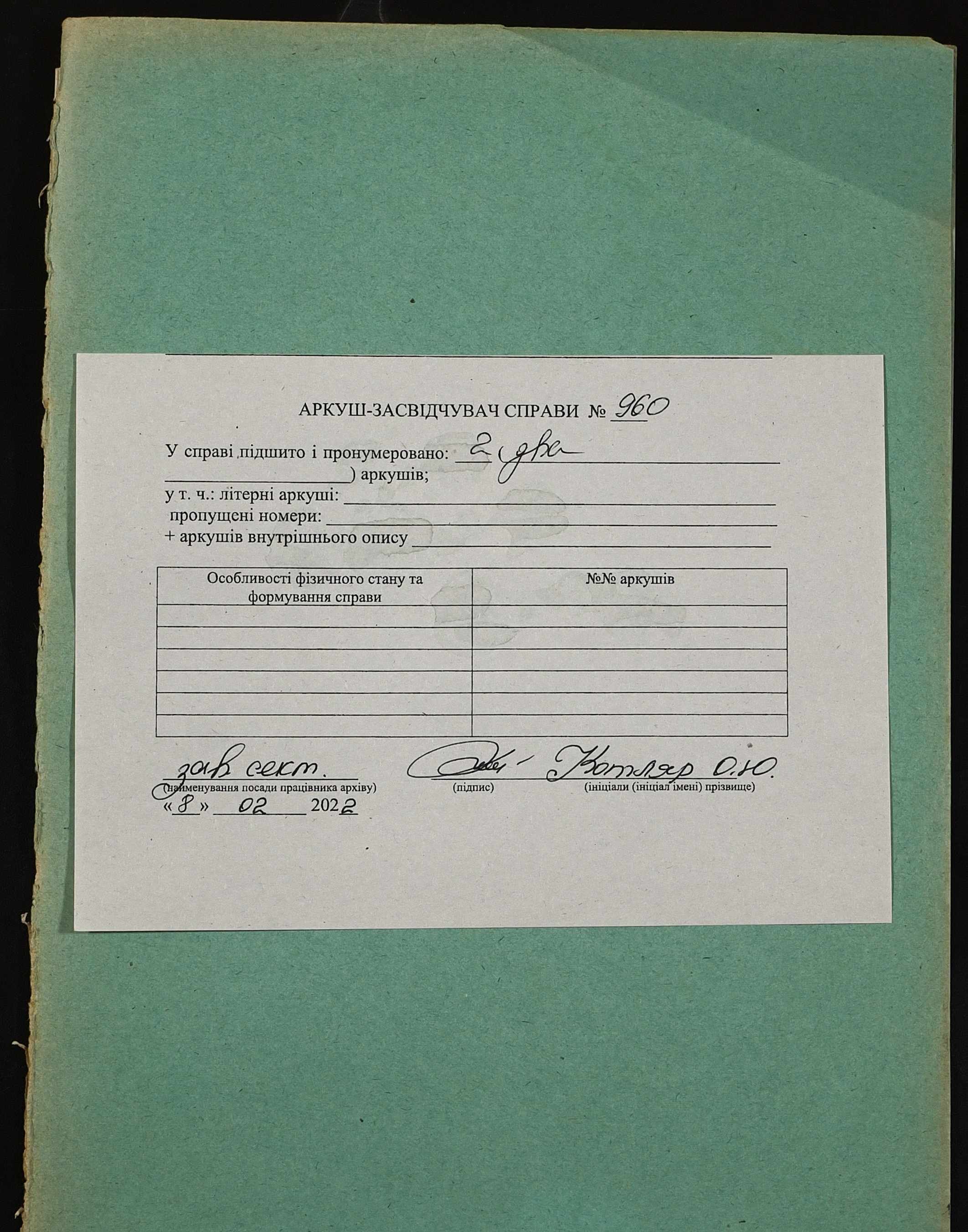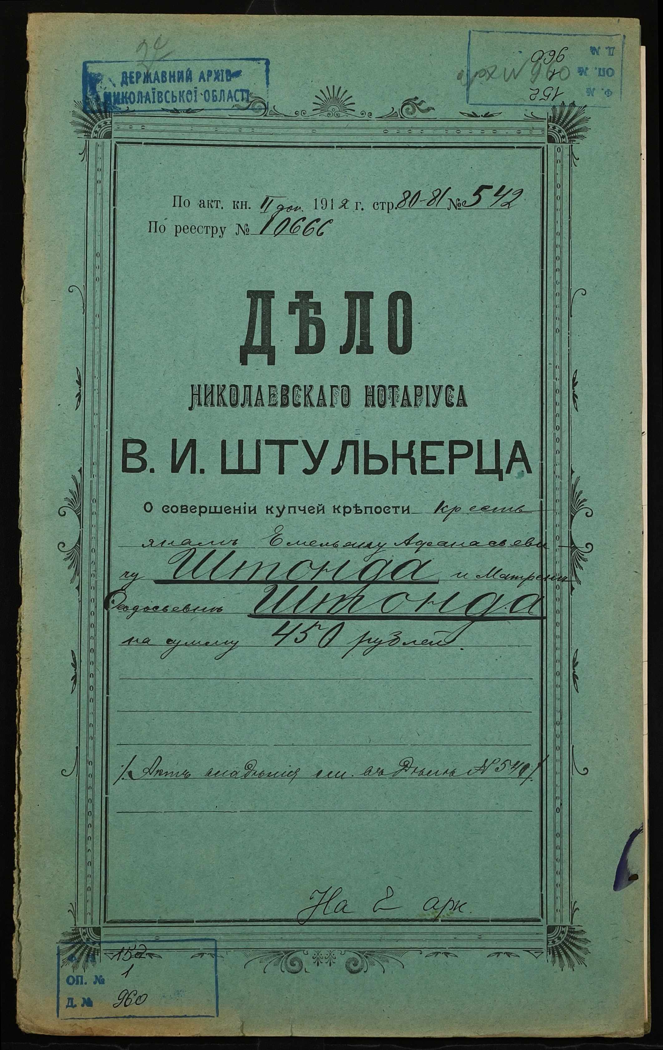 • • • • Справа № 960 “Справа про вчинення купчої про продаж землі селянином Штондою Омеляном Опанасовичем (Штондой Емельяном Афанасьевичем) на користь селянки Штонди Матрони Феодосіївни (Штонды Матрены Феодосьевны)”