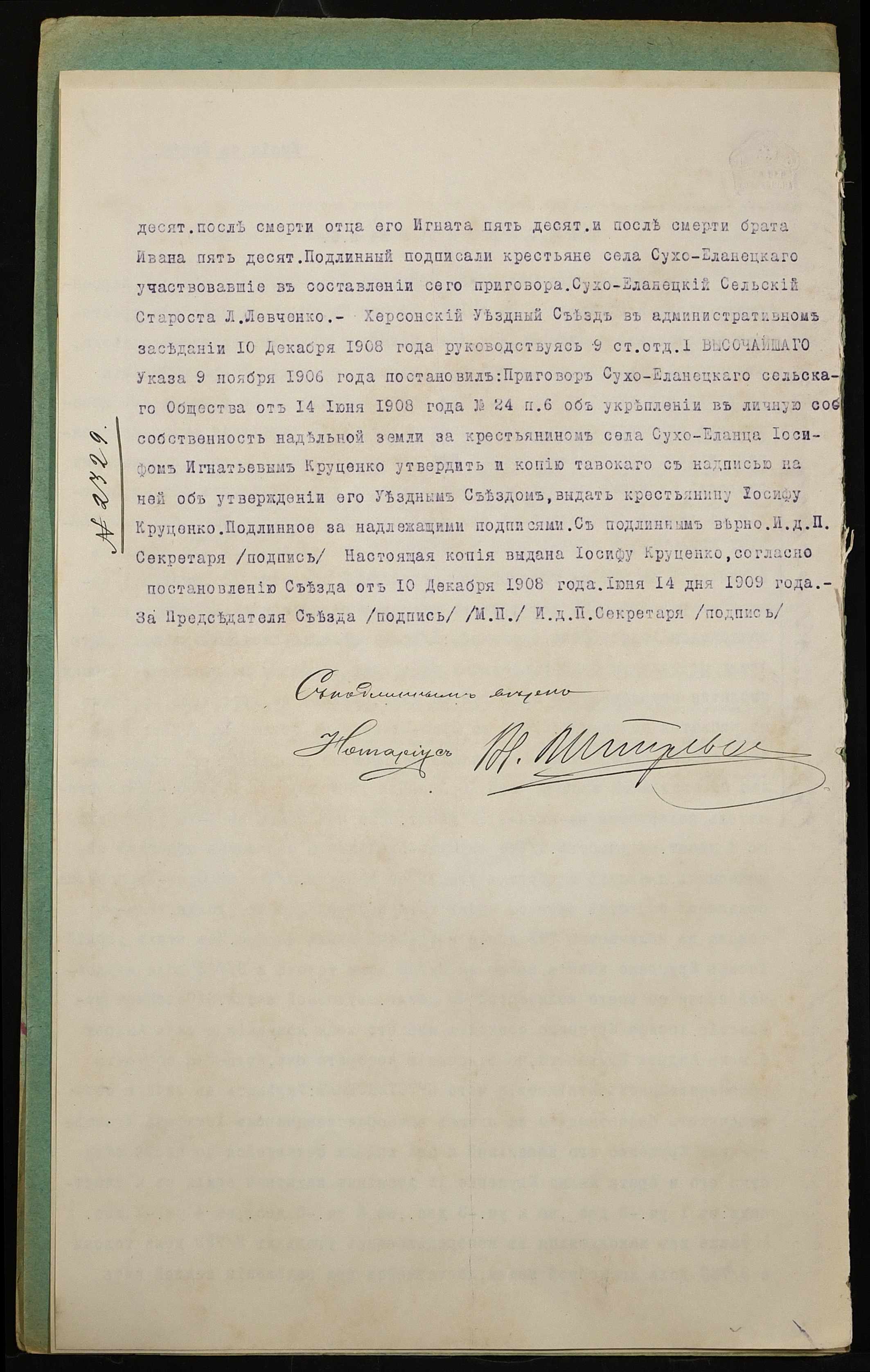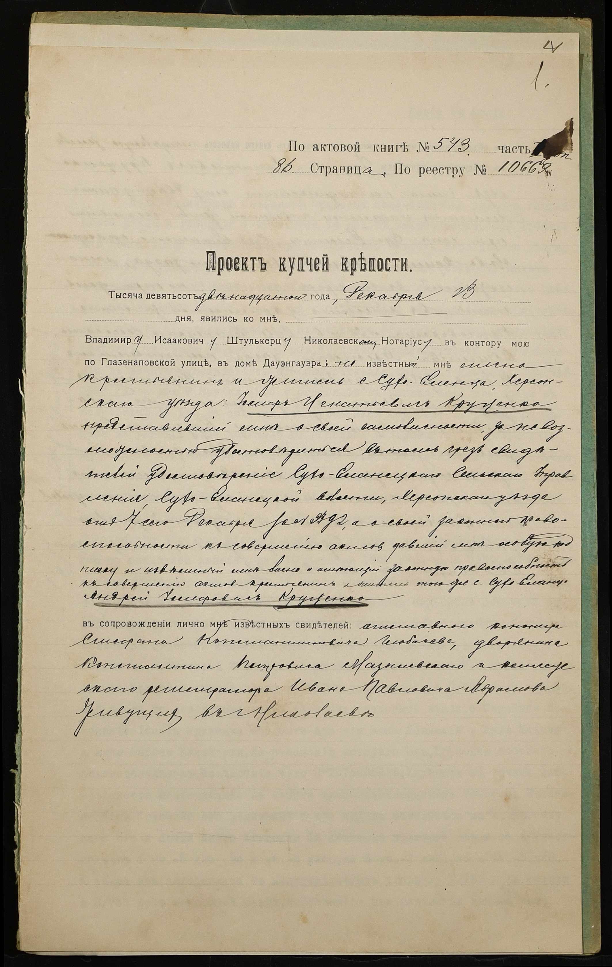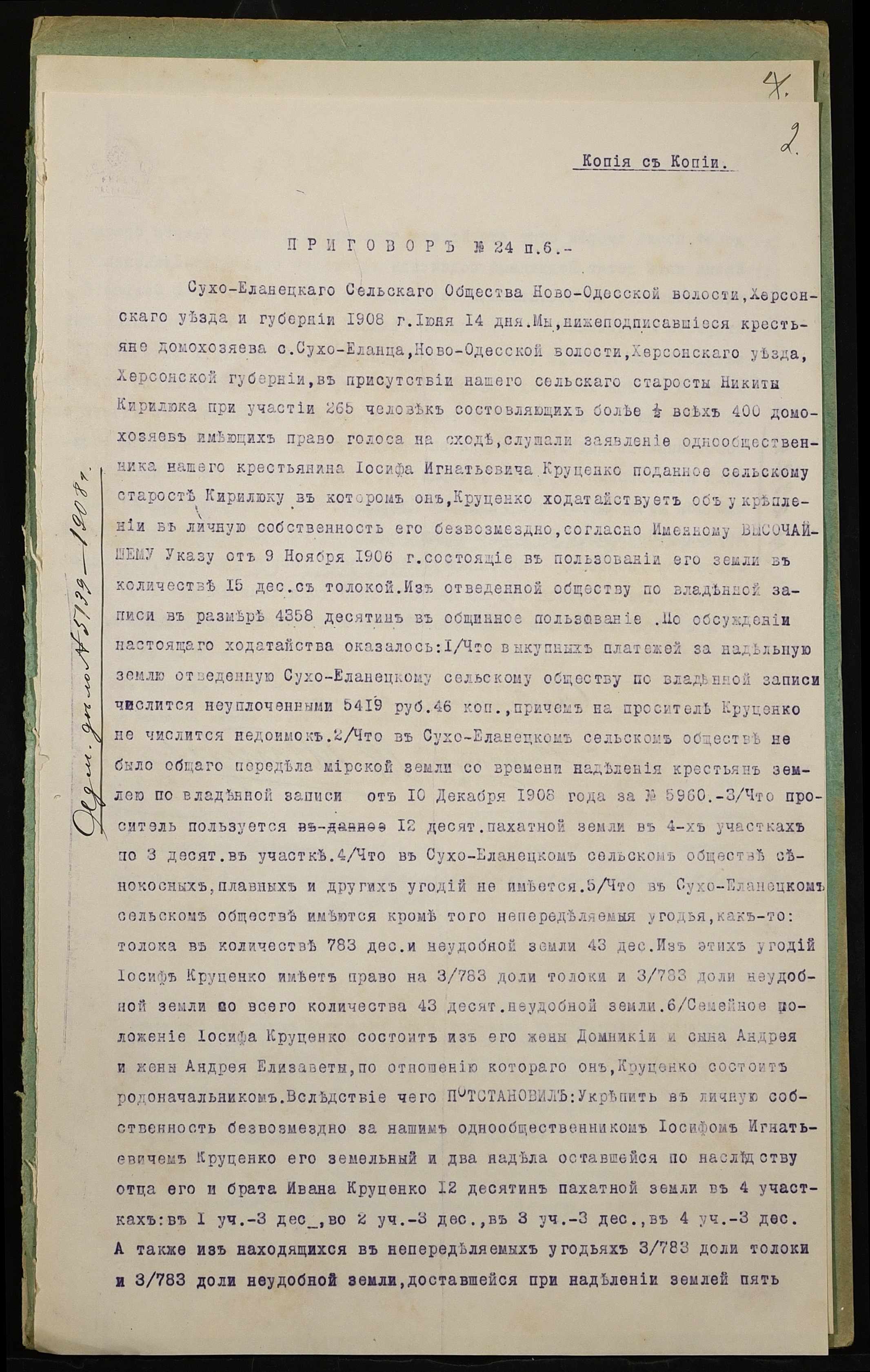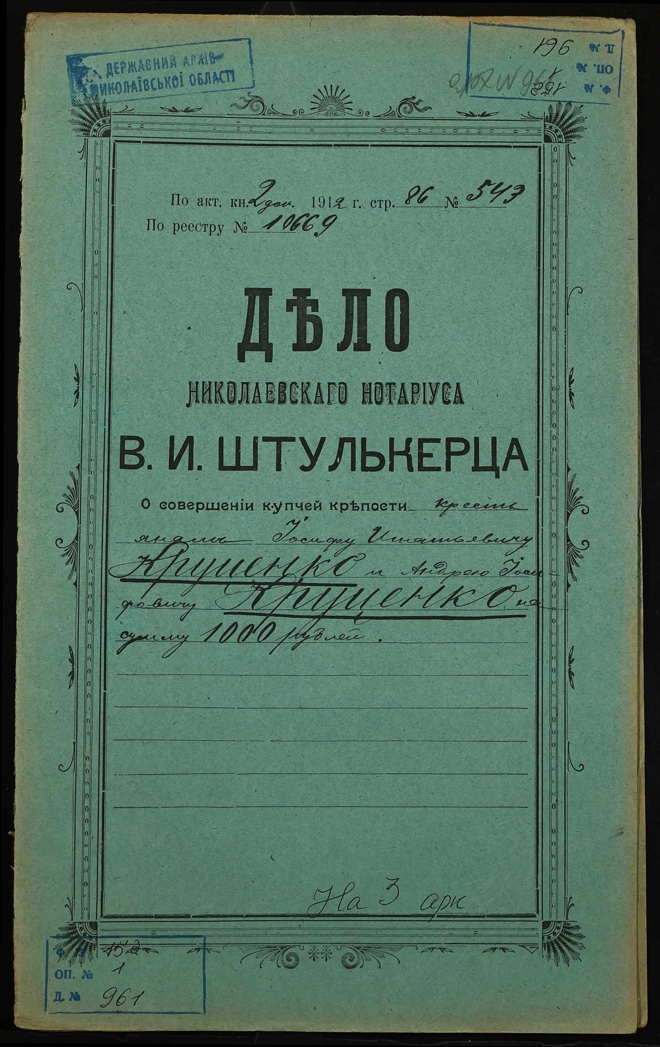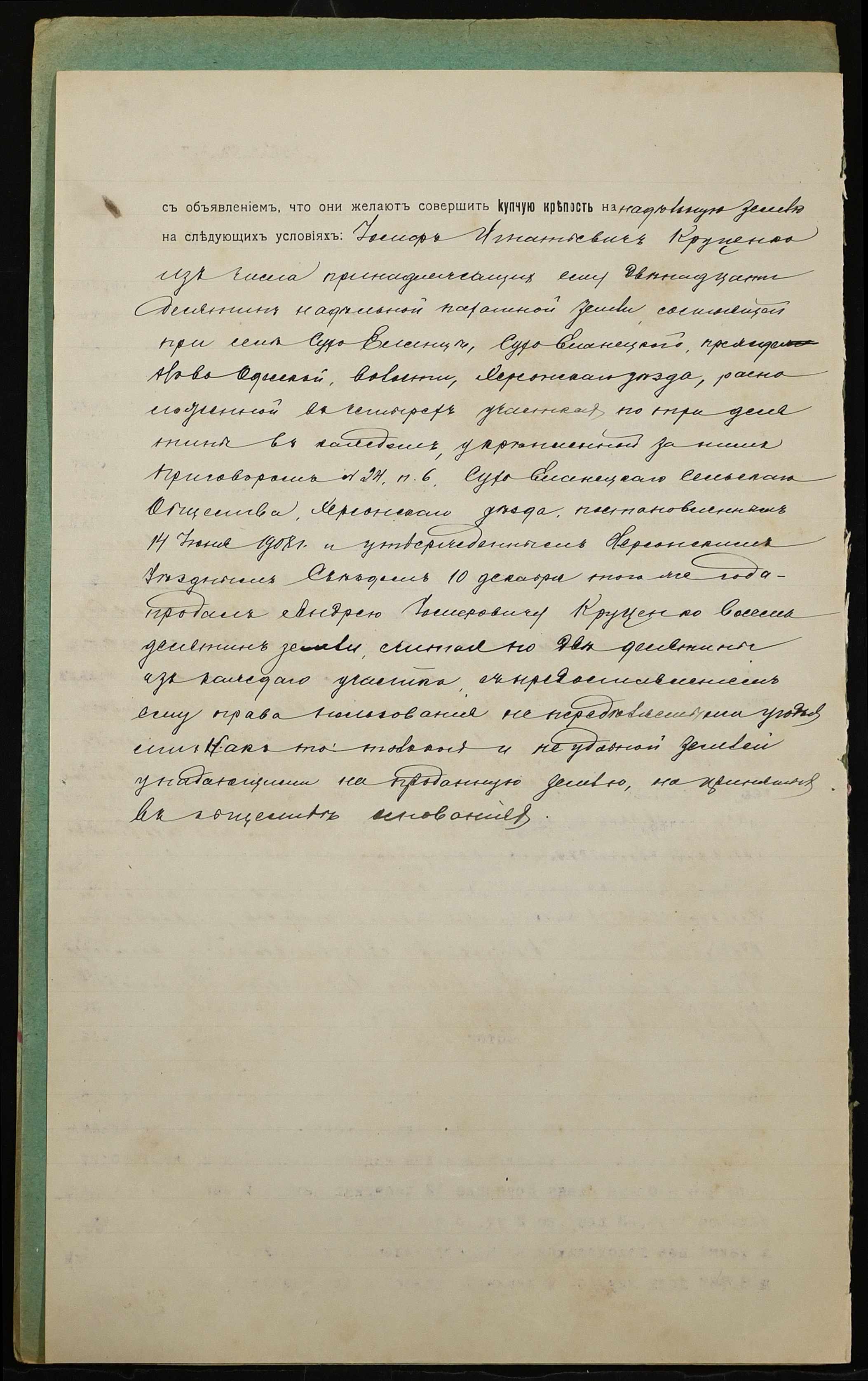 • • • • Справа № 961 “Справа про вчинення купчої про продаж землі селянином Круценком Йосипом Гнатовичем (Круценко Иосифом Игнатовичем) на користь селянина Круценка Андрія Йосиповича (Круценко Андрея Иосифовича)”