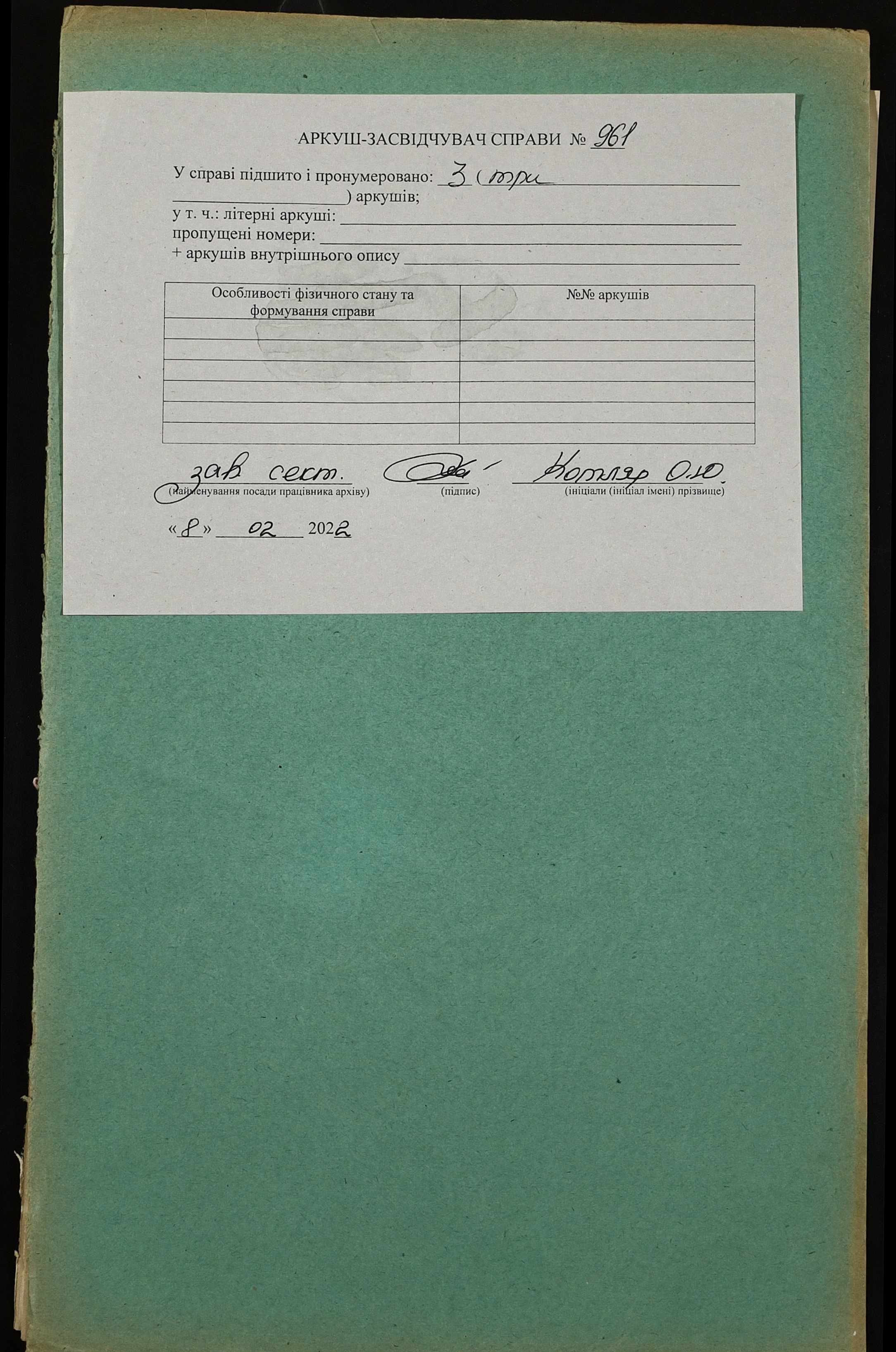 Фонд 152 / Опис 1 / Справа 0961