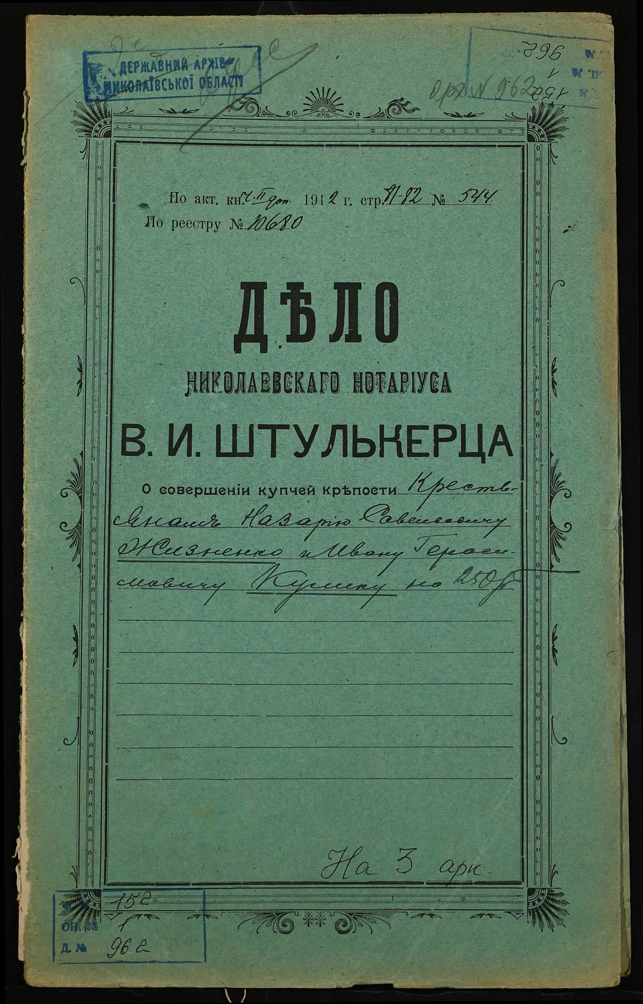 ◦ ◦ Фонд № 152 “Контора миколаївського нотаріуса Херсонського окружного суду Штулькерца Володимира Ісааковича”