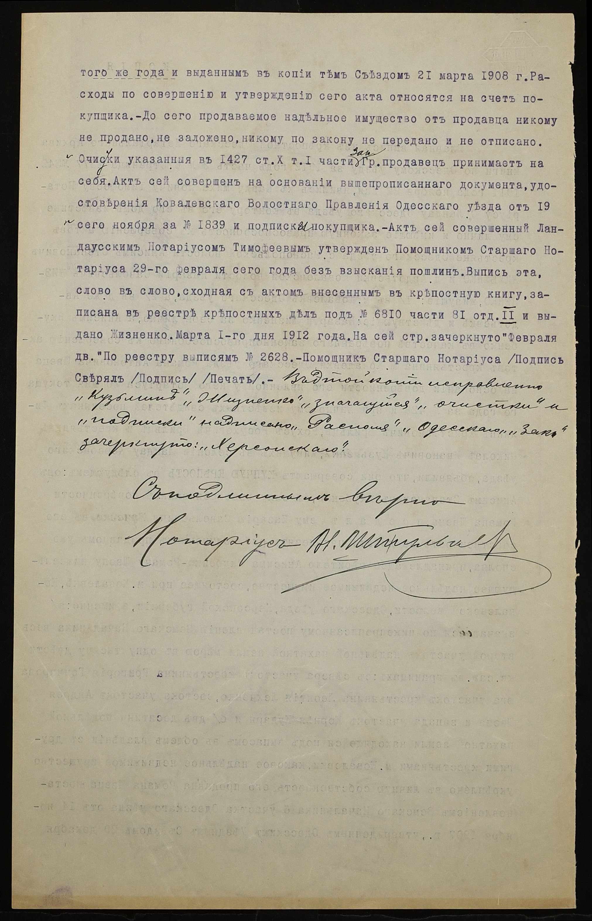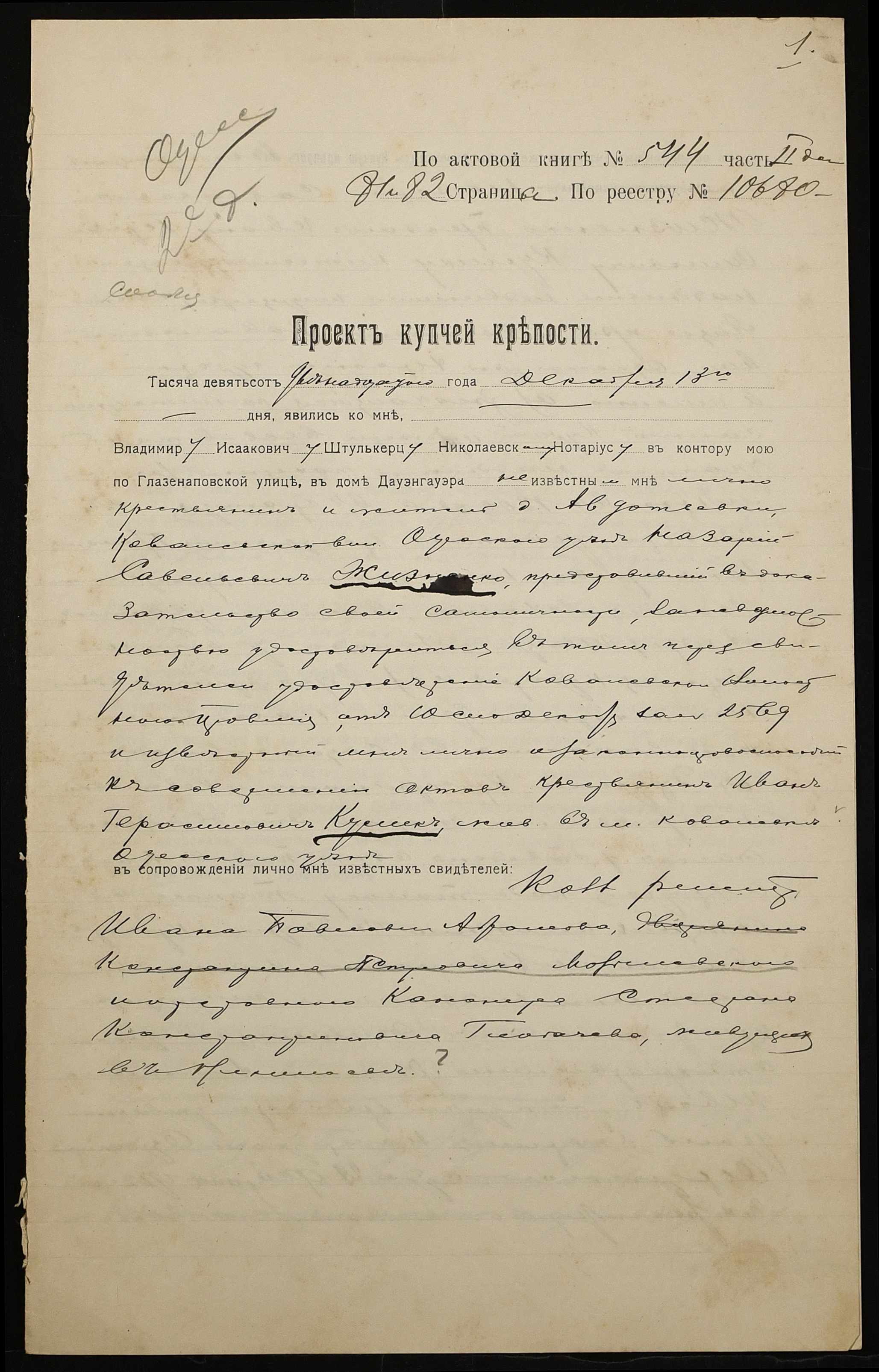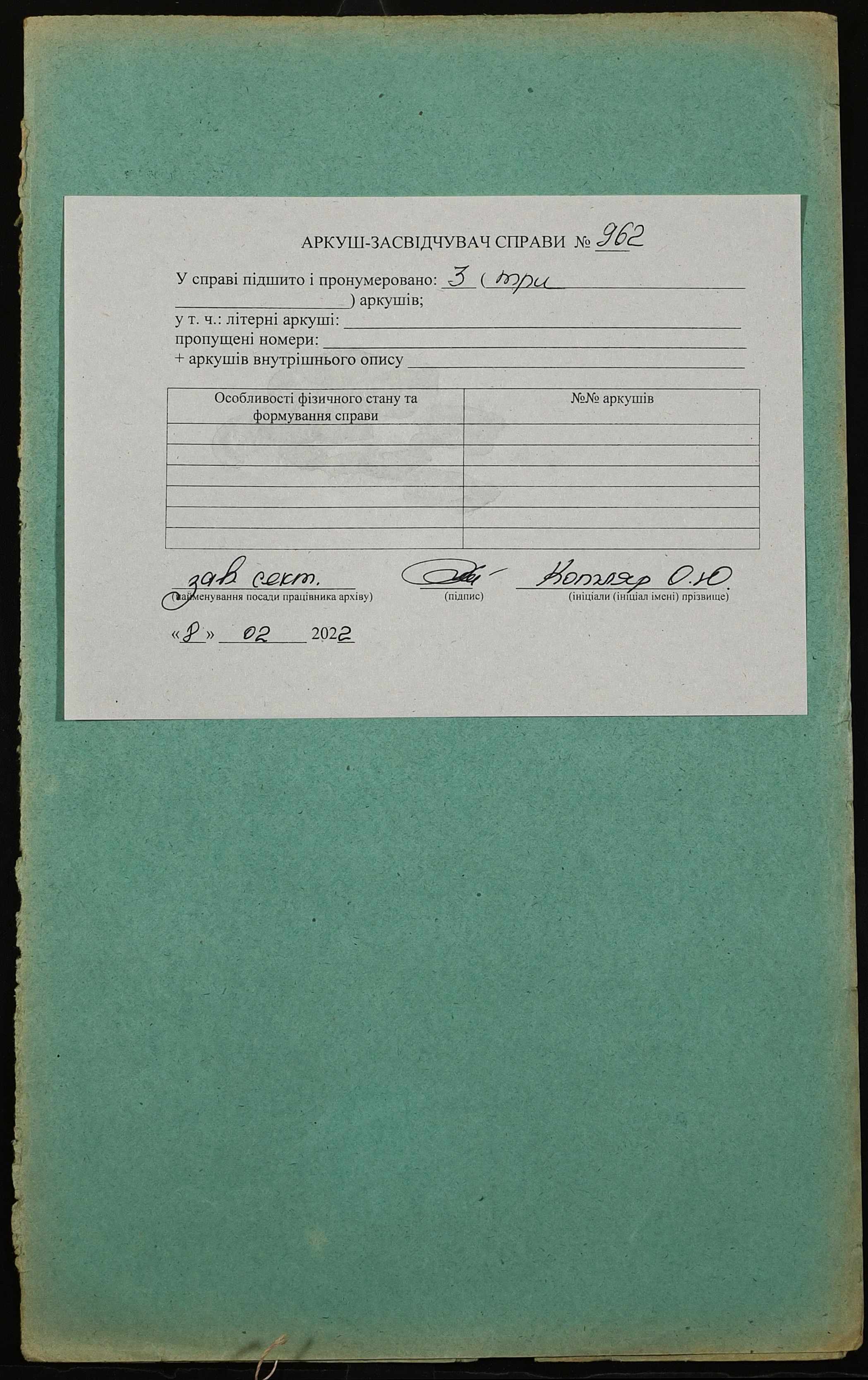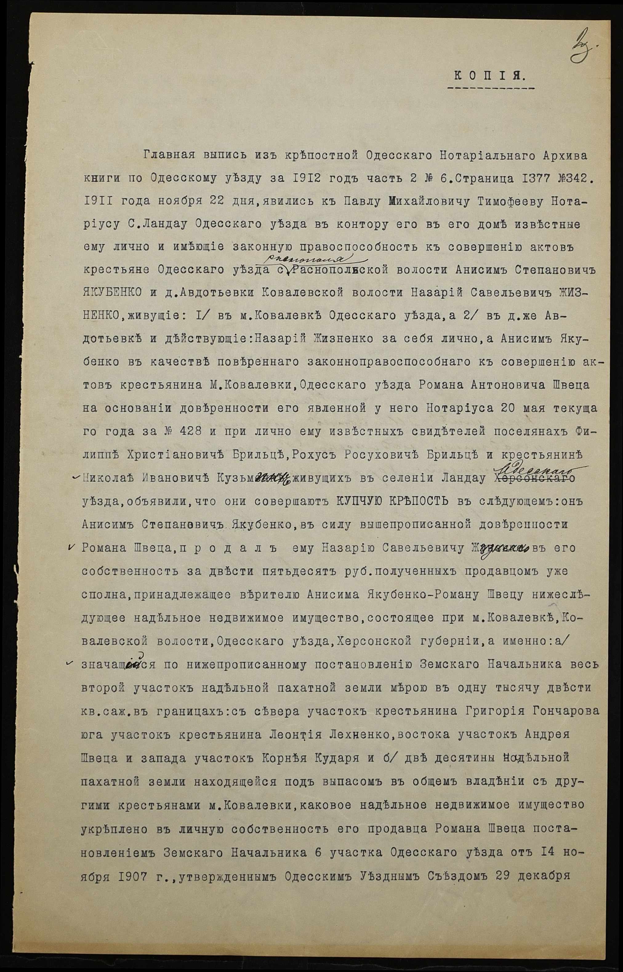 • • • • Справа № 962 “Справа про вчинення купчої про продаж землі селянином Жизненком Назарієм Савелійовичем (Жиненко Назарием Савельевичем) на користь селянина Кулика Івана Герасимовича (Кулика Ивана Герасимовича)”