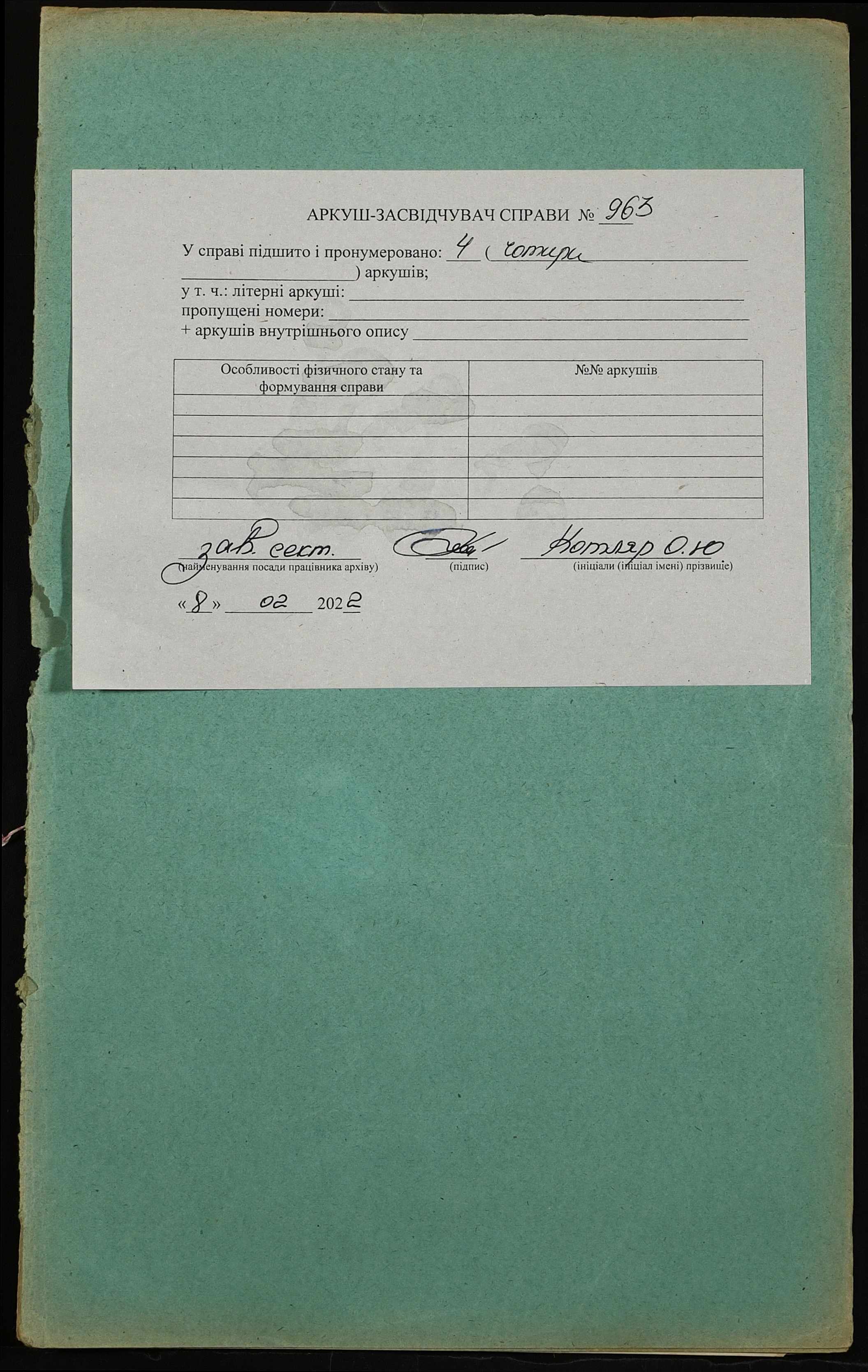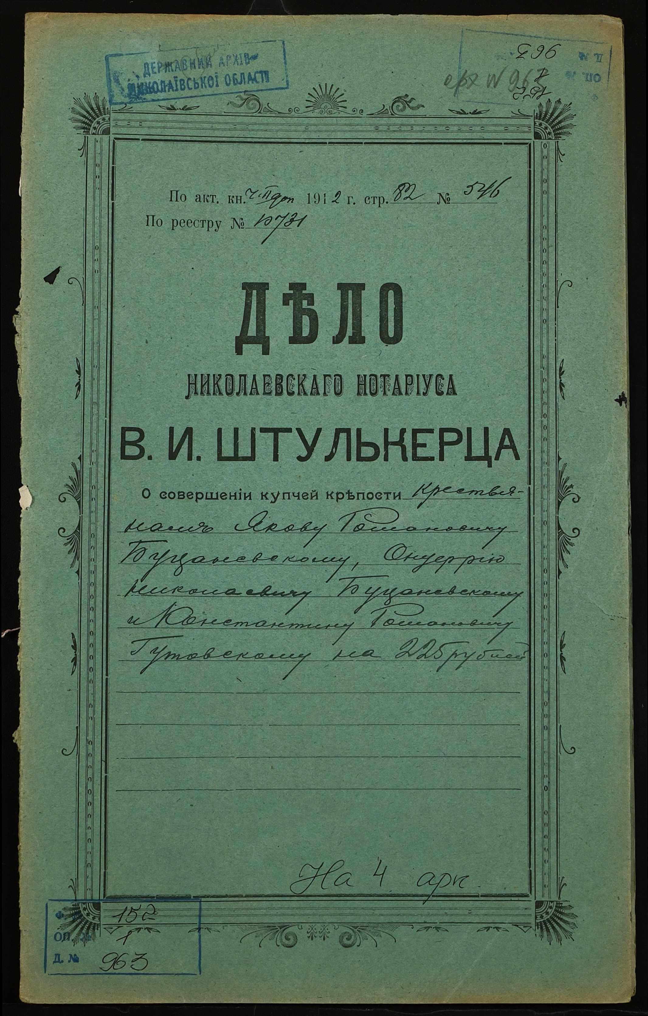 • • • • Справа № 963 “Справа про вчинення купчої про продаж землі селянами Буцановськими Яковом Романовичем і Онуфрієм Миколайовичем (Буцановскими Яковом Романовичем и Онуфрием Николаевичем) на користь селянина Гутовського Костянтина Романовича (Гутовского Константина Романовича)”