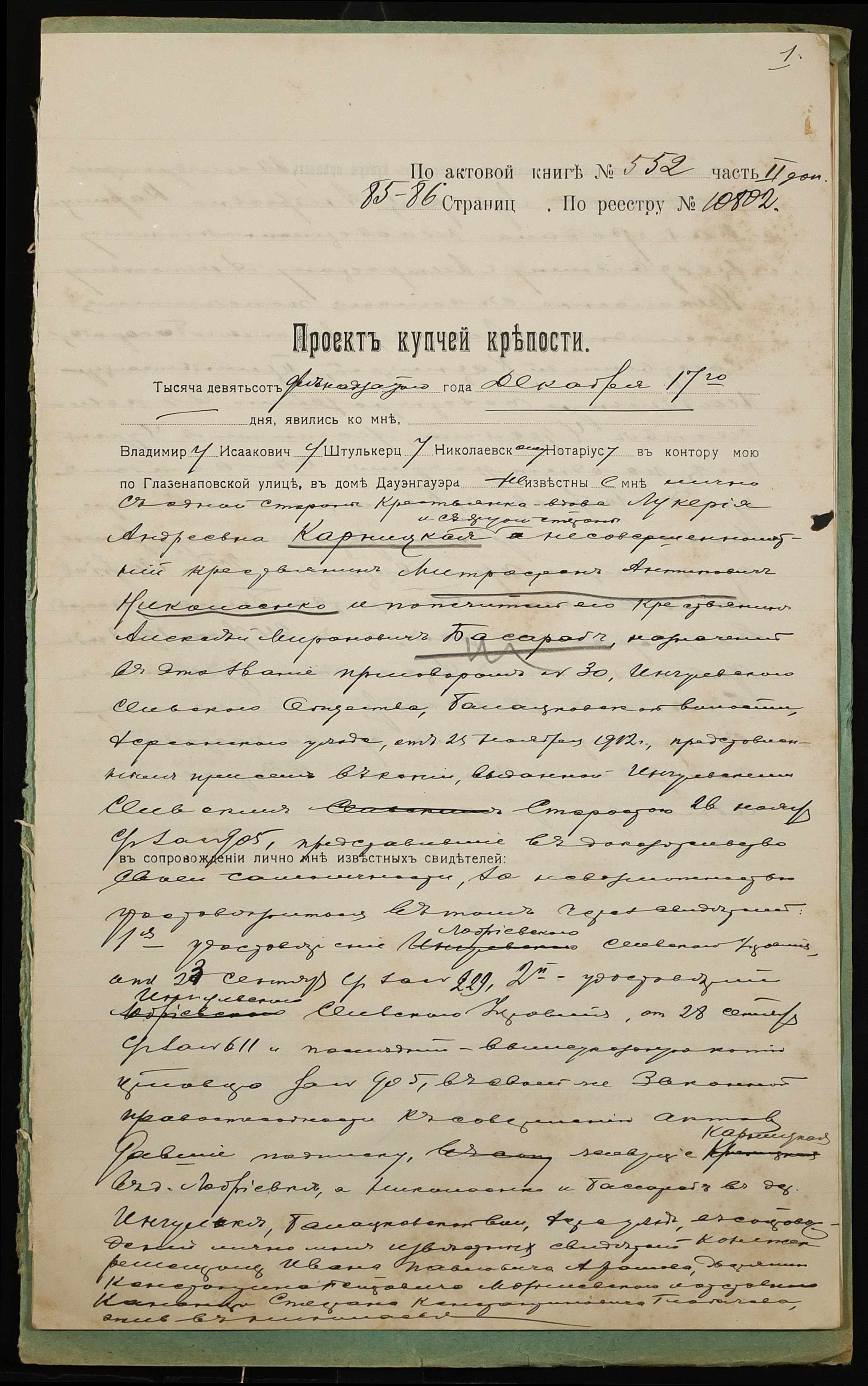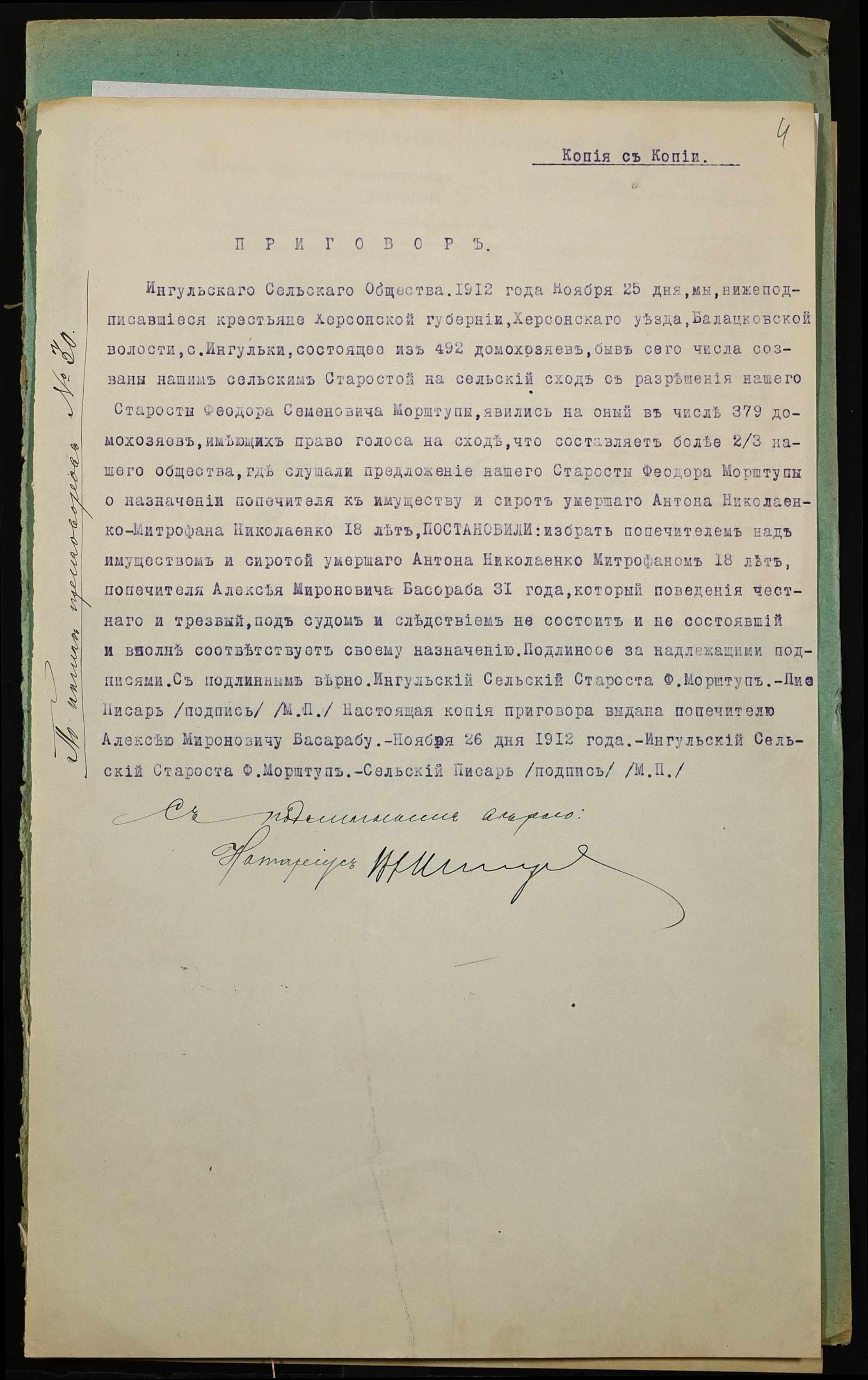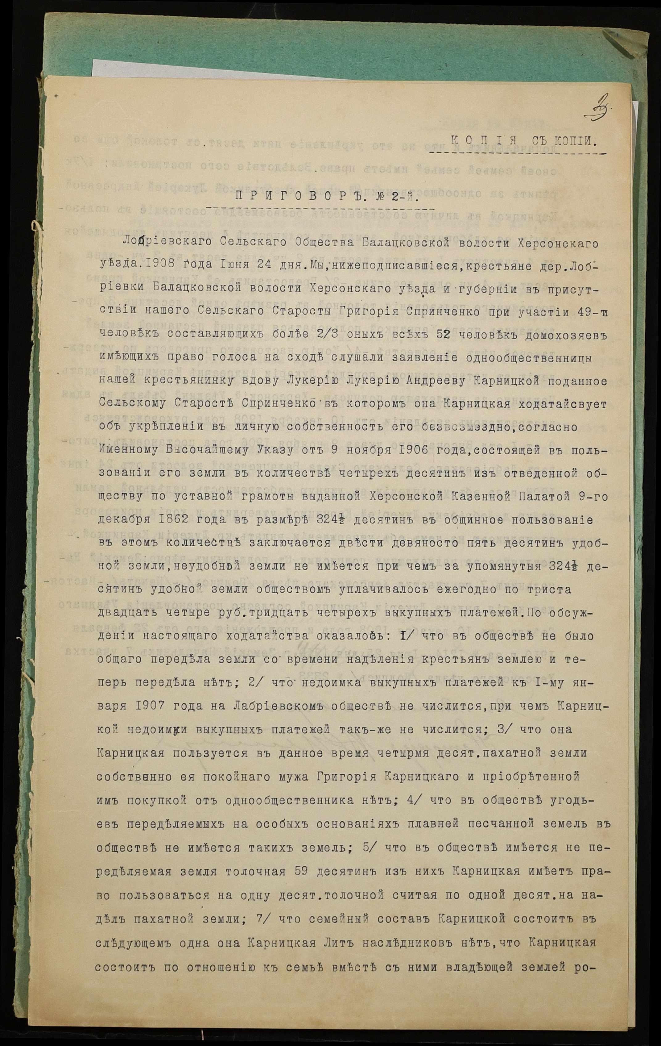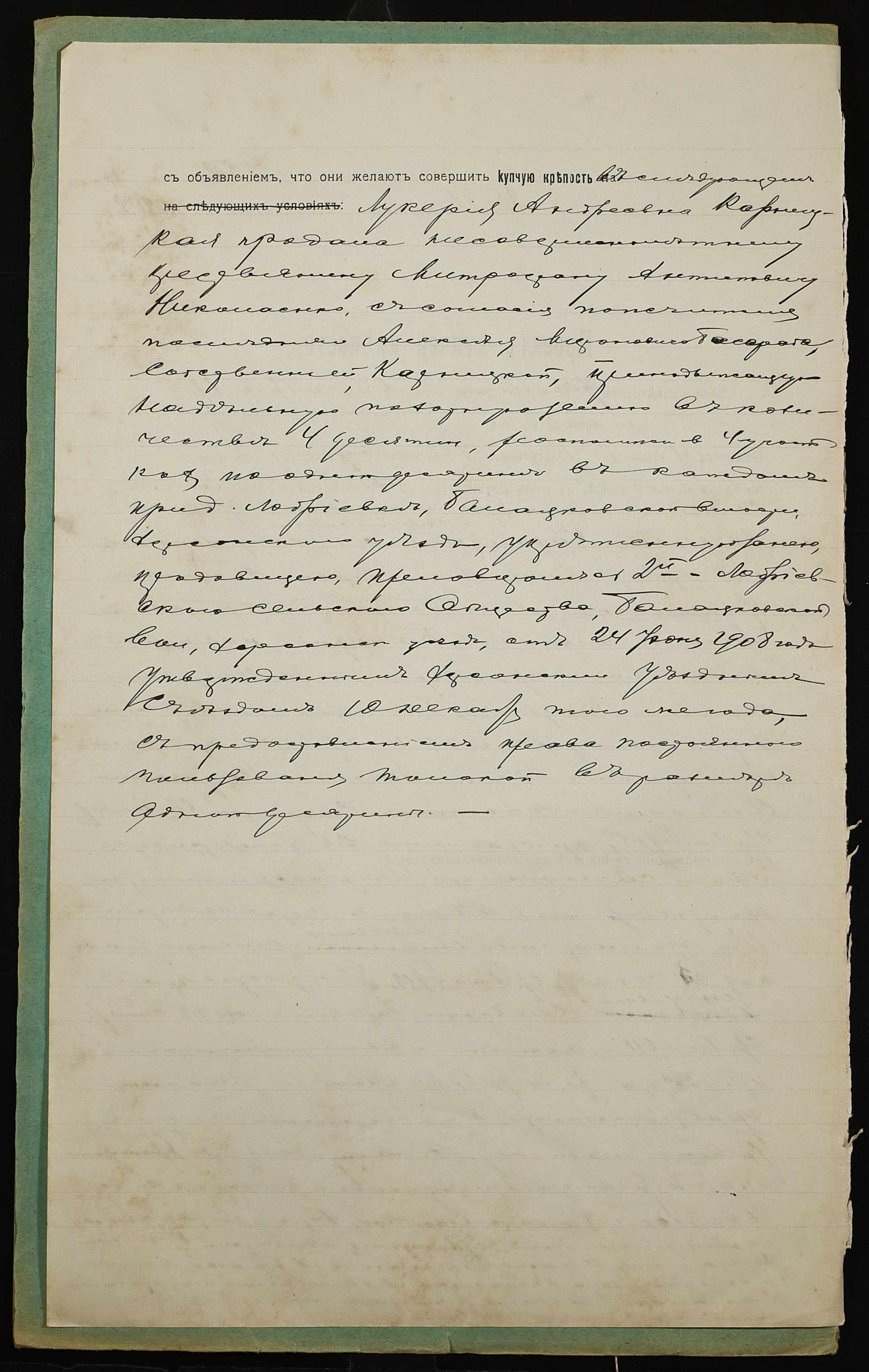 • • • • Справа № 965 “Справа про вчинення купчої про продаж землі селянкою Карницькою Лукерією Андріївною (Карницкой Лукерией Андреевной) на користь Бесараба Олексія Мироновича (Бессараба Алексея Мироновича), повіреного неповнолітнього селянина Ніколаєнка Митрофана Антиповича (Николаенко Митрофана Антиповича)”