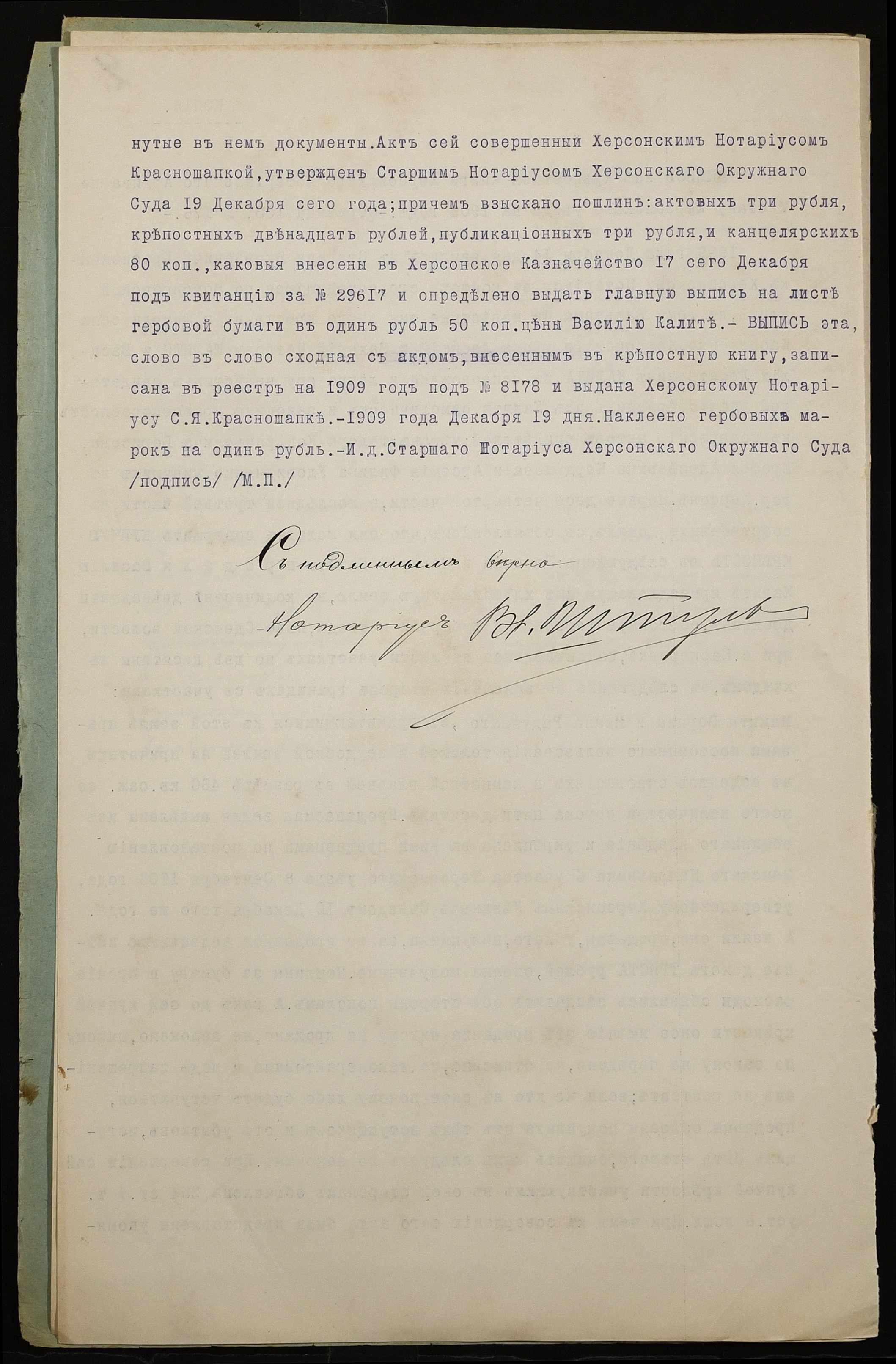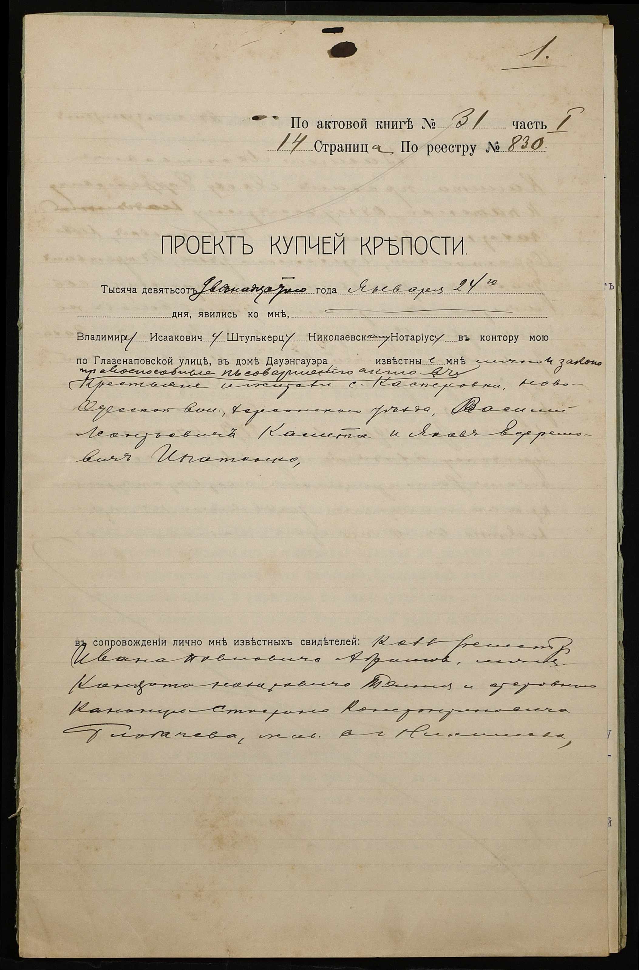◦ ◦ Фонд № 152 “Контора миколаївського нотаріуса Херсонського окружного суду Штулькерца Володимира Ісааковича”