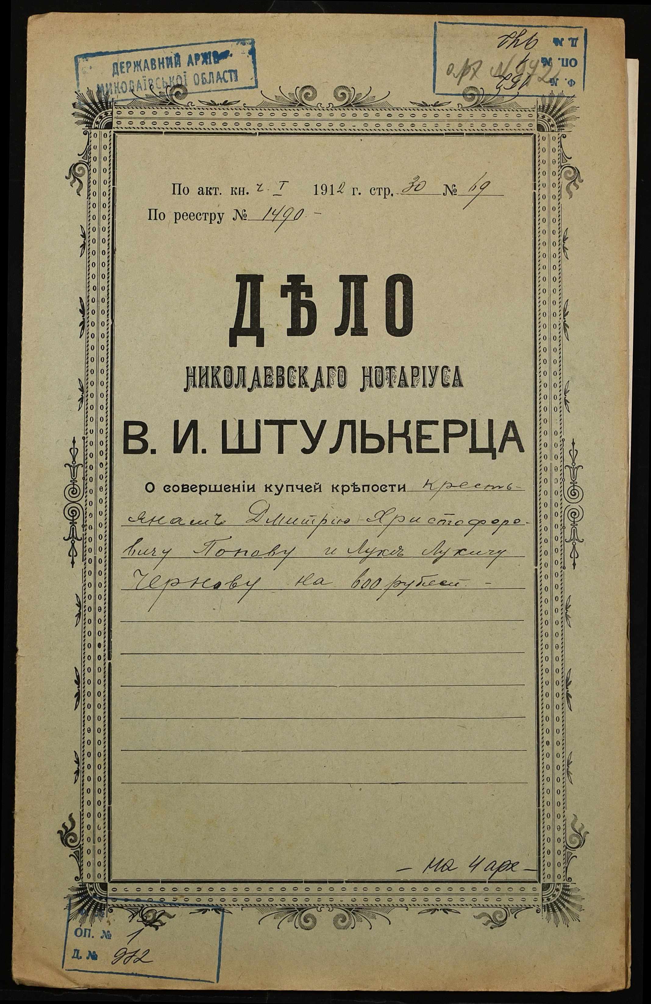 ◦ ◦ Фонд № 152 “Контора миколаївського нотаріуса Херсонського окружного суду Штулькерца Володимира Ісааковича”