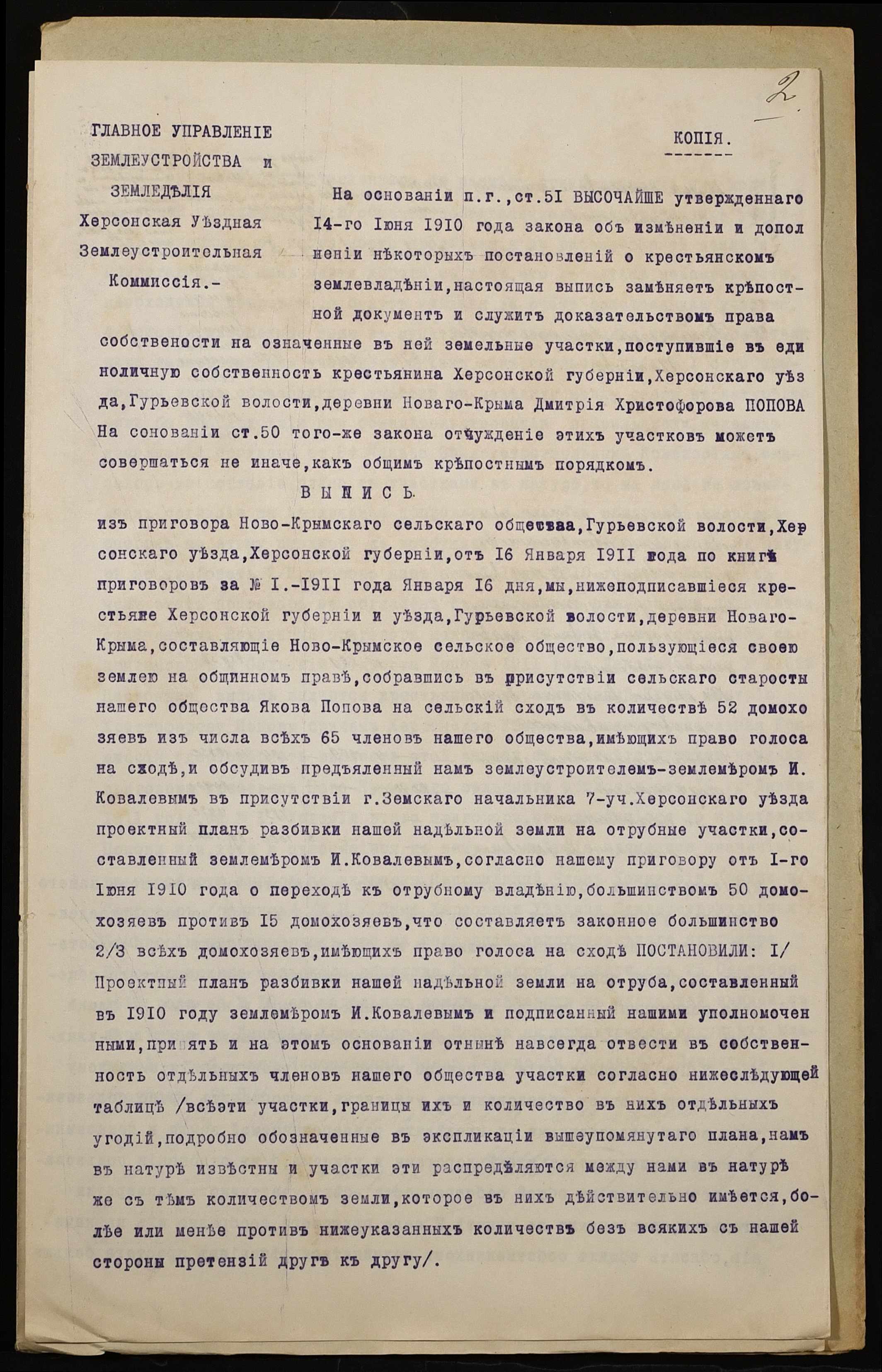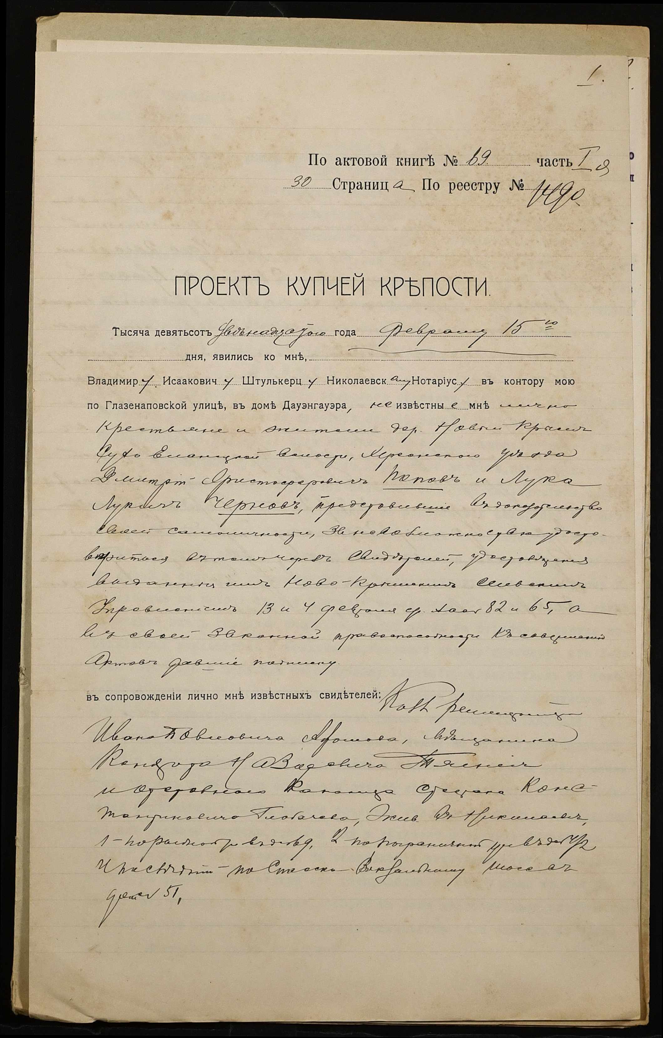 • • • • Справа № 972 “Справа про вчинення купчої про продаж землі селянином Поповим Дмитром Христофоровичем (Поповым Дмитрием Христофоровичем) на користь селянина Чернова Луки Лукича (Чернова Луки Лукича)”