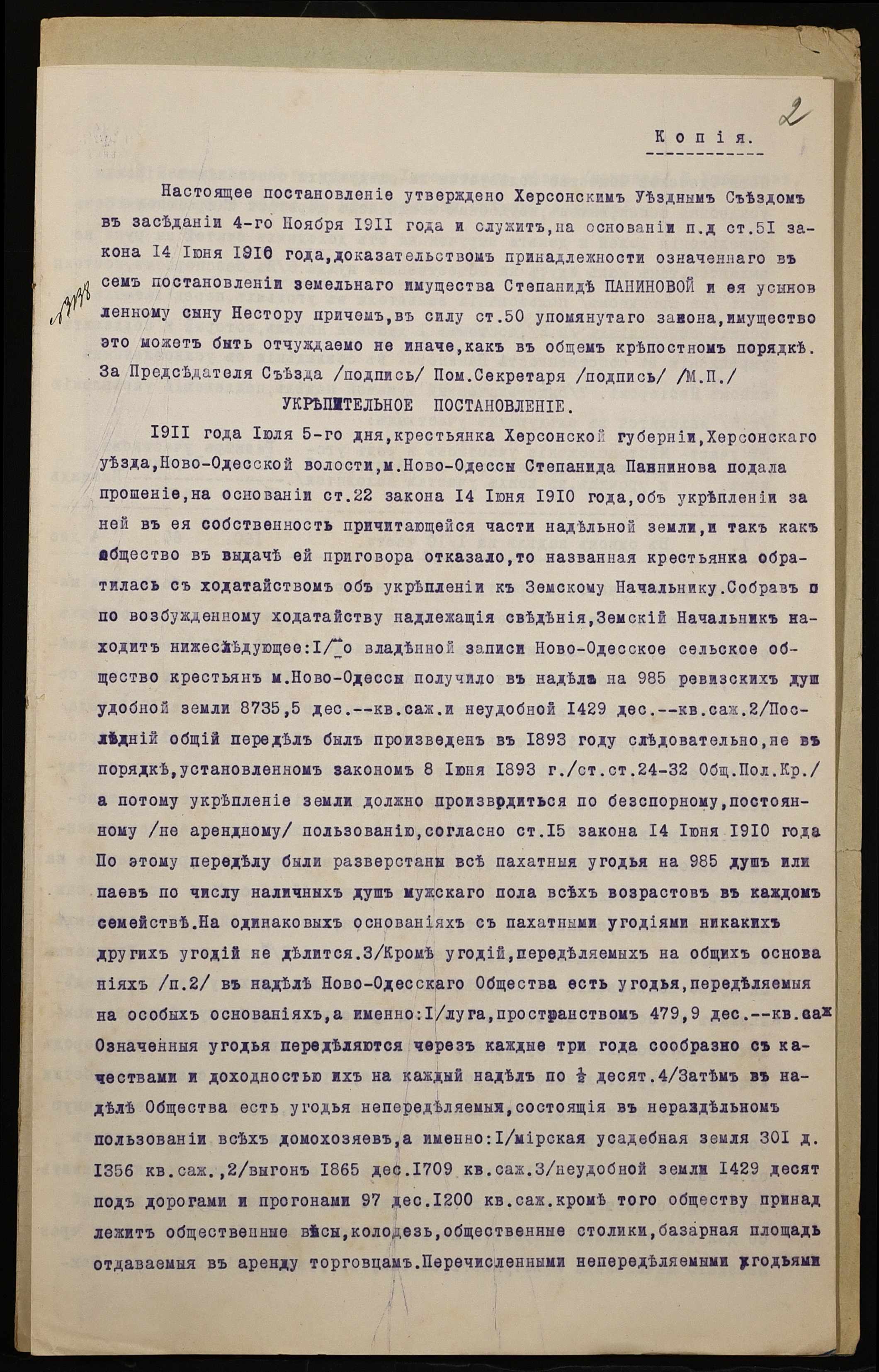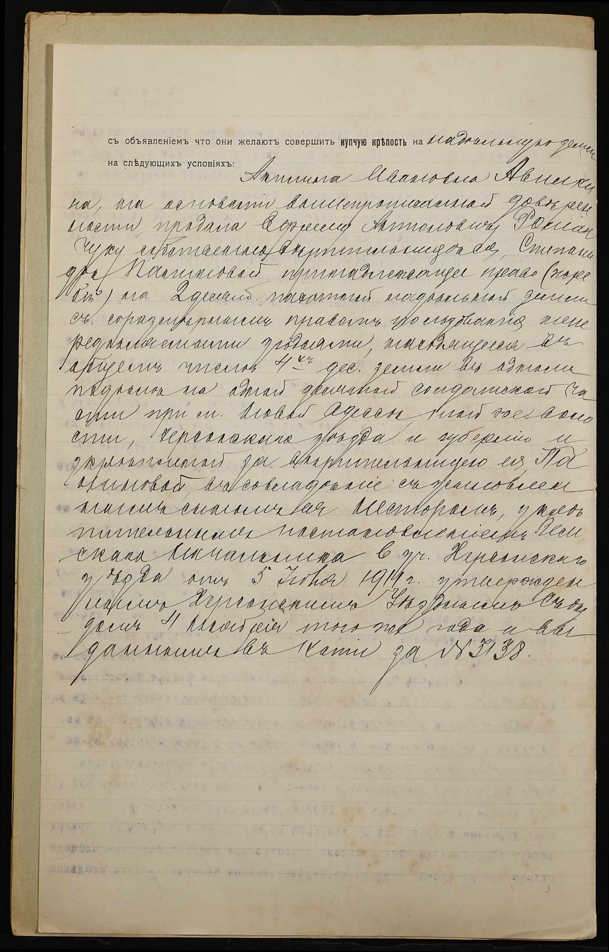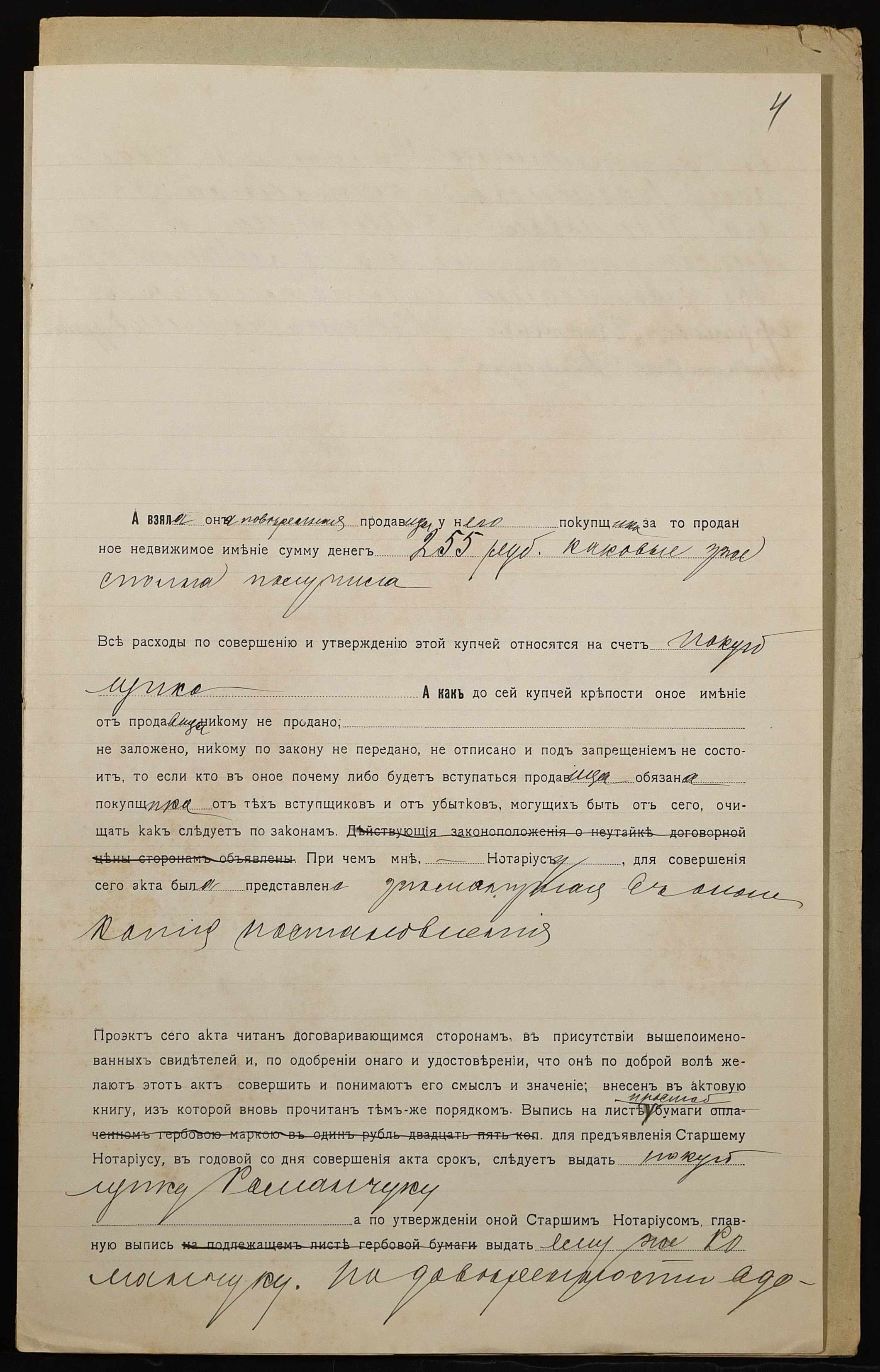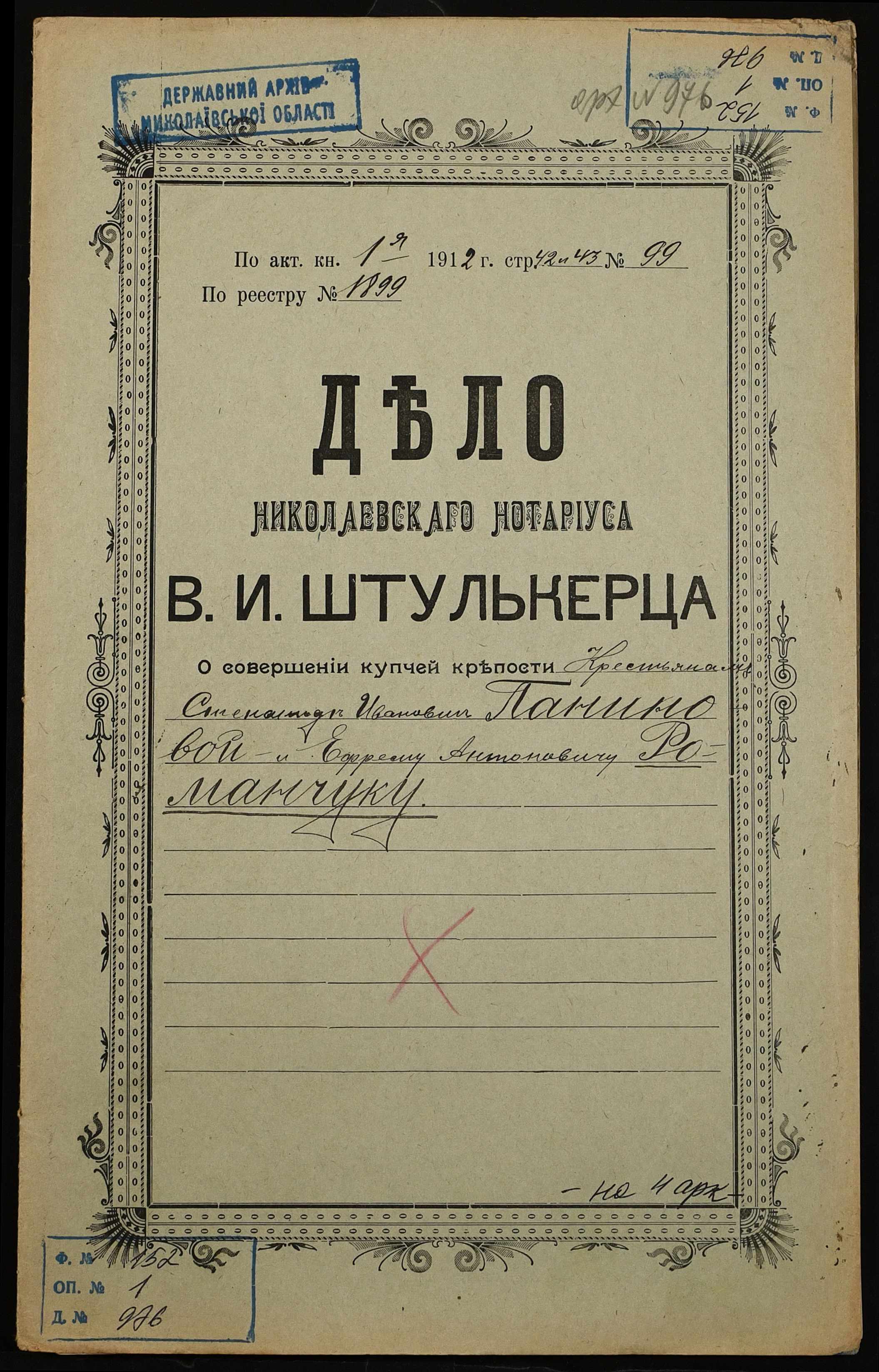 • • • • Справа № 976 “Справа про вчинення купчої про продаж землі селянкою Паніновою Степанідою Іванівною (Паниновой Степанидой Ивановной) на користь селянина Романчука Єфрема Антоновича (Романчука Ефрема Антоновича)”