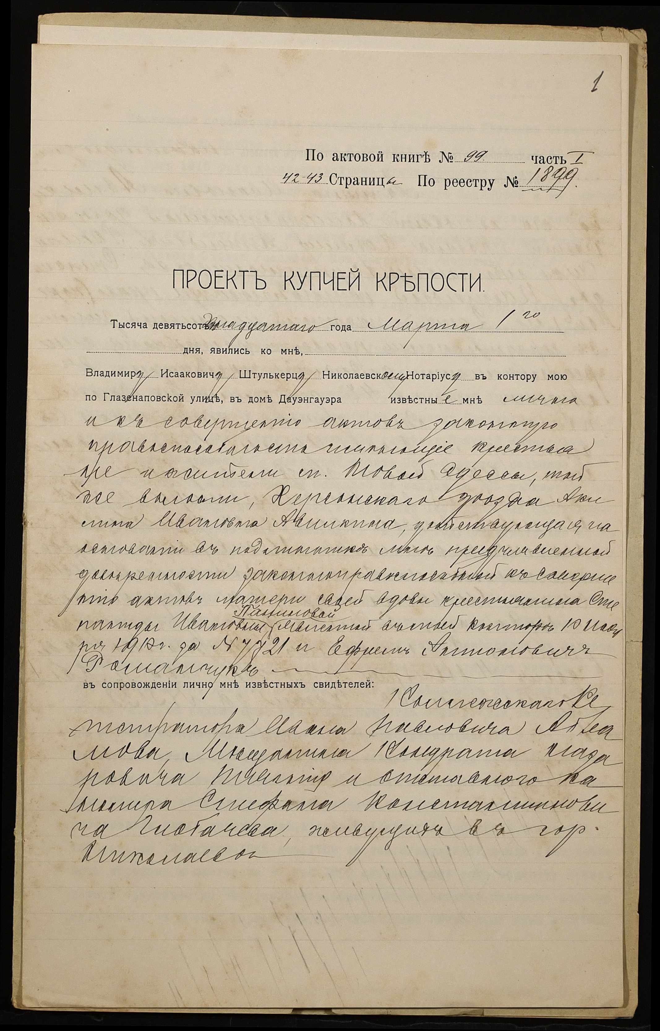 ◦ ◦ Фонд № 152 “Контора миколаївського нотаріуса Херсонського окружного суду Штулькерца Володимира Ісааковича”