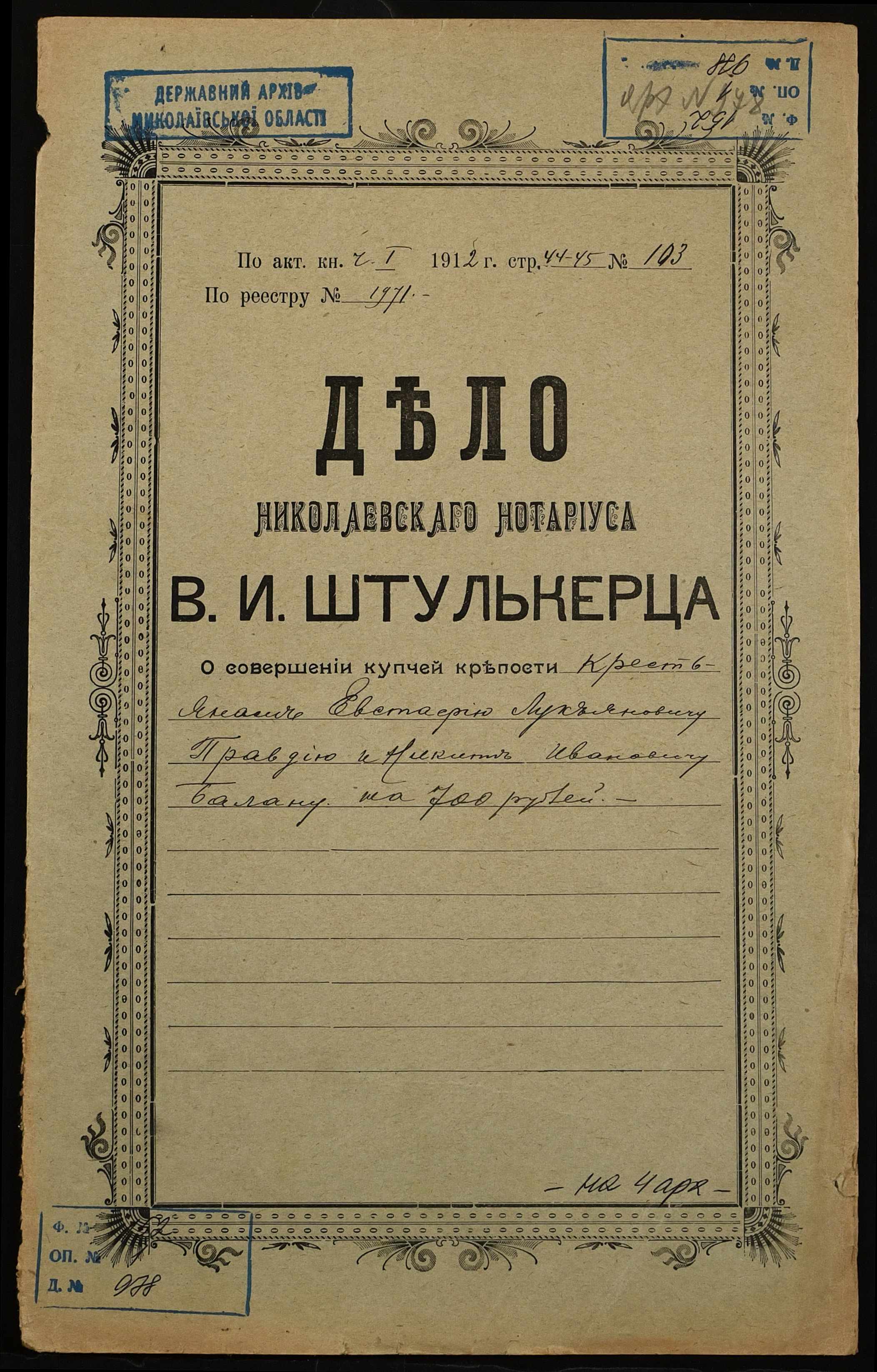 ◦ ◦ Фонд № 152 “Контора миколаївського нотаріуса Херсонського окружного суду Штулькерца Володимира Ісааковича”